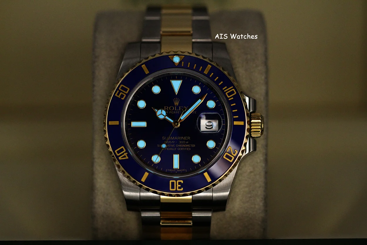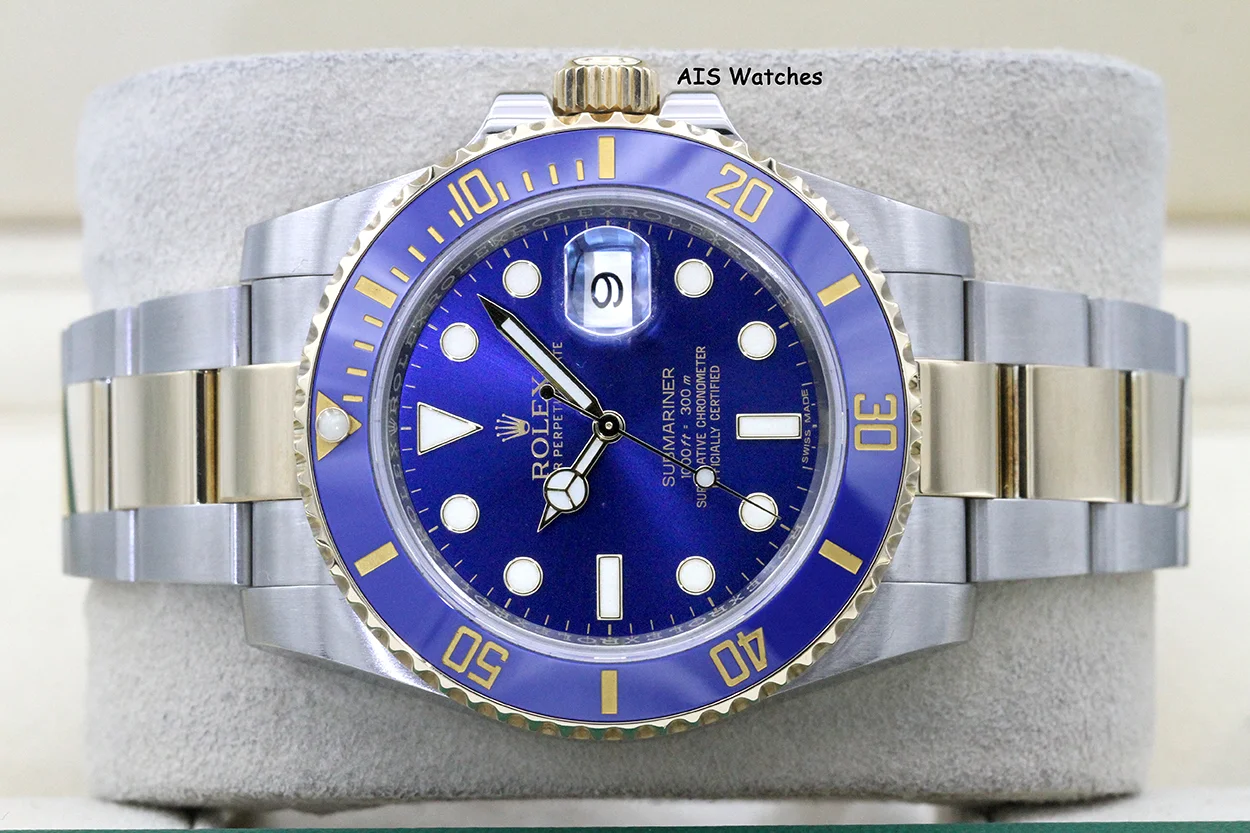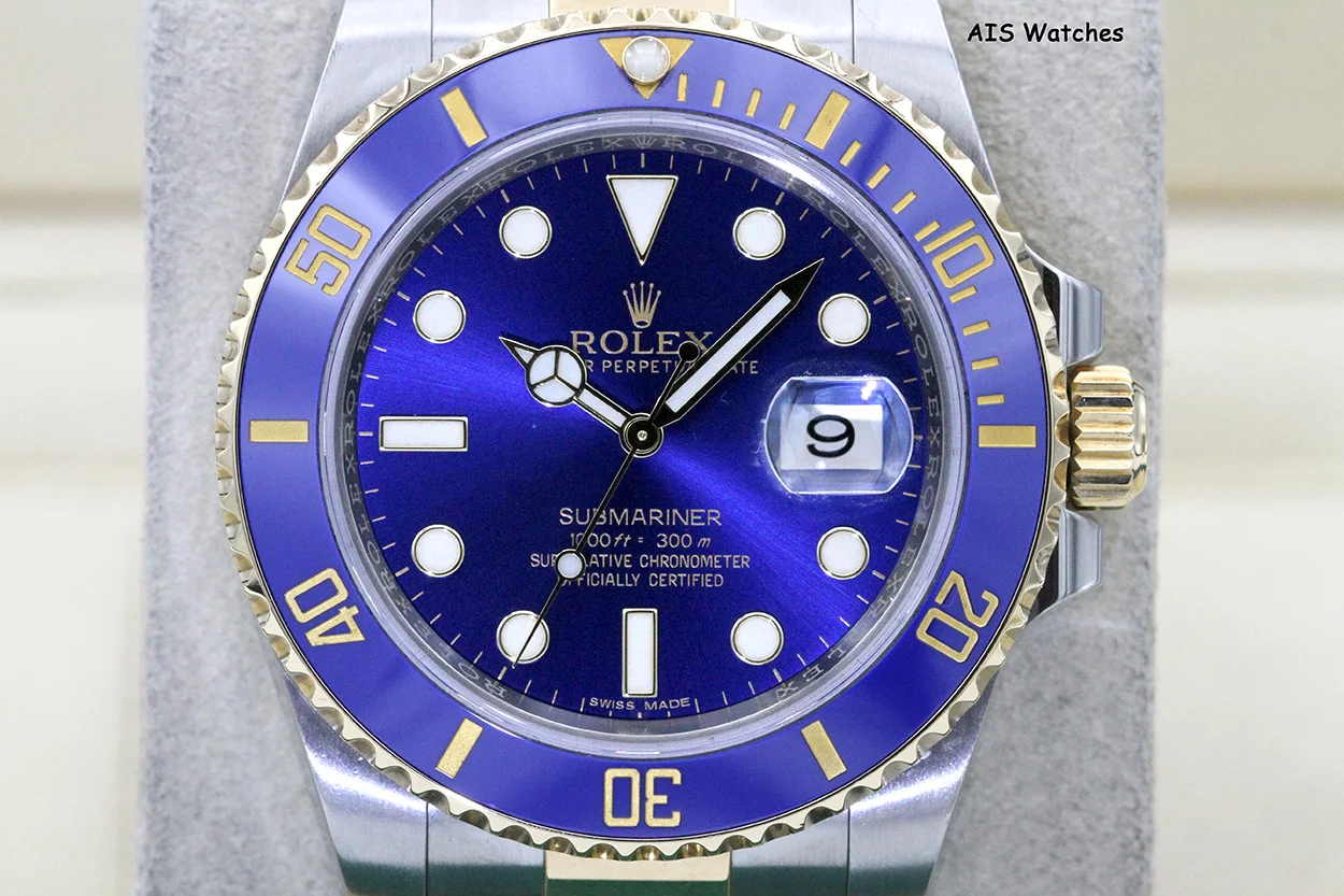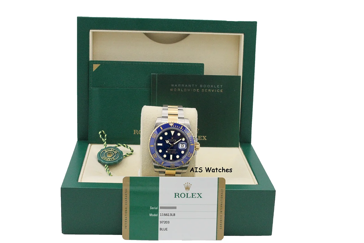 Up for sale is a Submariner Two Tone 116613 LB 40MM Sunburst Blue Dial with Ceramic Bezel Box & Papers. The timepiece is in excellent condition.