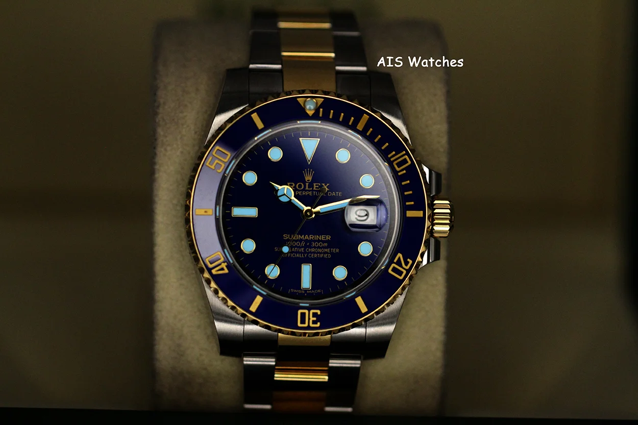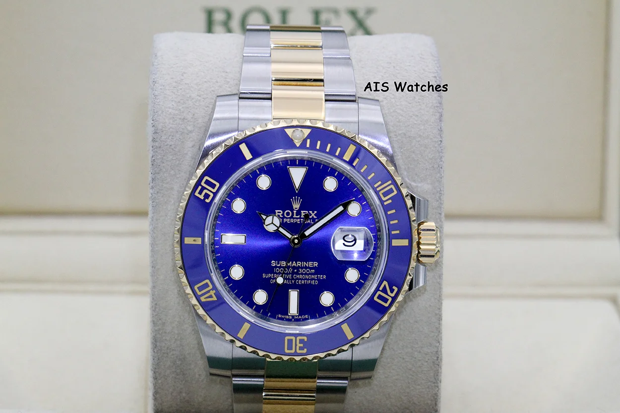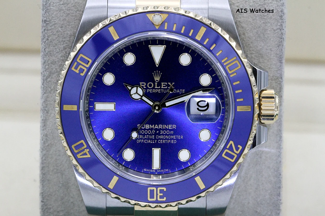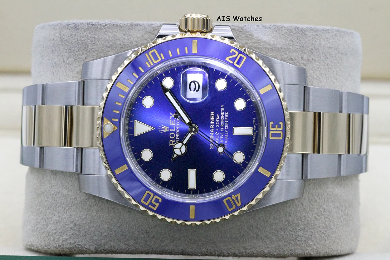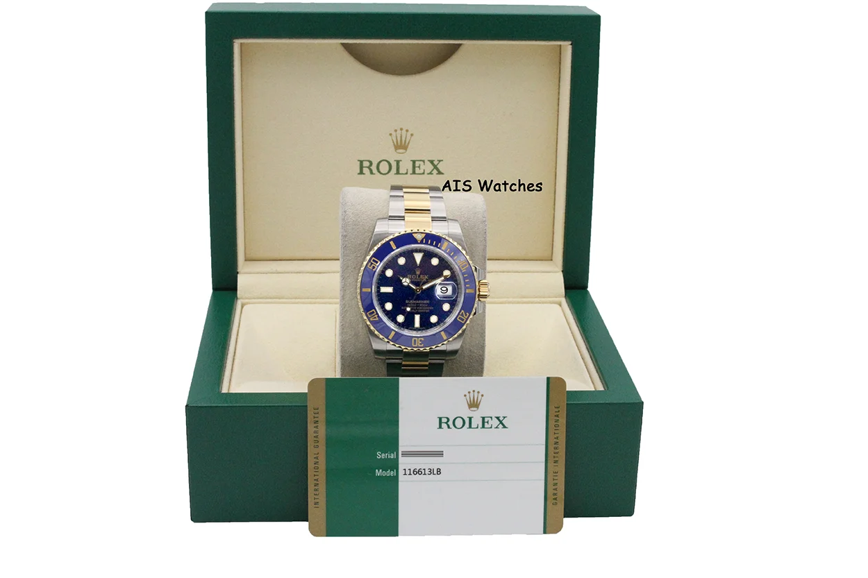 Up for sale is a Submariner Two Tone 116613 LB 40MM Sunburst Blue Dial with Ceramic Bezel Box & Papers. The timepiece is in excellent condition.