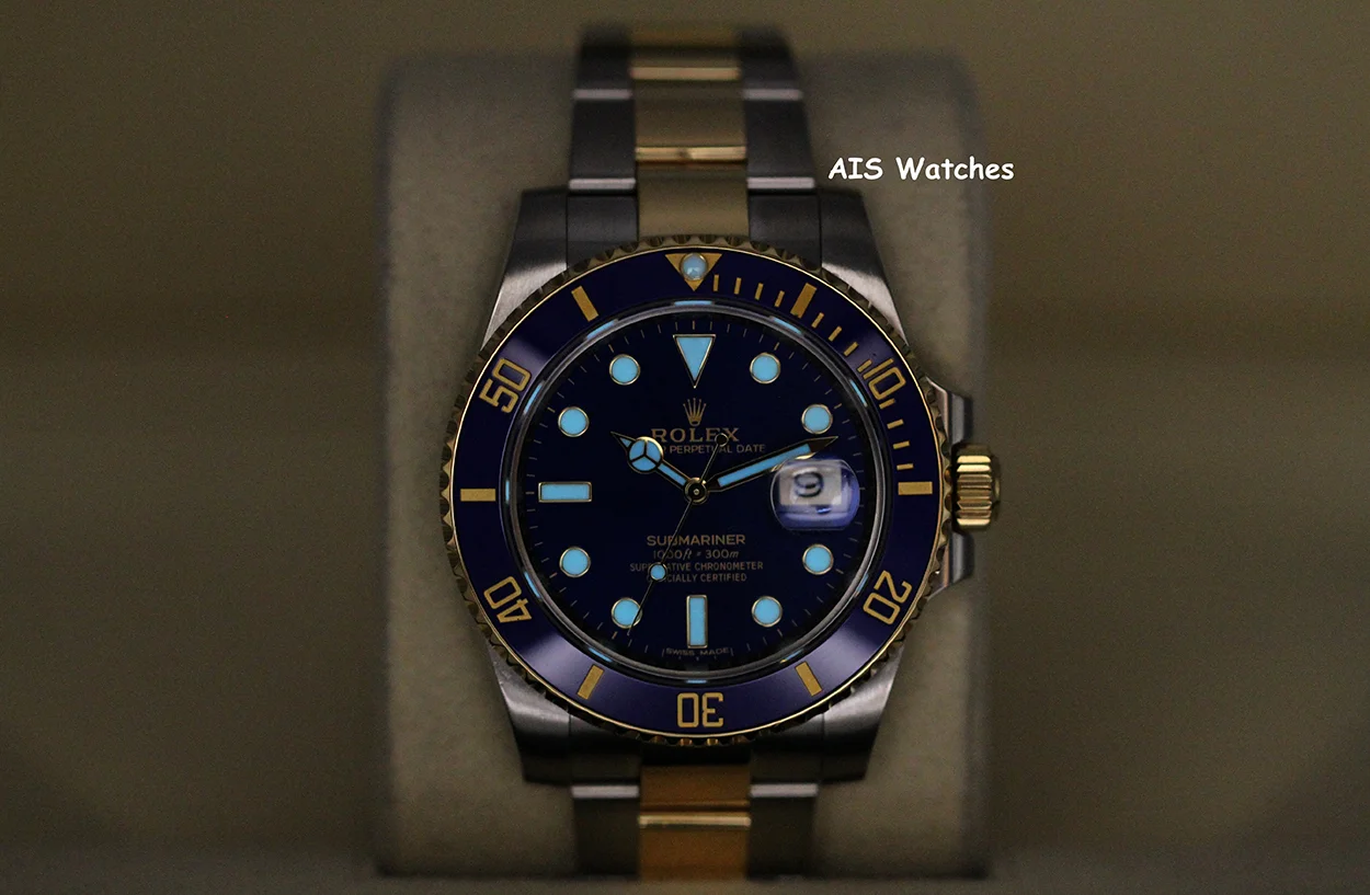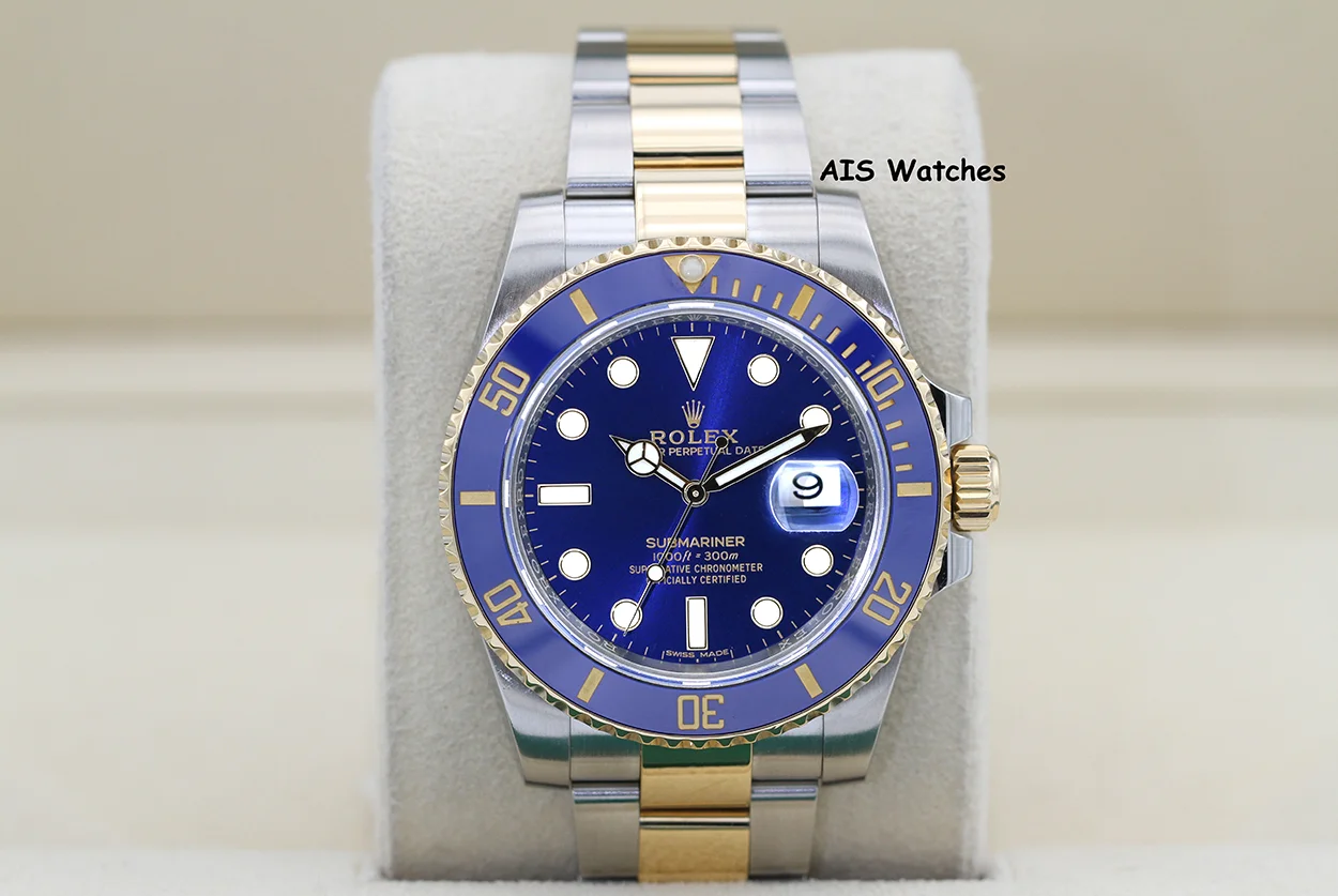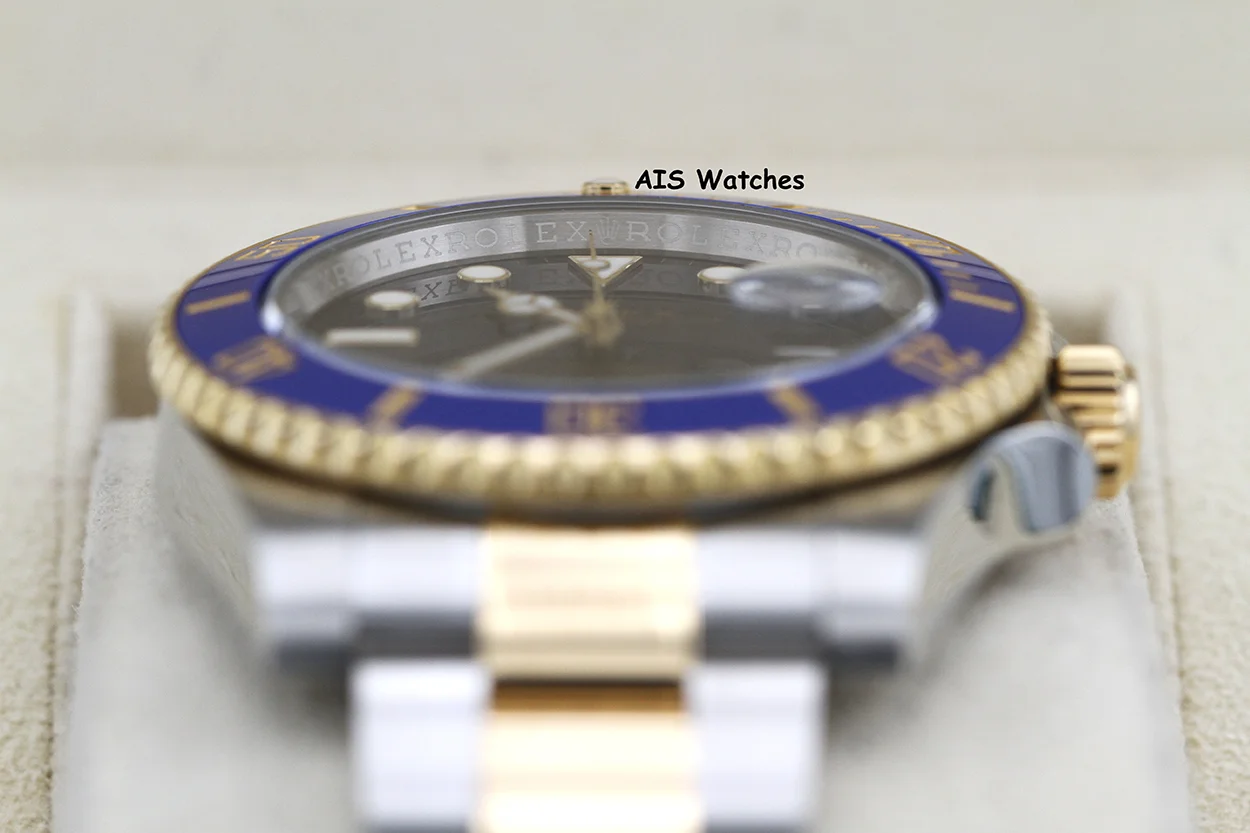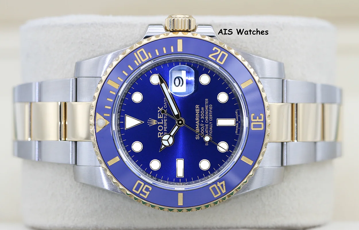 Up for sale is a Submariner Two-Tone 116613 LB 40MM Sunburst Blue Dial with Ceramic Bezel Box & Papers. The timepiece is in excellent condition.