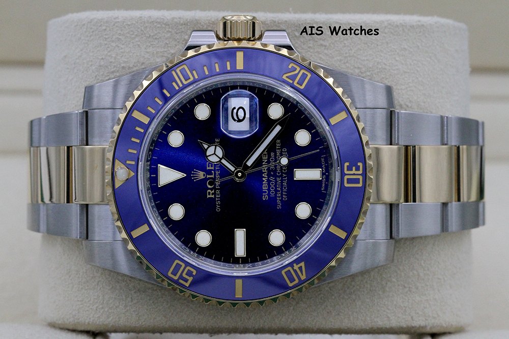Up for sale is a Submariner Two Tone 116613 LB 40MM Sunburst Blue Dial with Ceramic Bezel and Random Serial Box & Papers. The timepiece is in excellent condition.