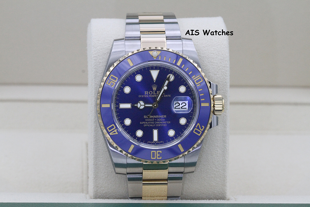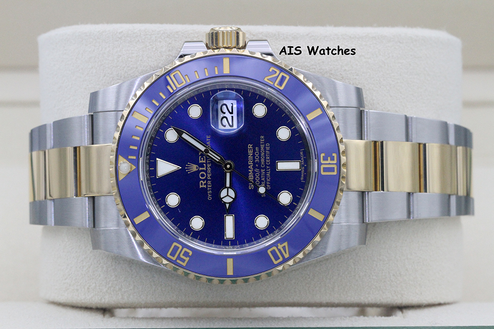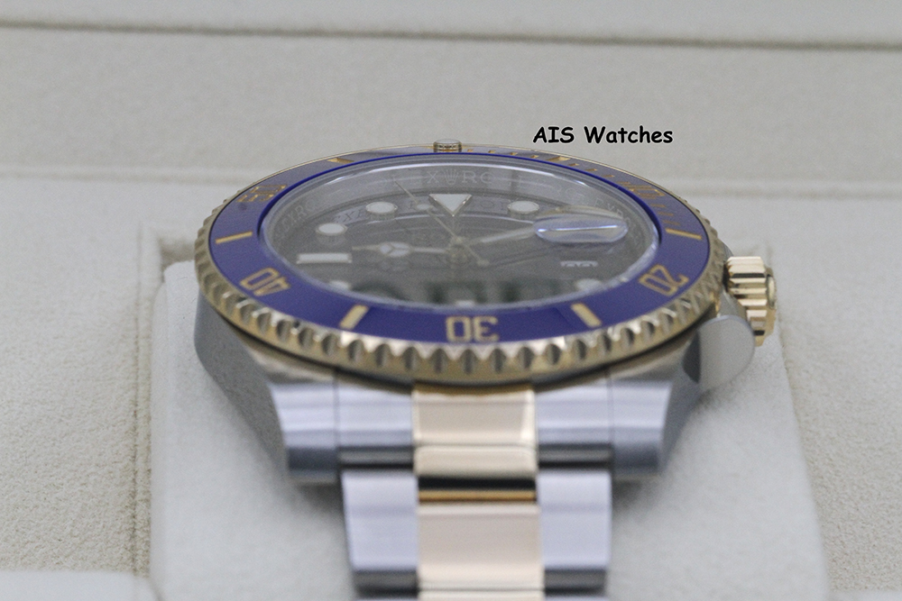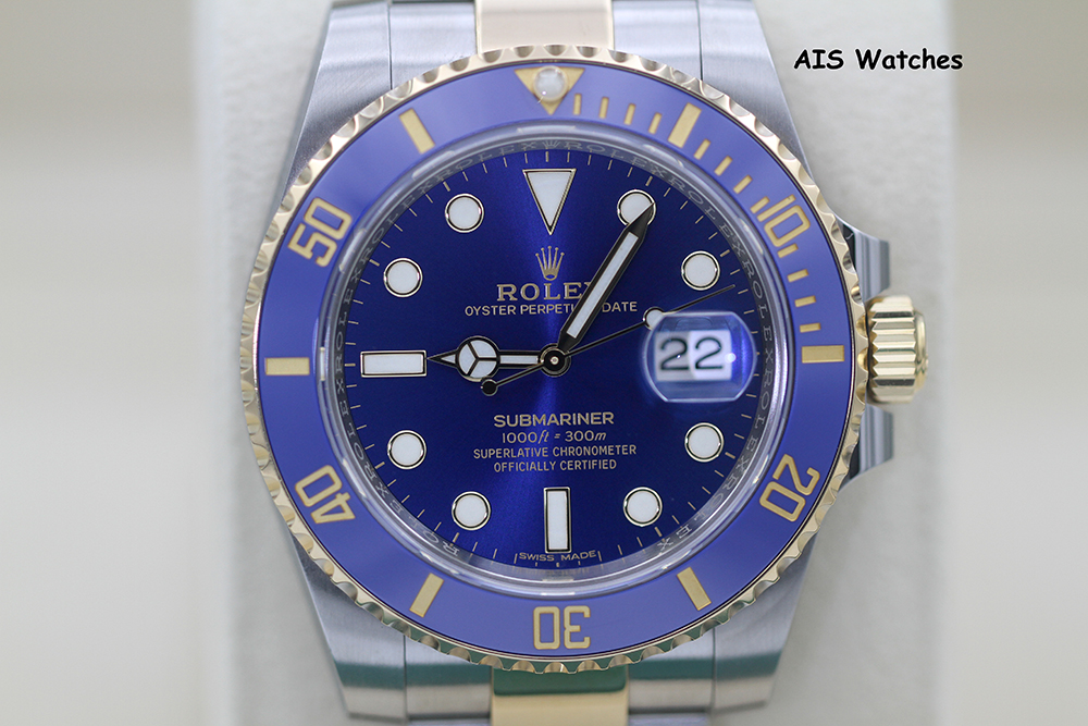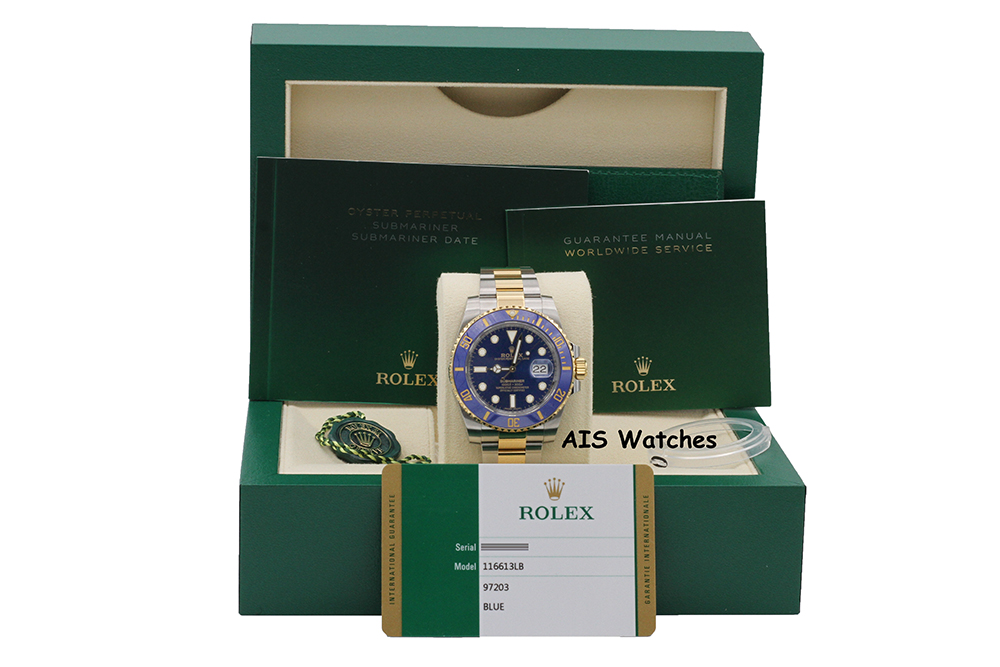 Up for sale is a Submariner Two Tone 116613 LB 40MM Sunburst Blue Dial with Ceramic Bezel and Random Serial Box & Papers. The timepiece is in excellent condition.