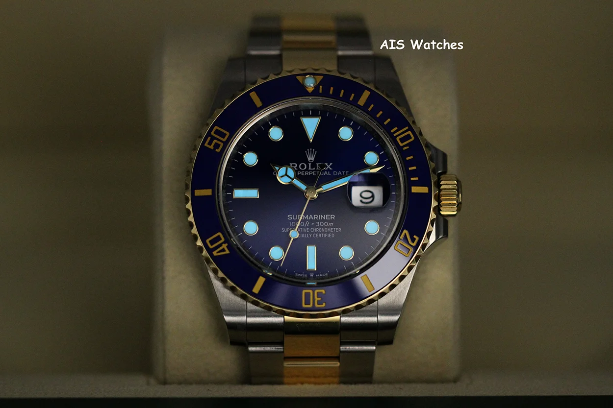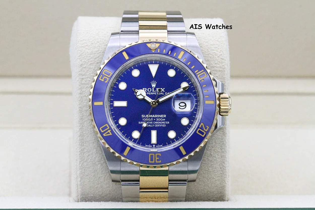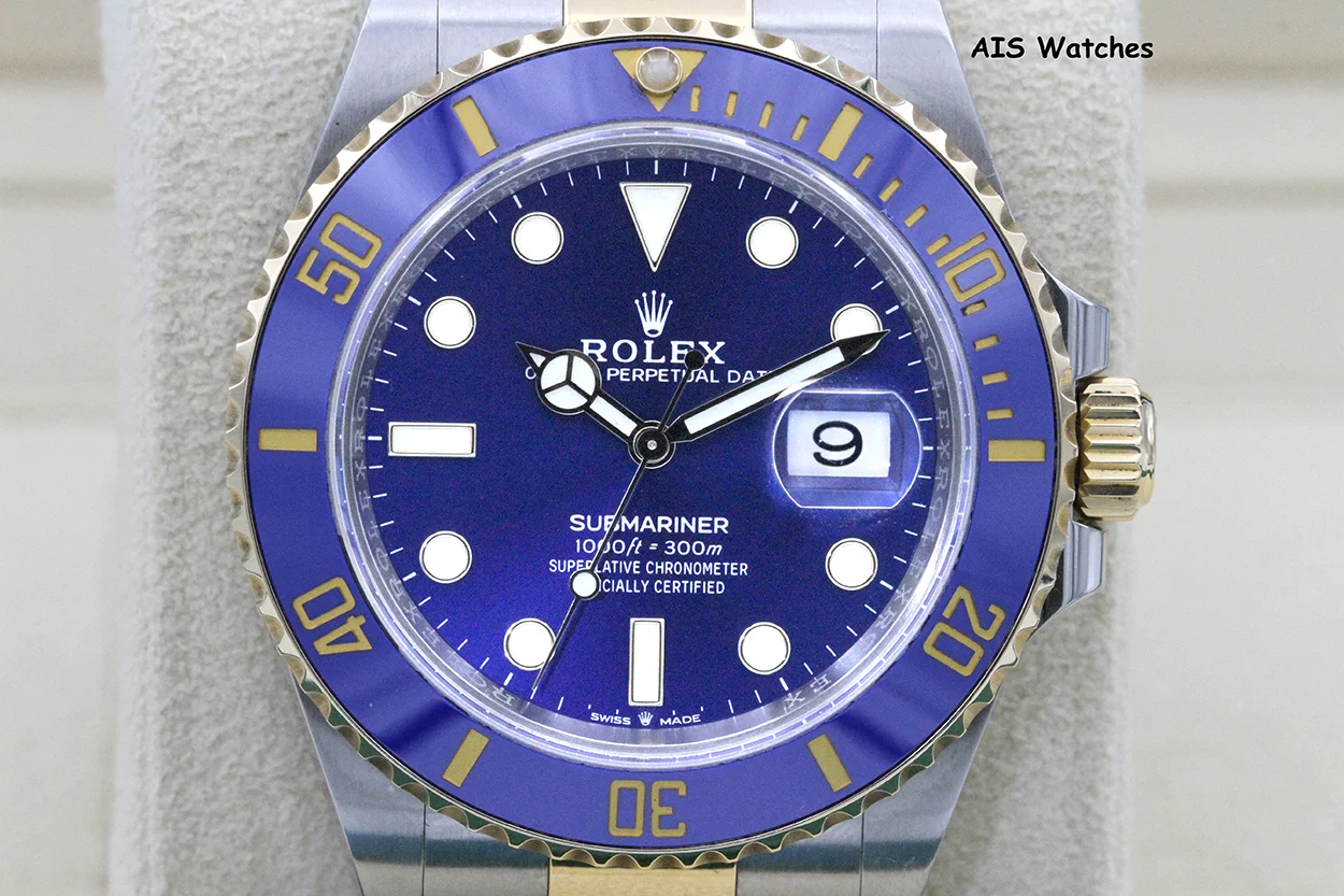 Up for sale is a Submariner 41MM 18k/SS 126613 LB Sunburst Blue Dial with Ceramic Bezel with Box & Papers. The timepiece is in excellent condition.