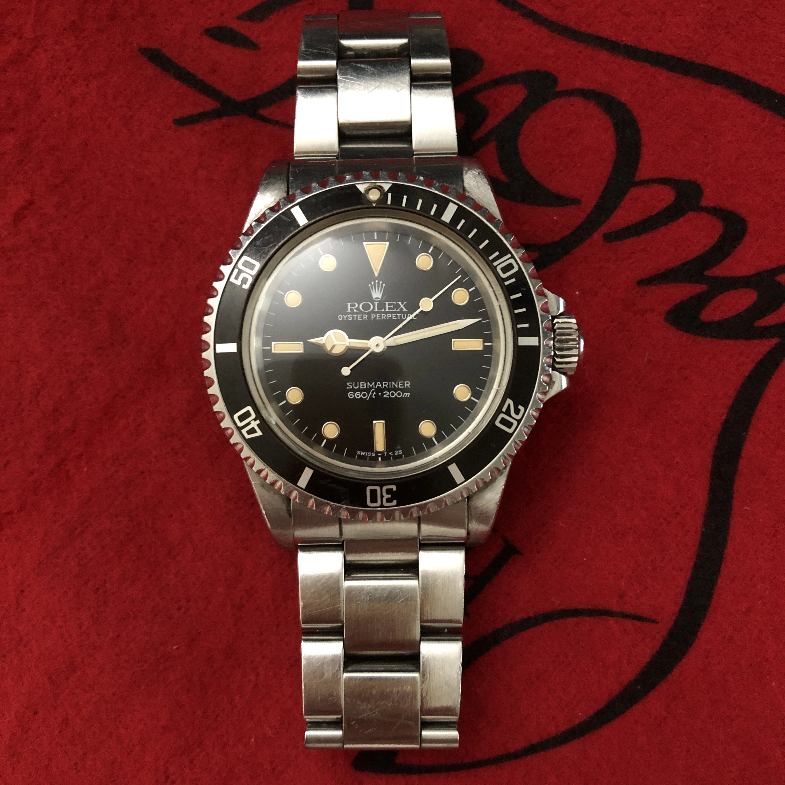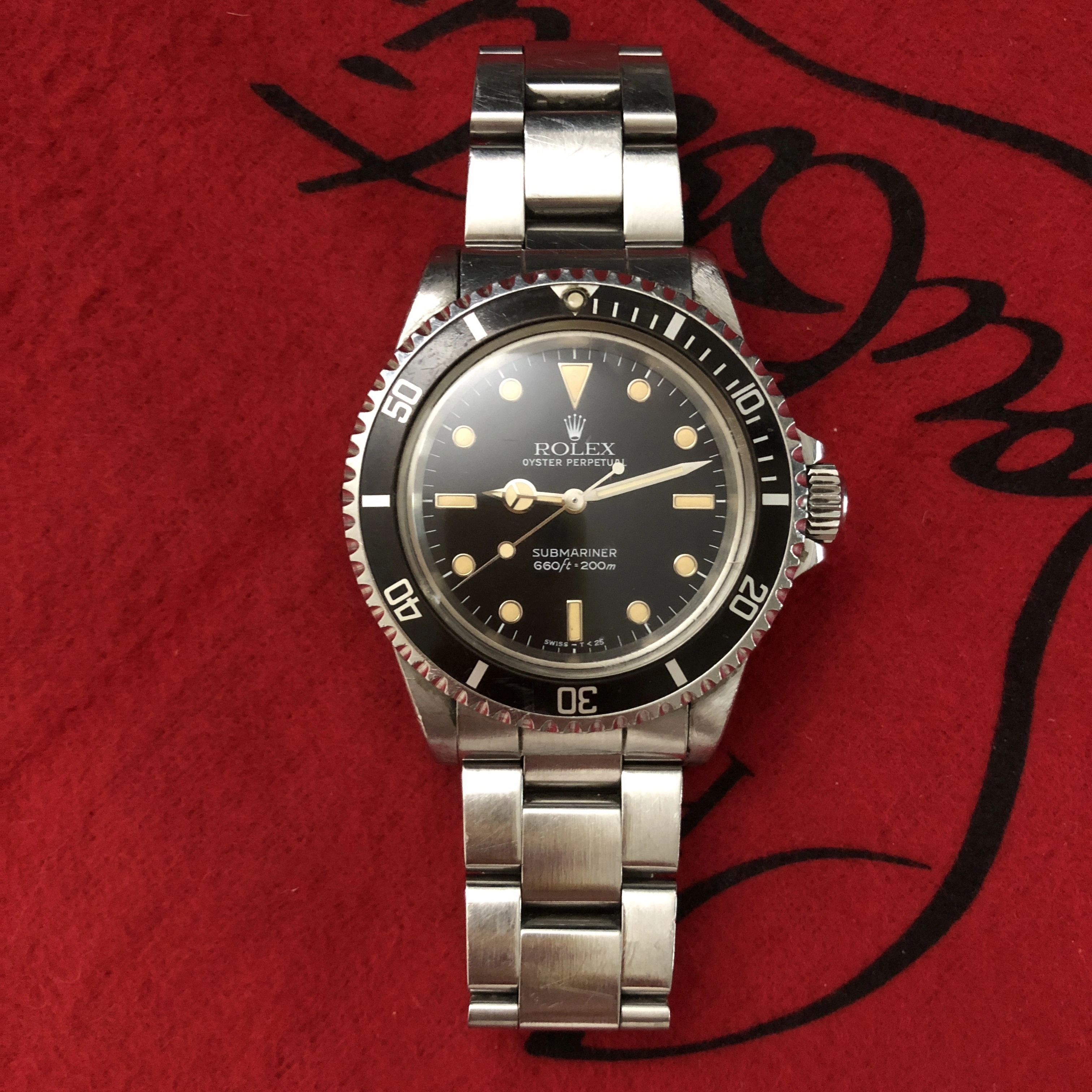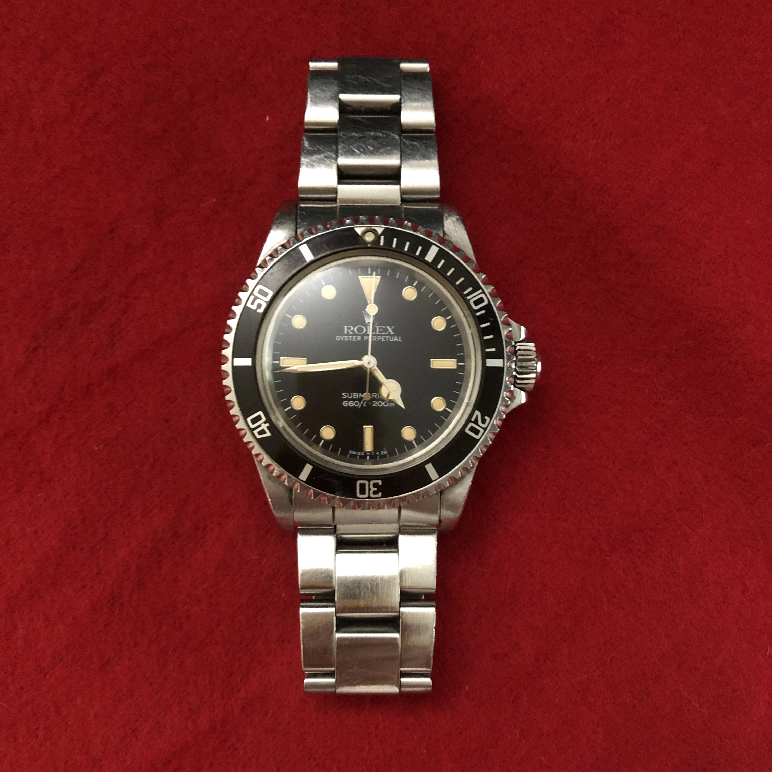 • Original T<25 glossy dial with white-gold surrounds and creamy, evenly aged tritium lume.