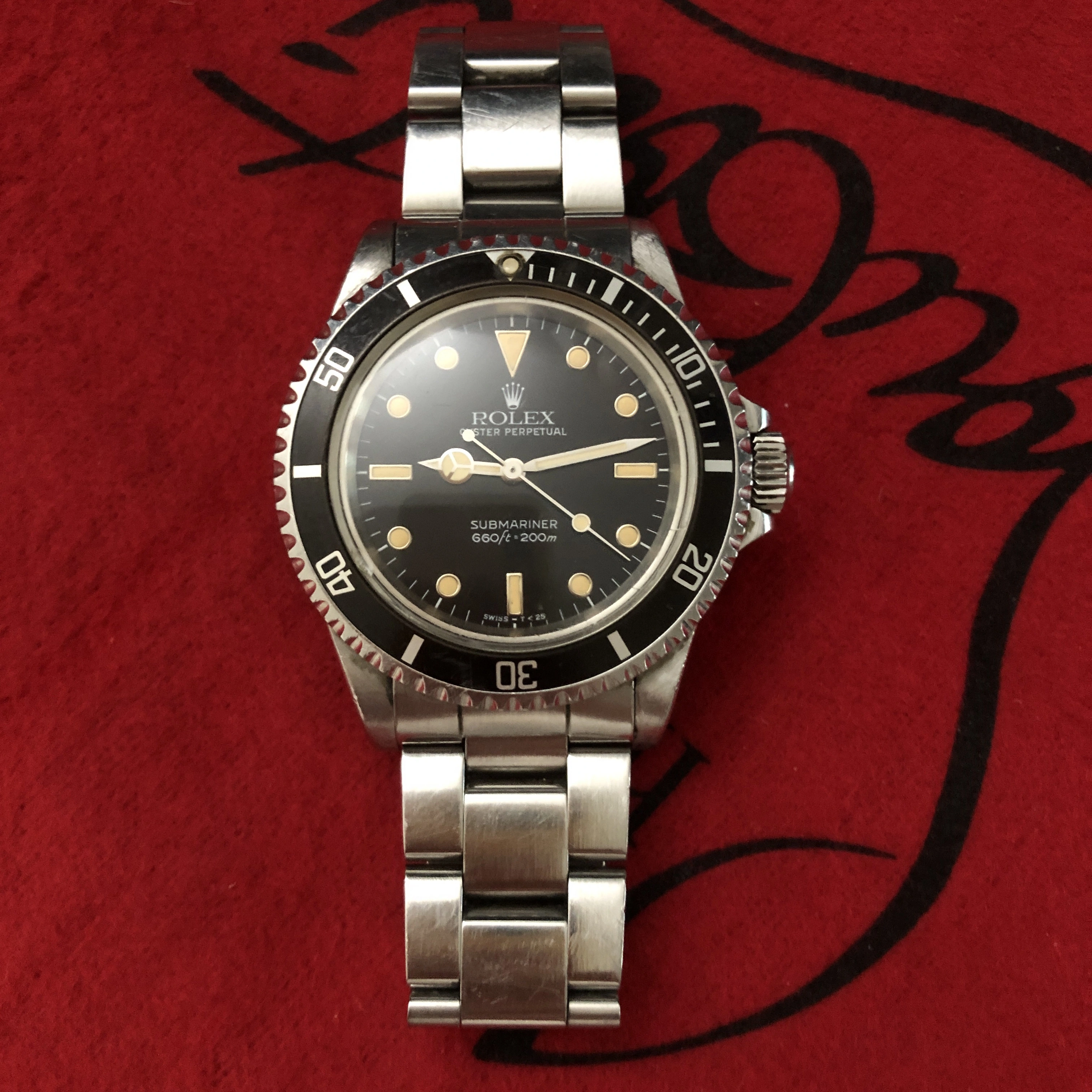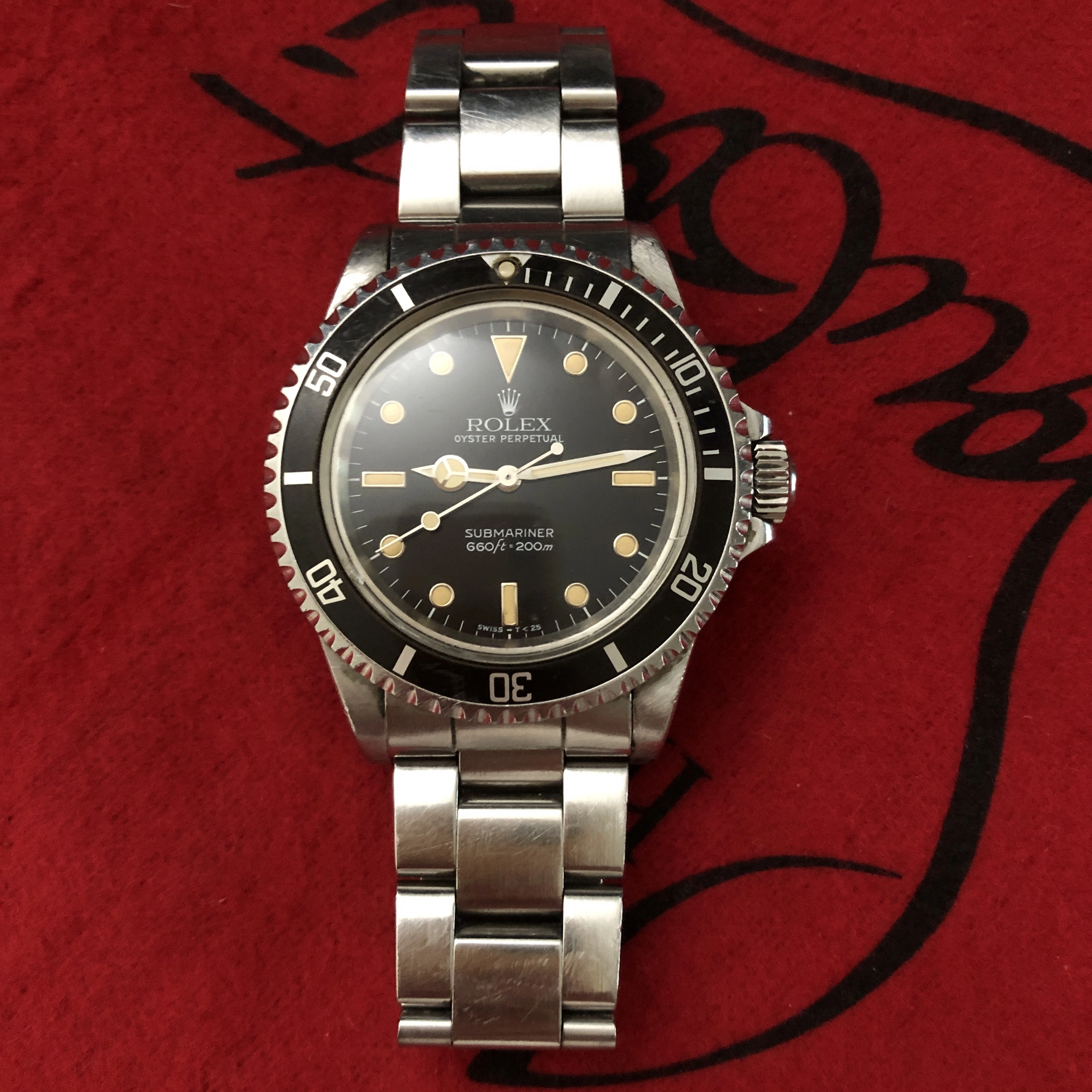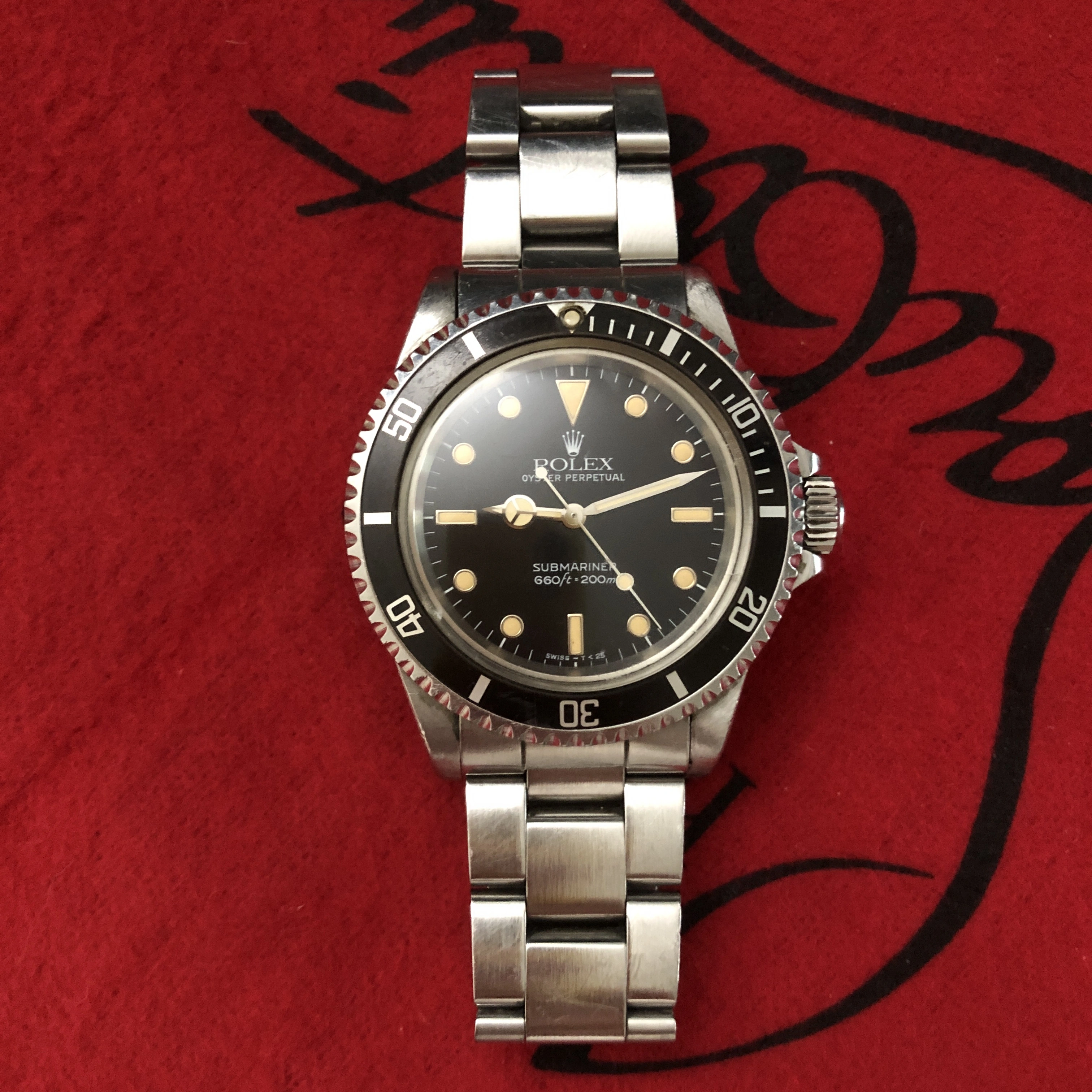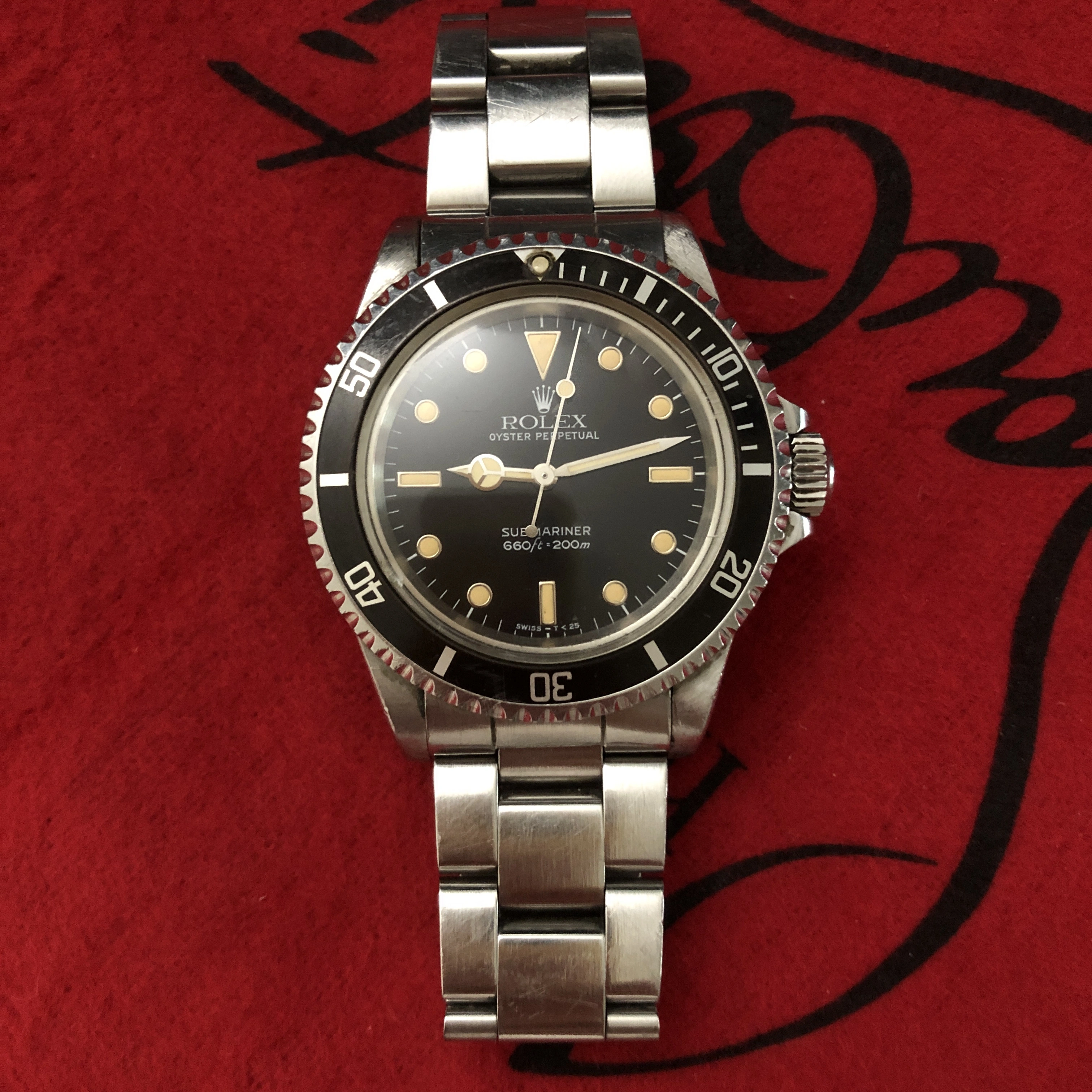 • Original T<25 glossy dial with white-gold surrounds and creamy, evenly aged tritium lume.