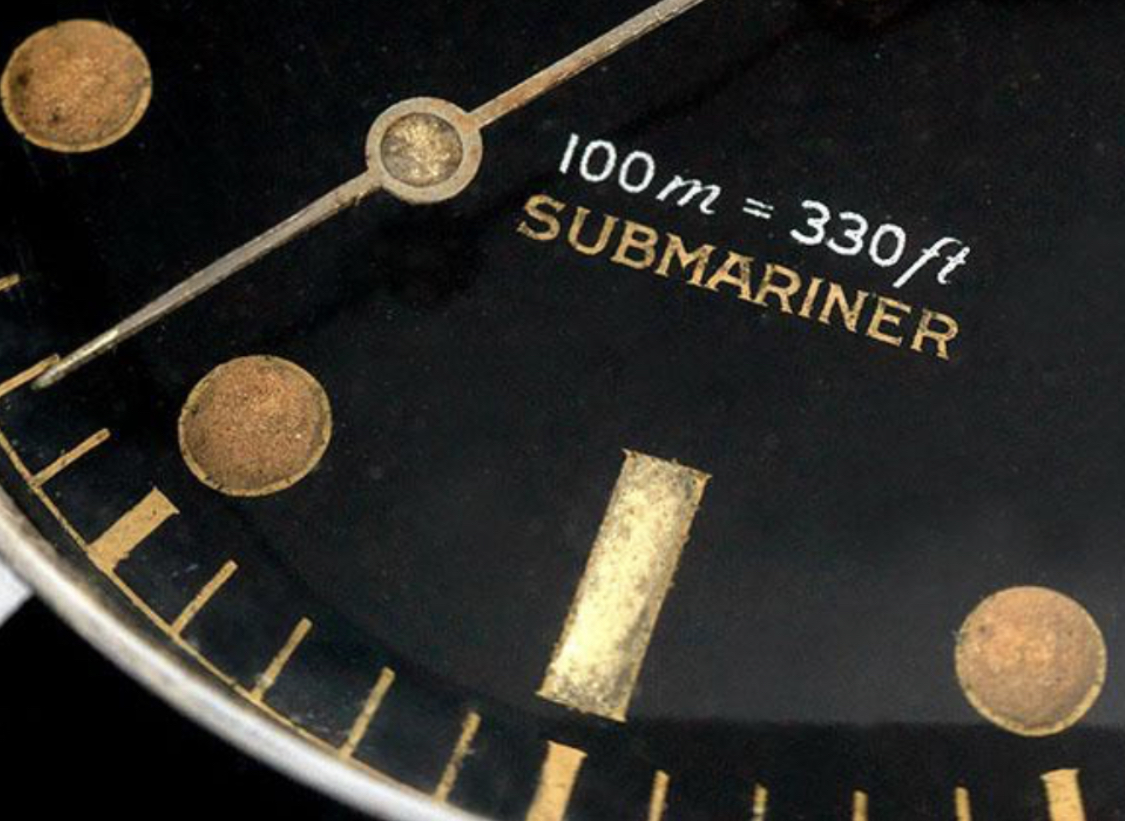 Dial/Hands: Original dial and lume. Dial is medium gloss and has minor imperfections in lacquer when viewed under a 10x loupe. Lume plots are full and complete, glow under UV and gradually fade, and have a lower Geiger reading. Hands are later gilt hands, the minute hand does not go to the edge of the chapter ring. They match the dial well, and are a shade different under UV.