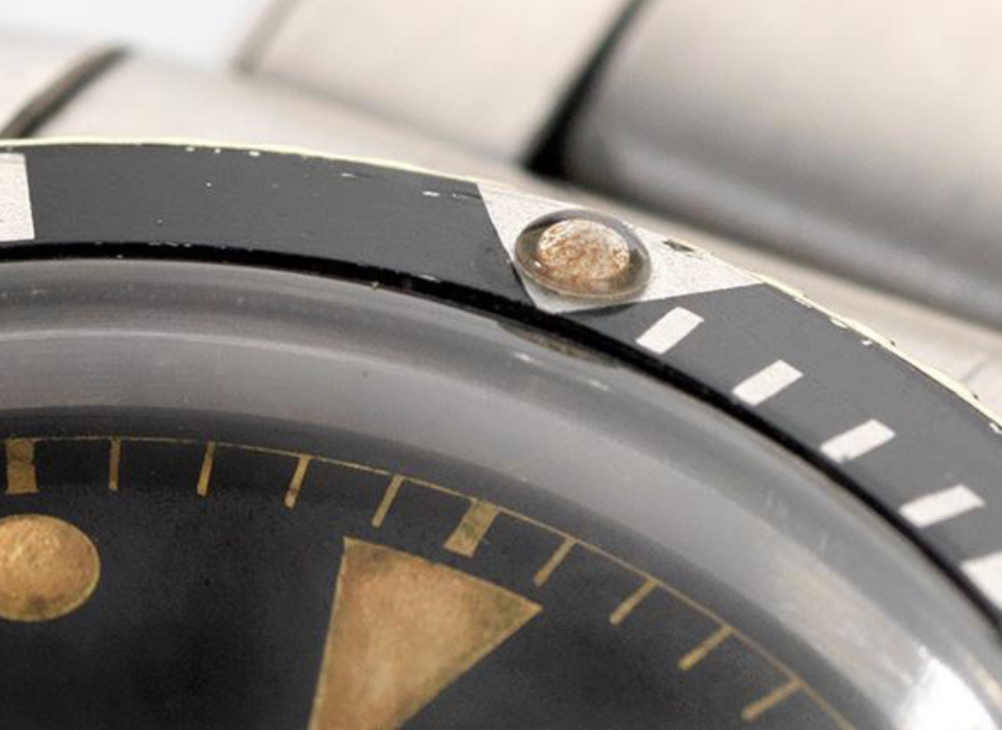 Bezel/Insert/Crystal/Crown: Original brass bezel ring with Crown Art Customs no hash insert. The bezel ring is snug on the case and takes effort to spin. The crystal is clear with a few scratches here and there, no chips or cracks. Crown is 6mm underline and that has a small nick.