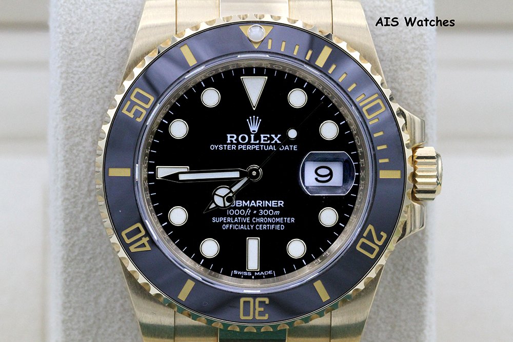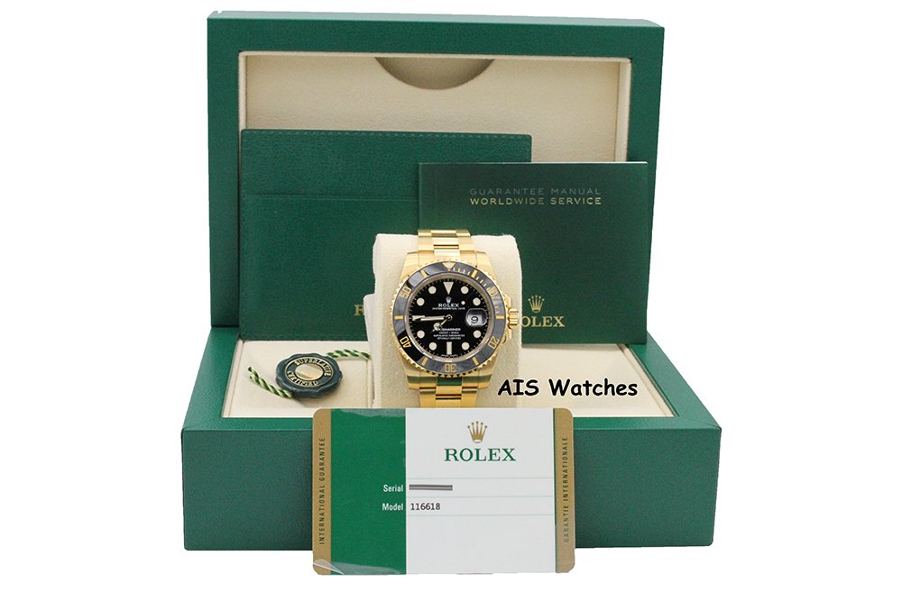 Up for sale a Rolex Submariner Ceramic 116618LN 18K Yellow Gold Black Dial Box & Papers. The timepiece is in excellent condition.