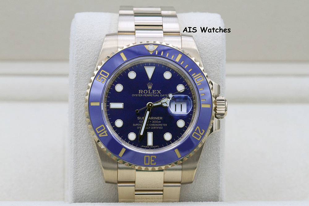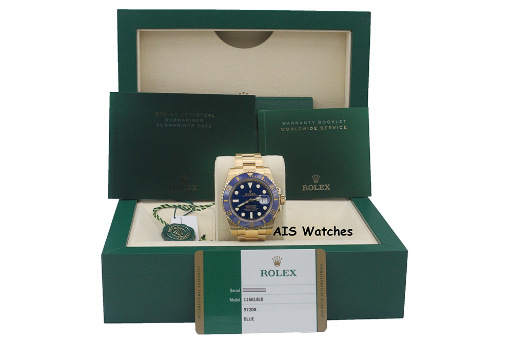 Up for sale a Rolex Submariner Ceramic 116618LB 18K Yellow Gold Sunburst Blue Dial Box & Papers. The timepiece is in excellent condition.