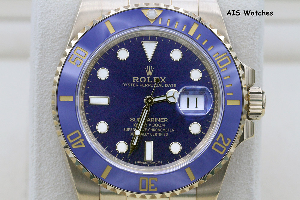 Rolex Submariner Ceramic 116618LB 18K Yellow Gold Sunburst Blue Dial