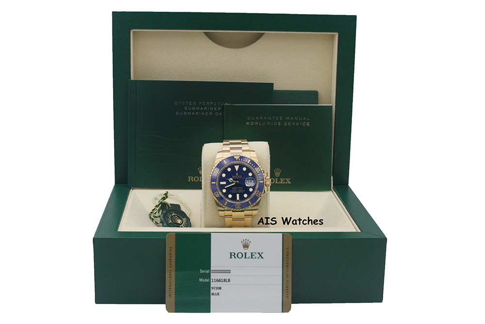 Up for sale a Rolex Submariner Ceramic 116618LB 18K Yellow Gold Sunburst Blue Dial Box & Papers. The timepiece is in excellent condition.