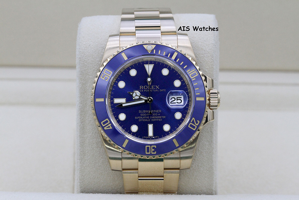 Up for sale a Rolex Submariner Ceramic 116618LB 18K Yellow Gold Sunburst Blue Dial Box & Papers. The timepiece is in excellent condition.