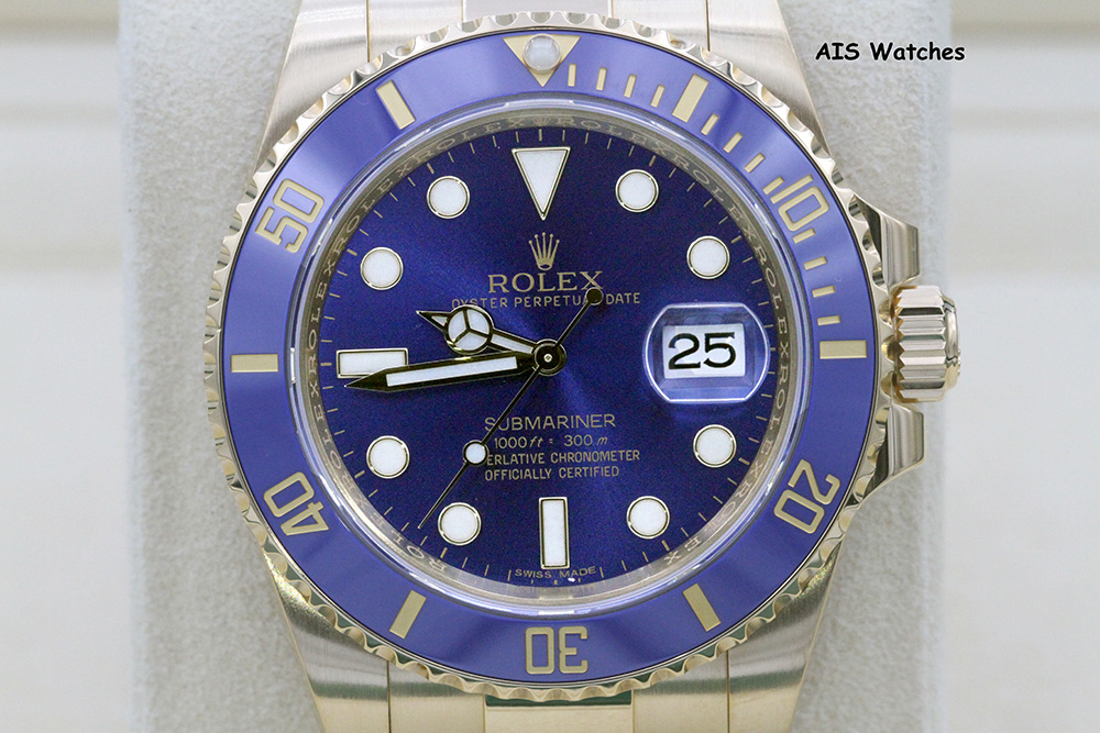 Rolex Submariner Ceramic 116618LB 18K Yellow Gold Sunburst Blue Dial