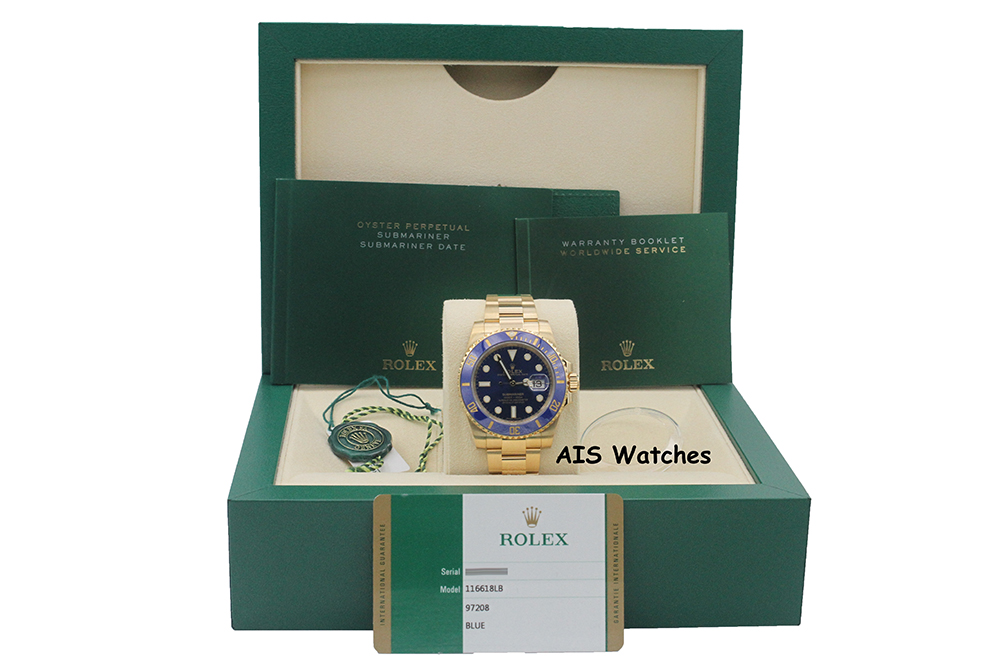 Up for sale a Rolex Submariner Ceramic 116618LB 18K Yellow Gold Sunburst Blue Dial Box & Papers. The timepiece is in excellent condition.