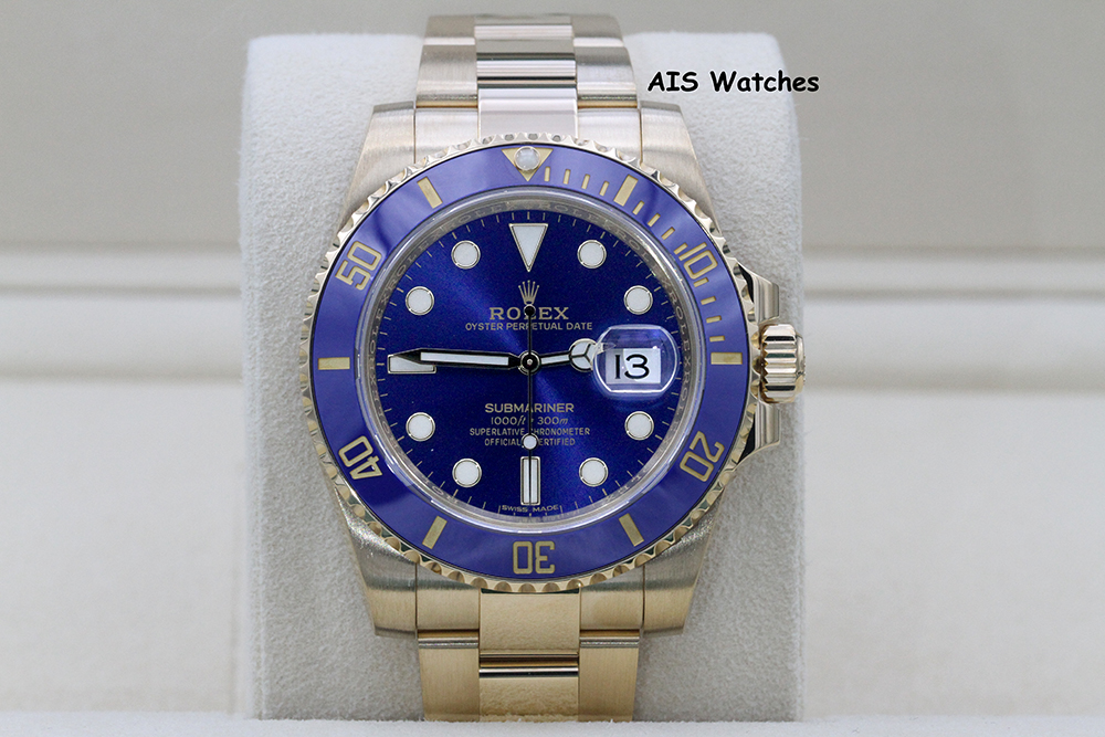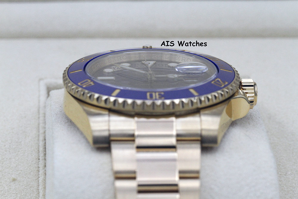 Up for sale a Rolex Submariner Ceramic 116618LB 18K Yellow Gold Sunburst Blue Dial Box & Papers. The timepiece is in excellent condition.