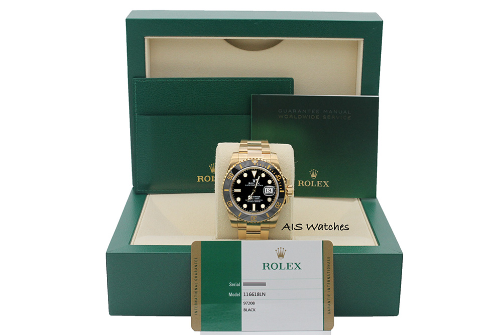 Up for sale a Rolex Submariner Ceramic 116618LN 18K Yellow Gold Black Dial Box & Papers. The timepiece is in clean condition.