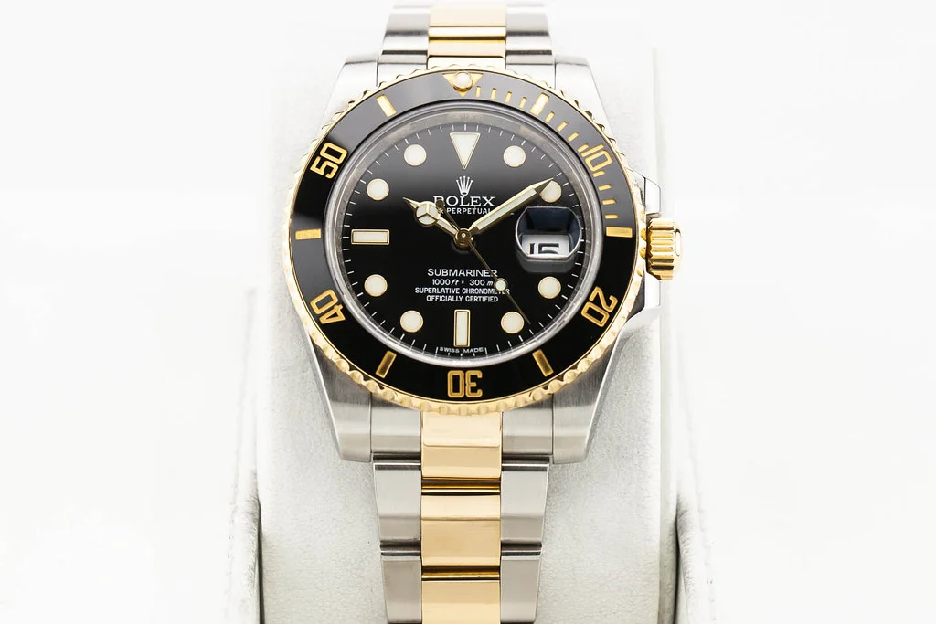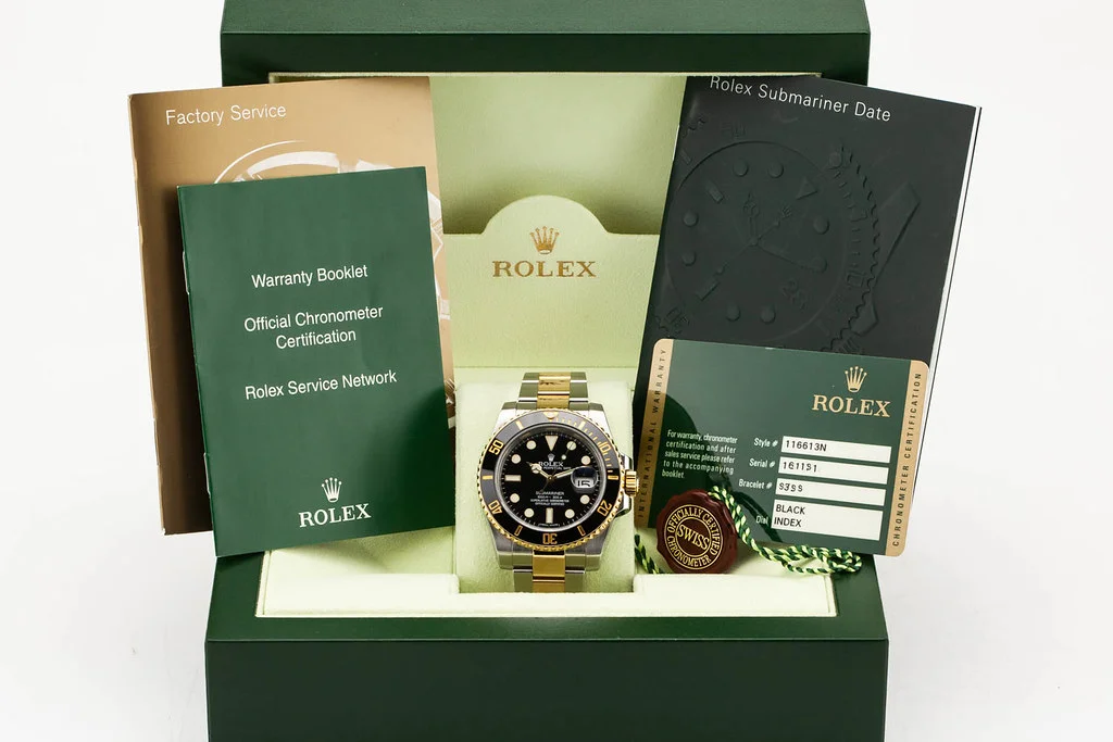·Up for sale is an excellent condition Rolex Submariner Date Two-Tone Black Dial G-Serial 40mm on Steel and Gold Oyster Bracelet, reference # 116613N. It comes with all boxes, papers, booklets, hang tag and Rolex Warranty Card dated November 2013.