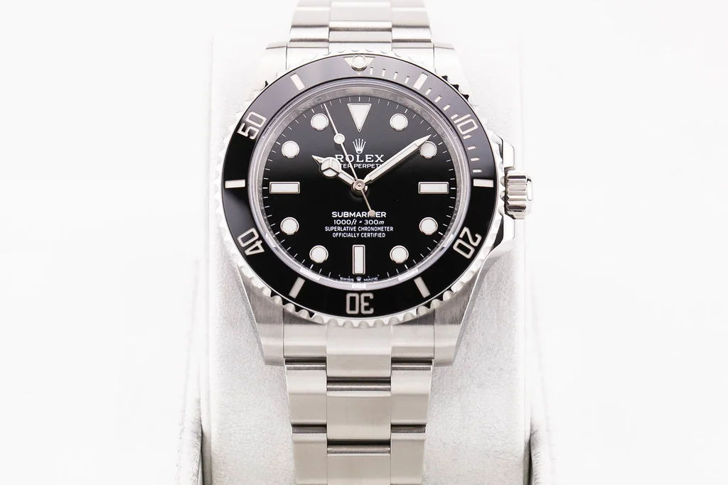 ·Up for sale is an excellent condition Rolex Submariner No Date 41mm Ceramic, reference # 124060. It comes complete with all boxes, papers, booklets, hang tags, and Rolex Warranty Card dated July 2024.