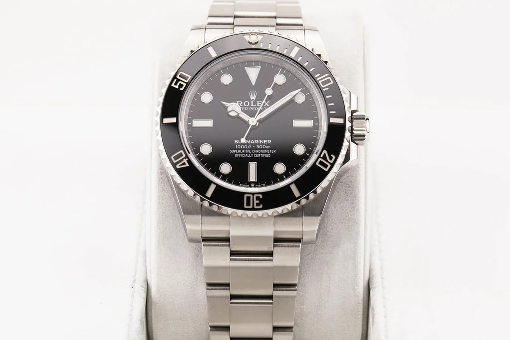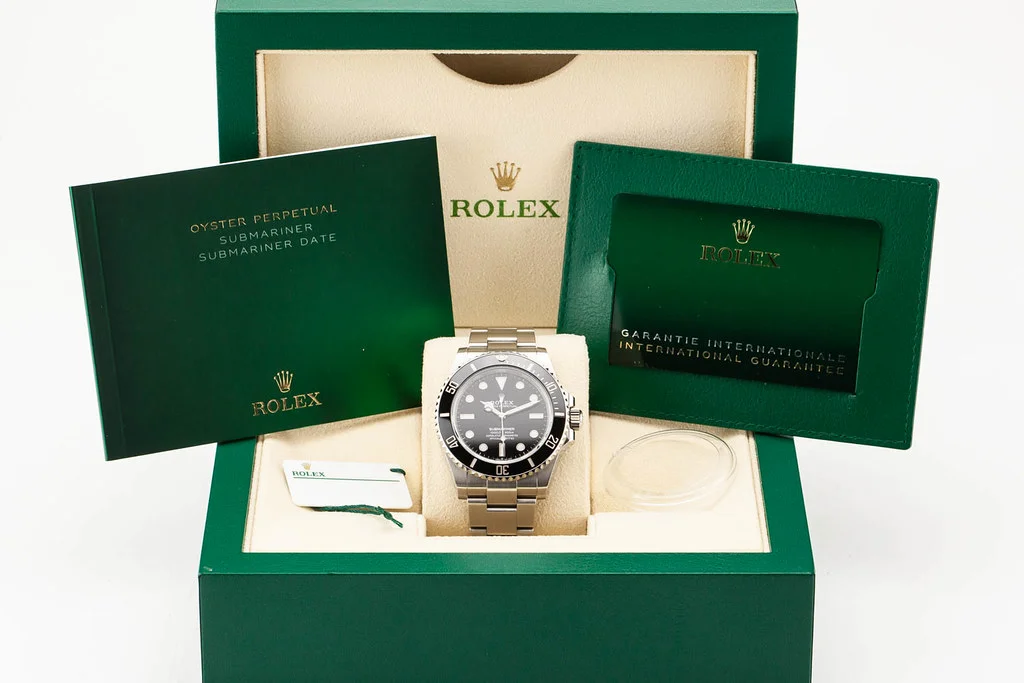·Up for sale is an excellent condition Rolex Submariner No Date 41mm Ceramic, reference # 124060. It comes with all boxes, papers, booklets, hang tag, bezel guard and Rolex Warranty Card dated September 2024.