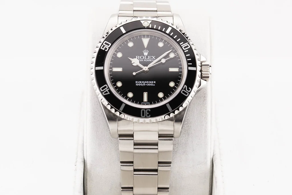 ·Up for sale is an excellent condition Rolex Submariner No Date Black Dial A-Serial 40mm on Oyster Bracelet, reference # 14060. It comes with everything shown - watch, travel case, and Rolex World Service Card only. A-Serial puts this watch's production year around 1999. Underwent full RSC Service as of February 2025.