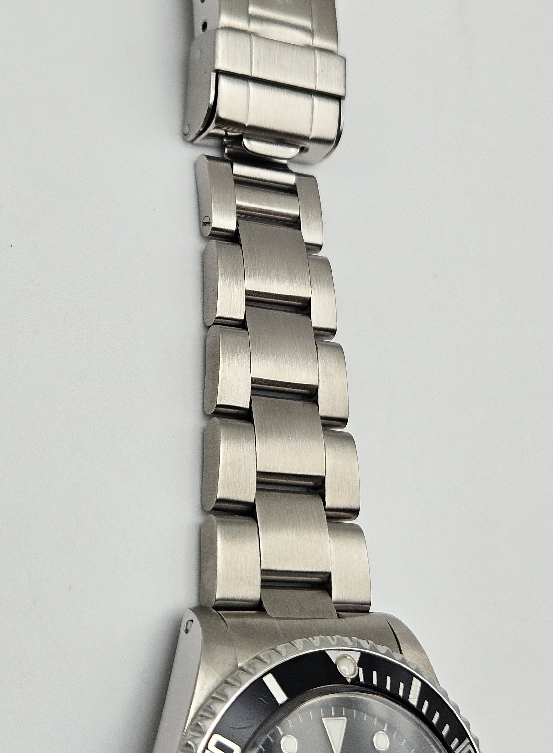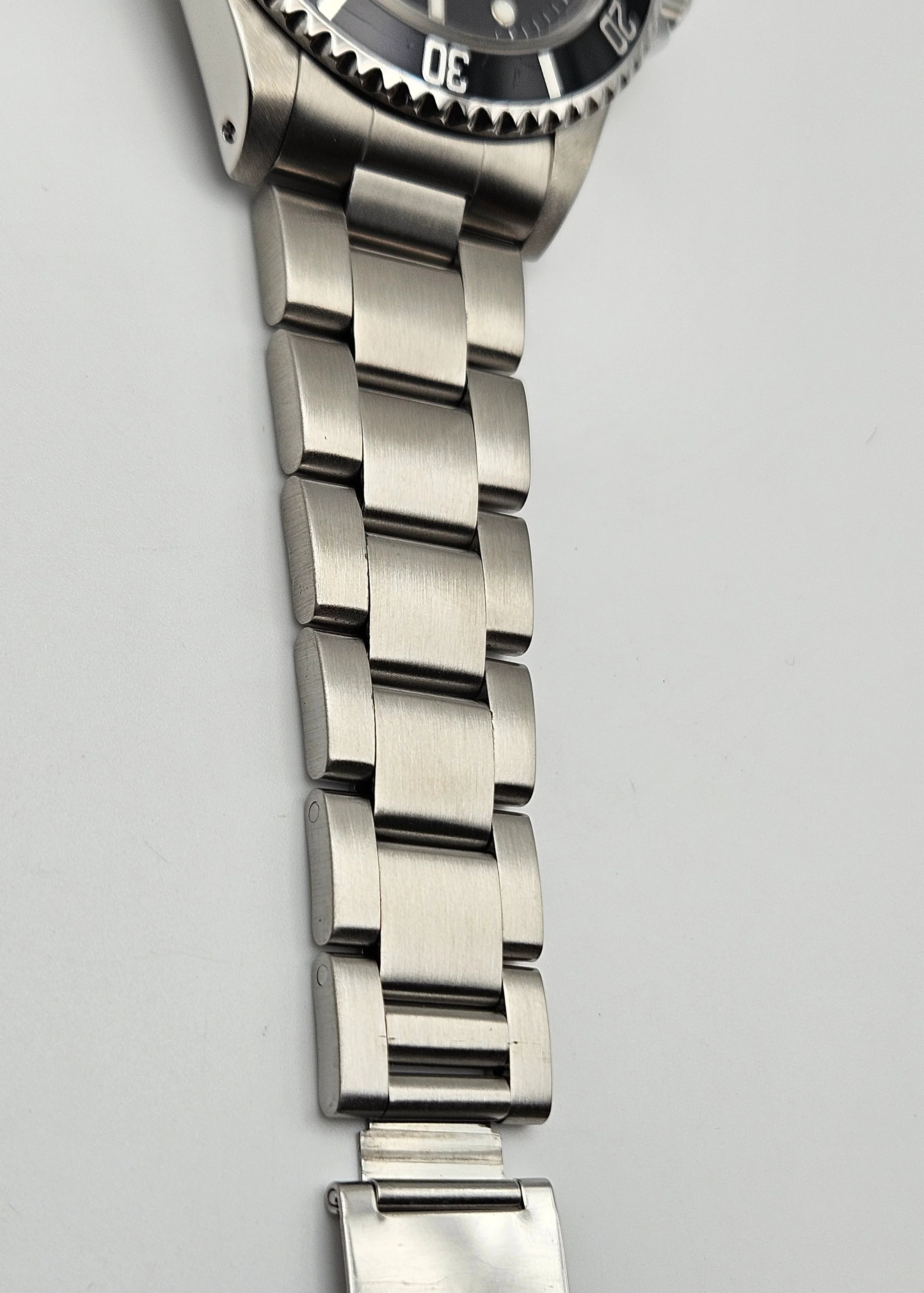 Bracelet: is short 1 link, measures approximately 7 1/8" on the inner circumference and includes the diver's extension. Addl links can be sourced ($75/each; please allow 24-48 hours)