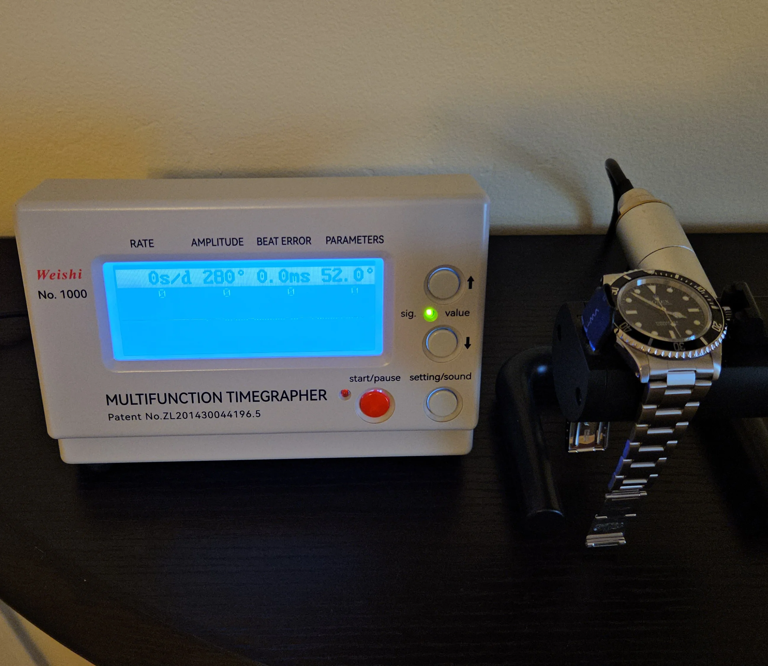 Mechanical Condition: Daily accuracy shows 0 sec/day and strong amplitude (280 degrees), in the dial up position. Timegrapher picture is included for reference.