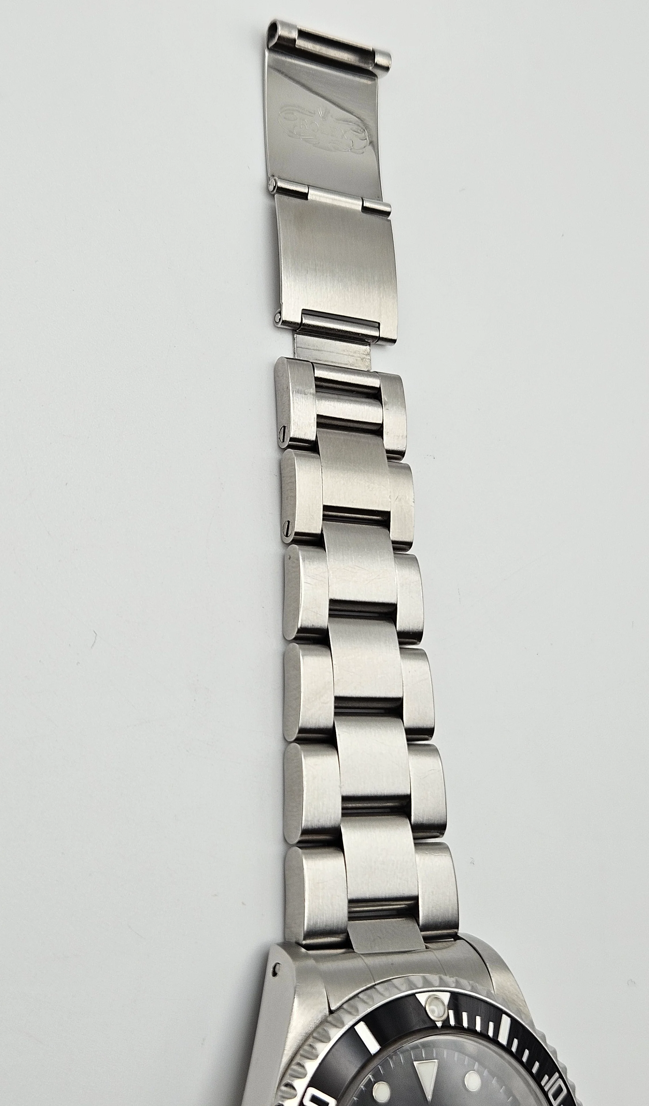Bracelet: is short 1 link, measures approximately 7 1/8" on the inner circumference and includes the diver's extension. Addl links can be sourced ($75/each; please allow 24-48 hours)