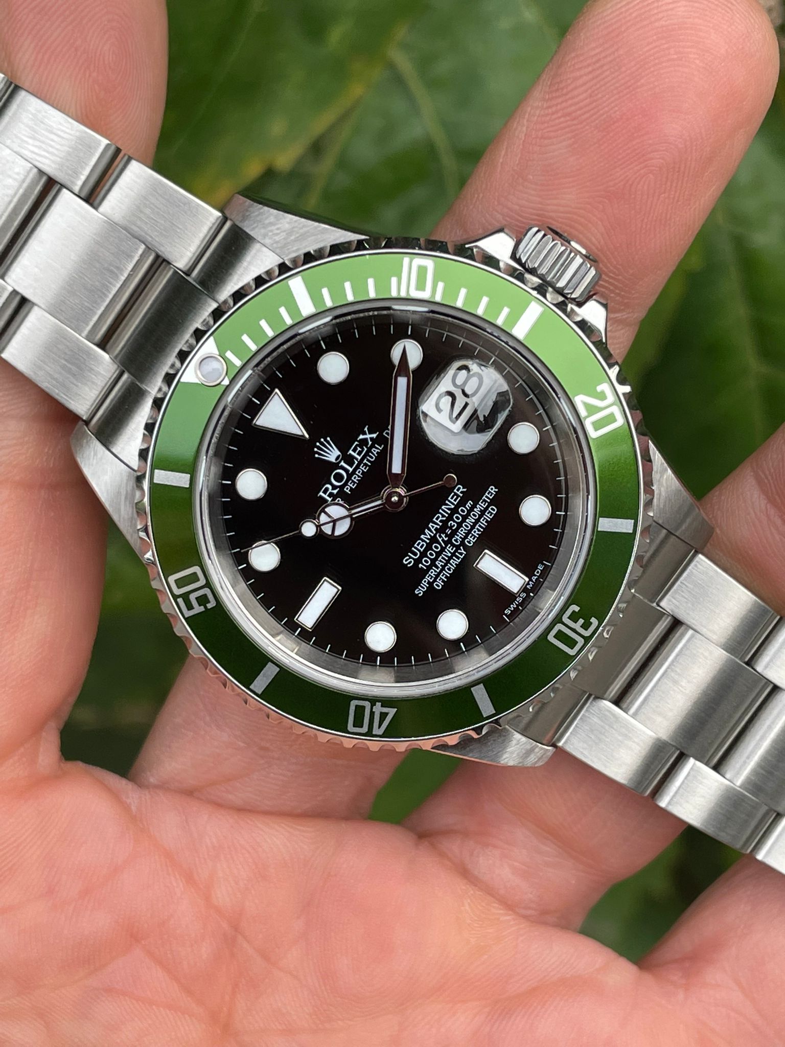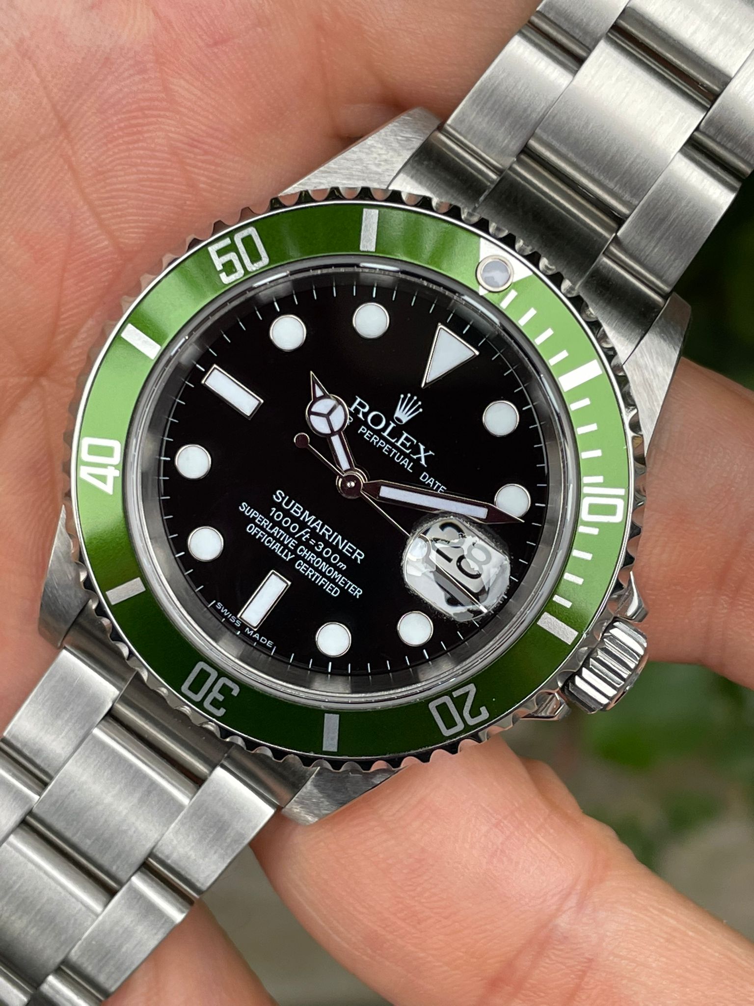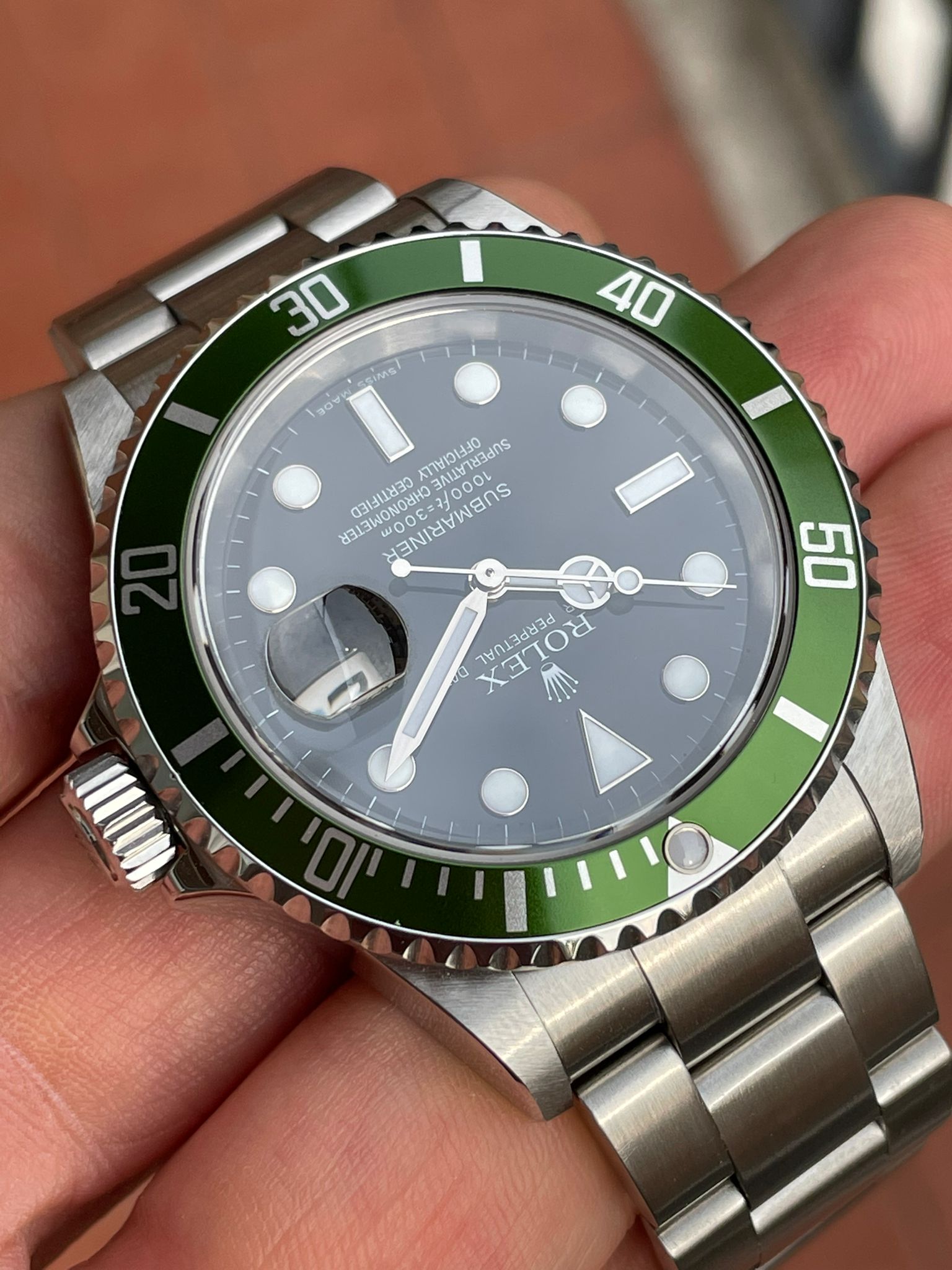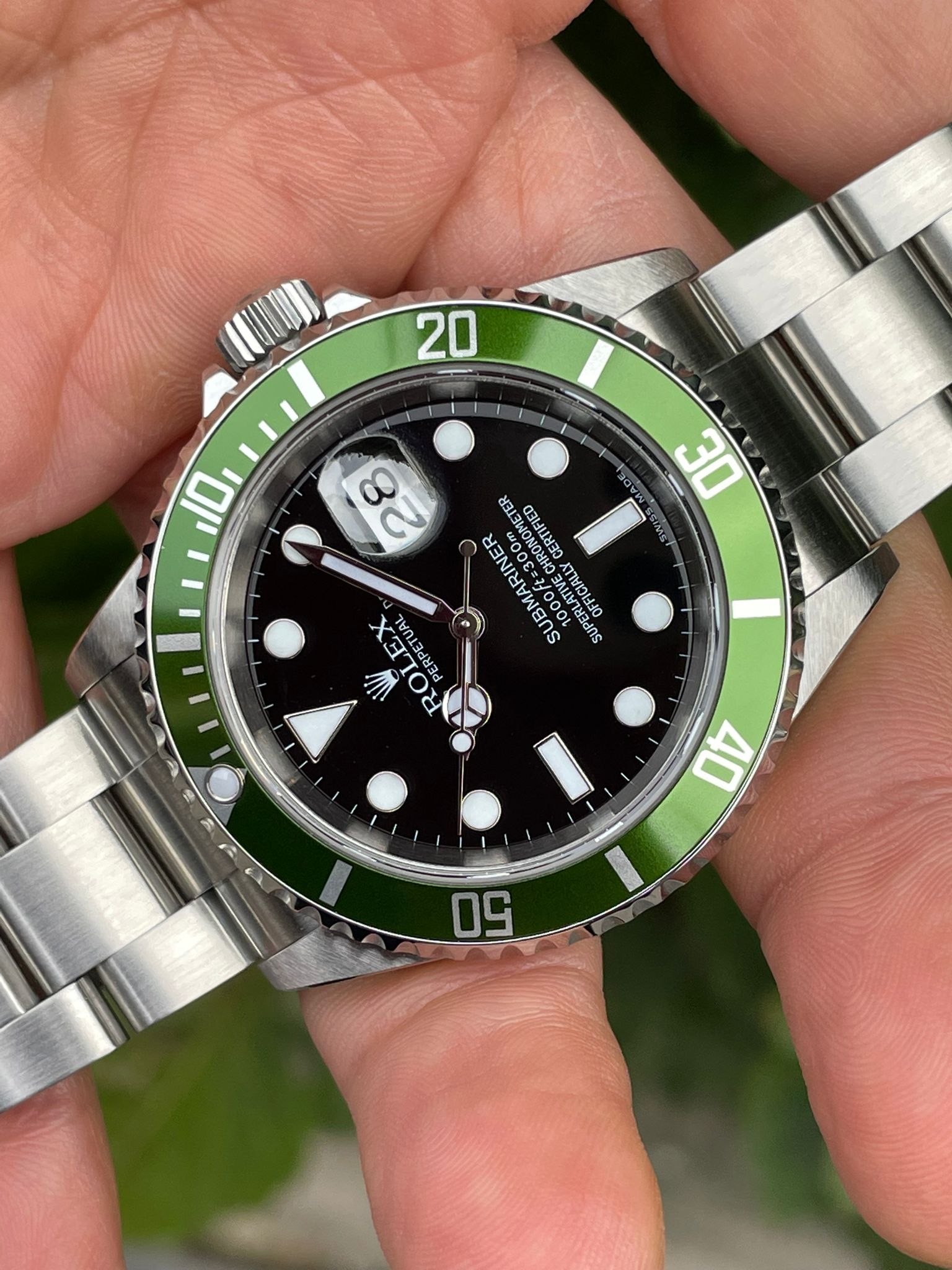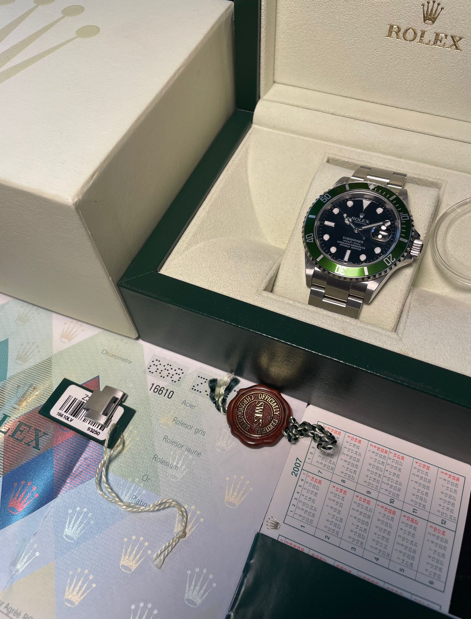 I have for sale an amazing Rolex Submariner "Kermit" Ref. 16610LV full set, with an unpolished case, a perfect dial and a fantastic bezel insert with incredible color.