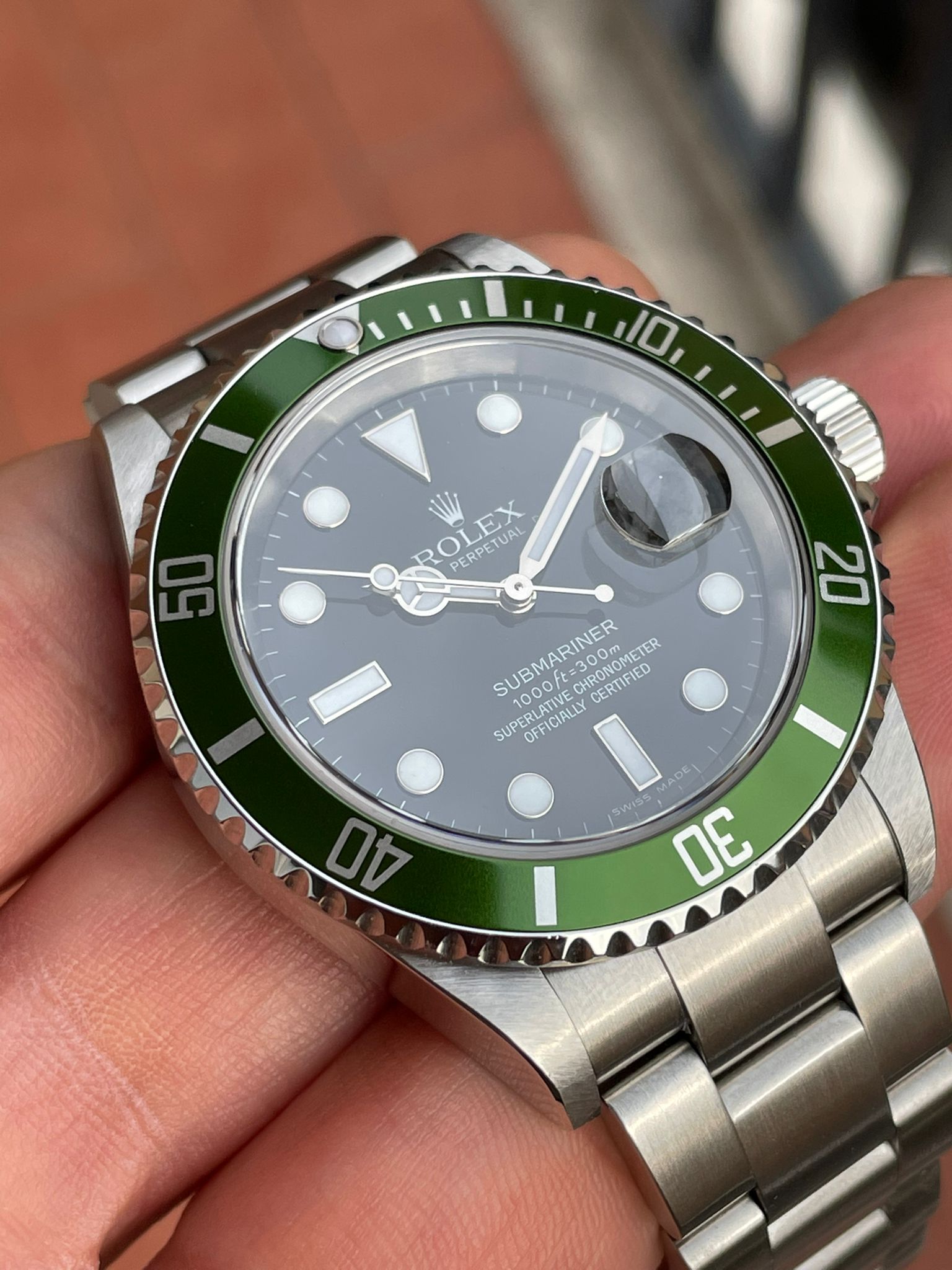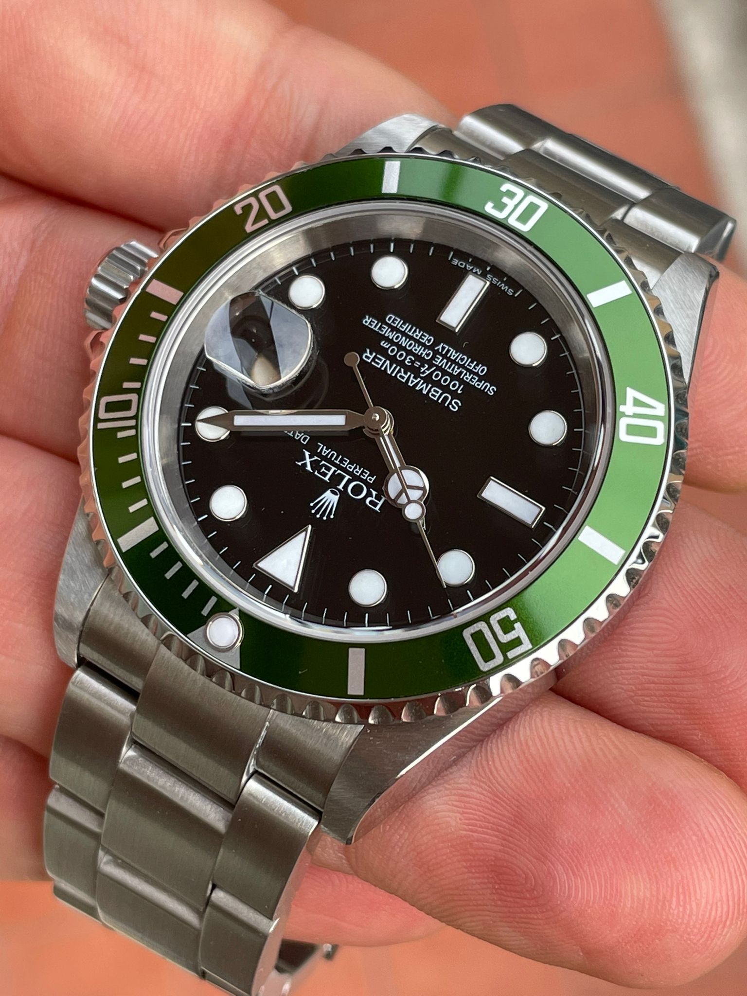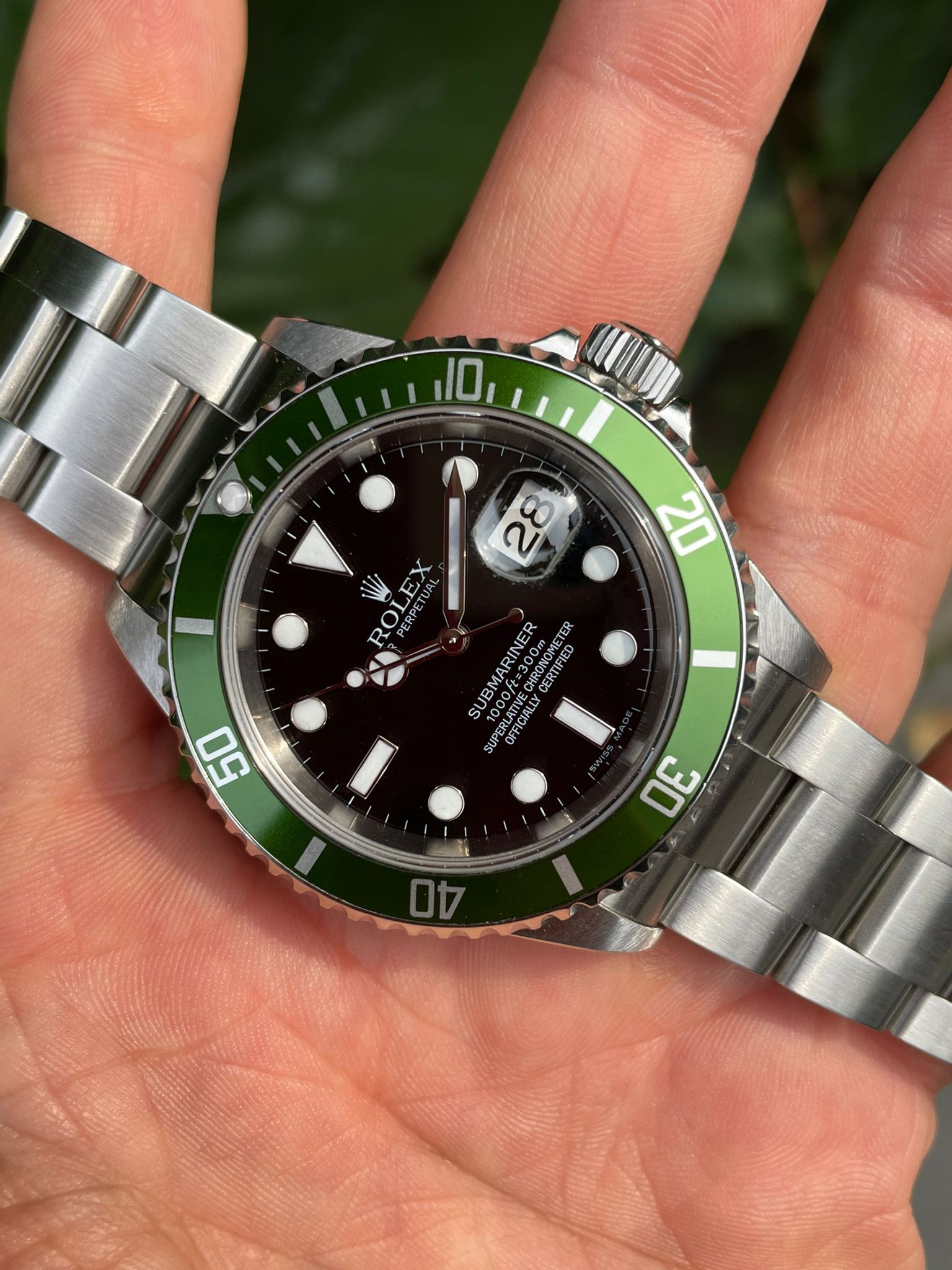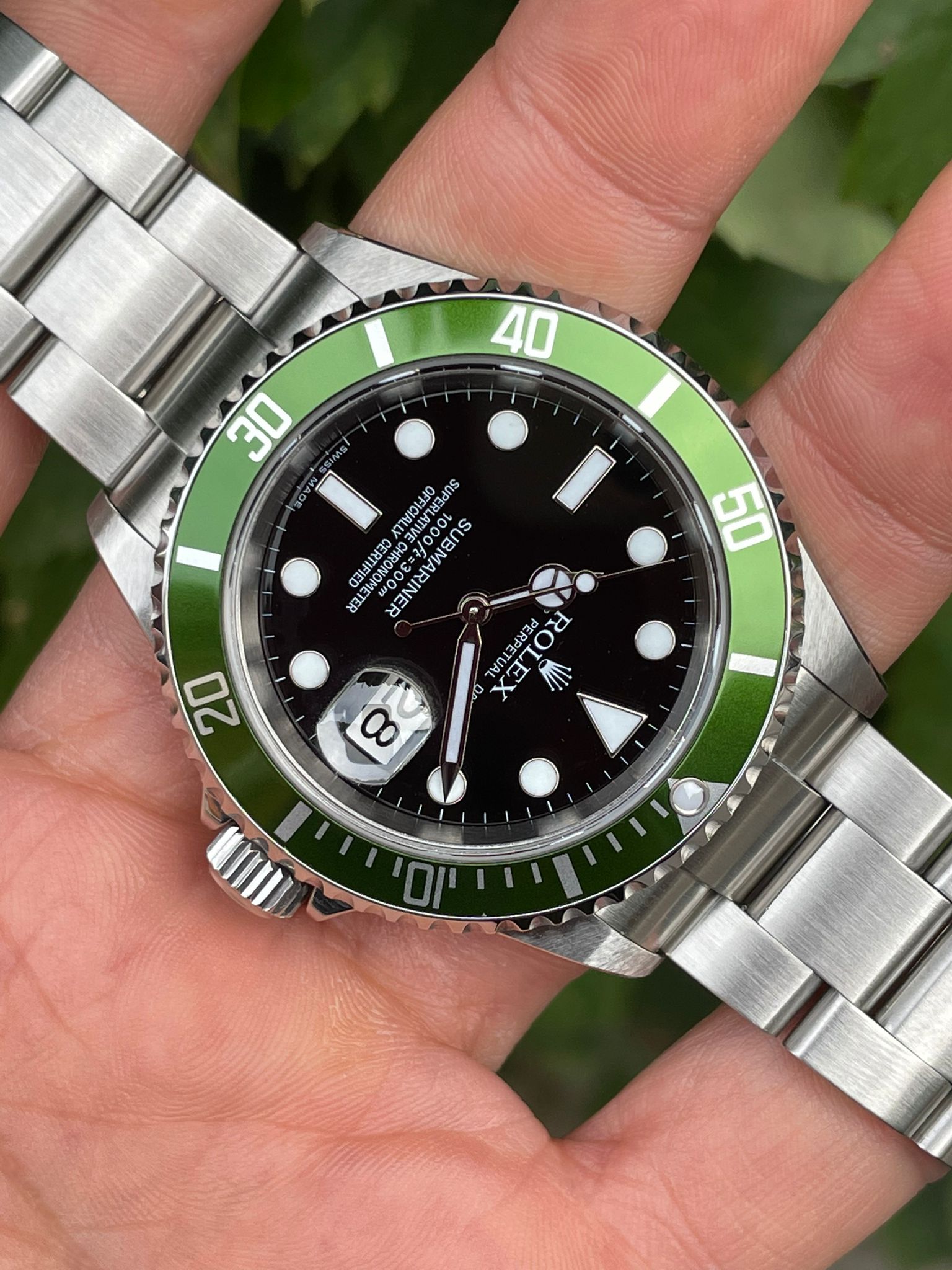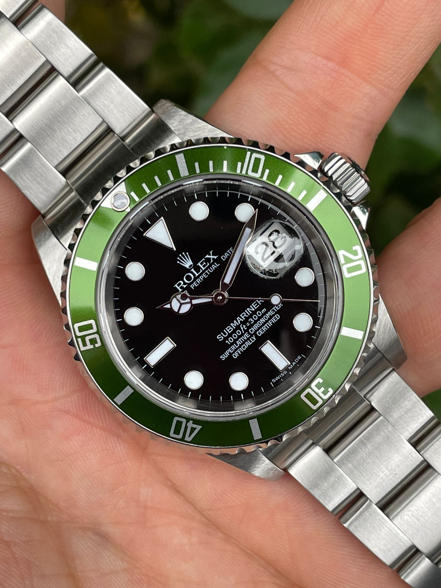 I have for sale an amazing Rolex Submariner "Kermit" Ref. 16610LV full set, with an unpolished case, a perfect dial and a fantastic bezel insert with incredible color.