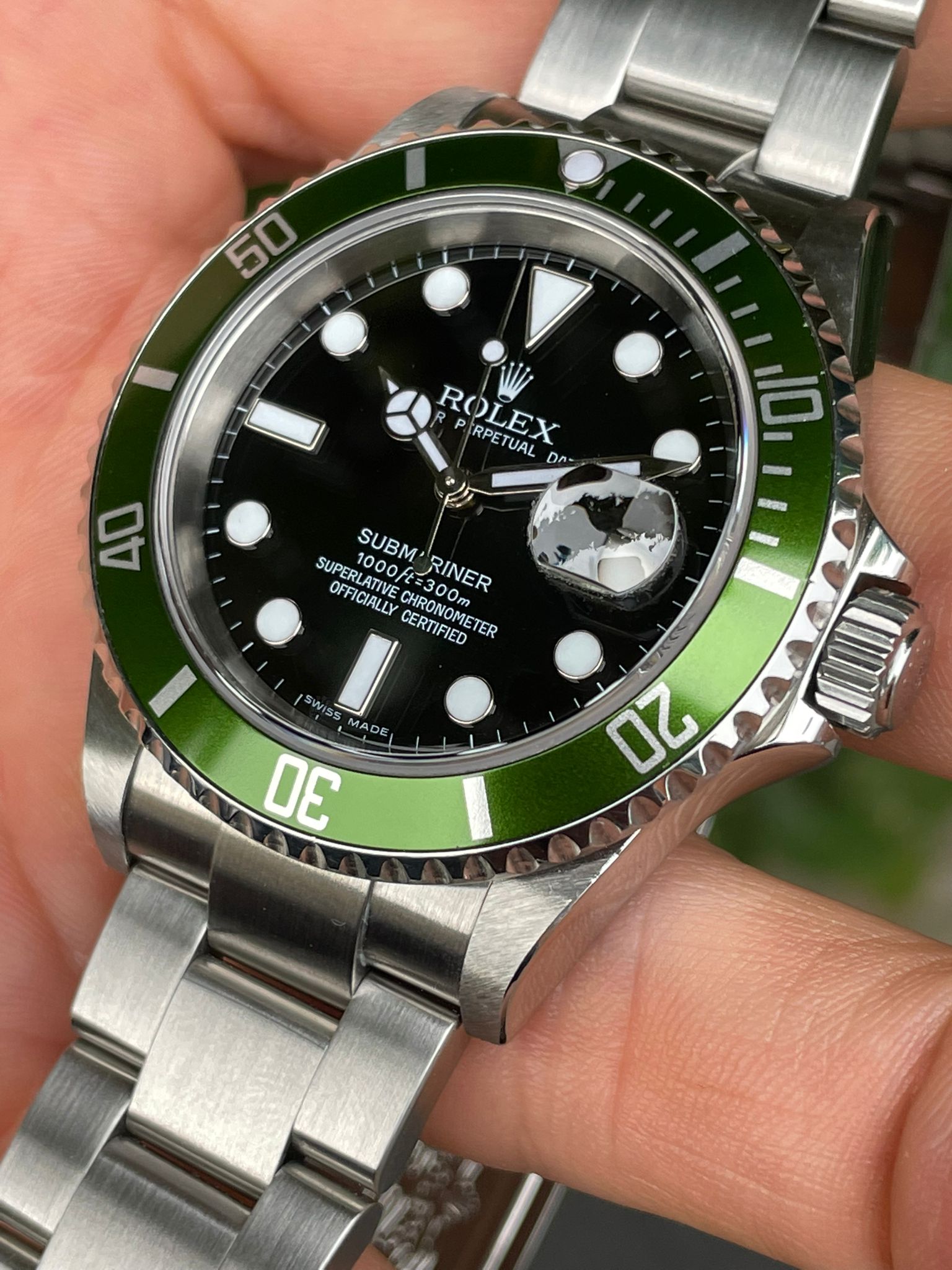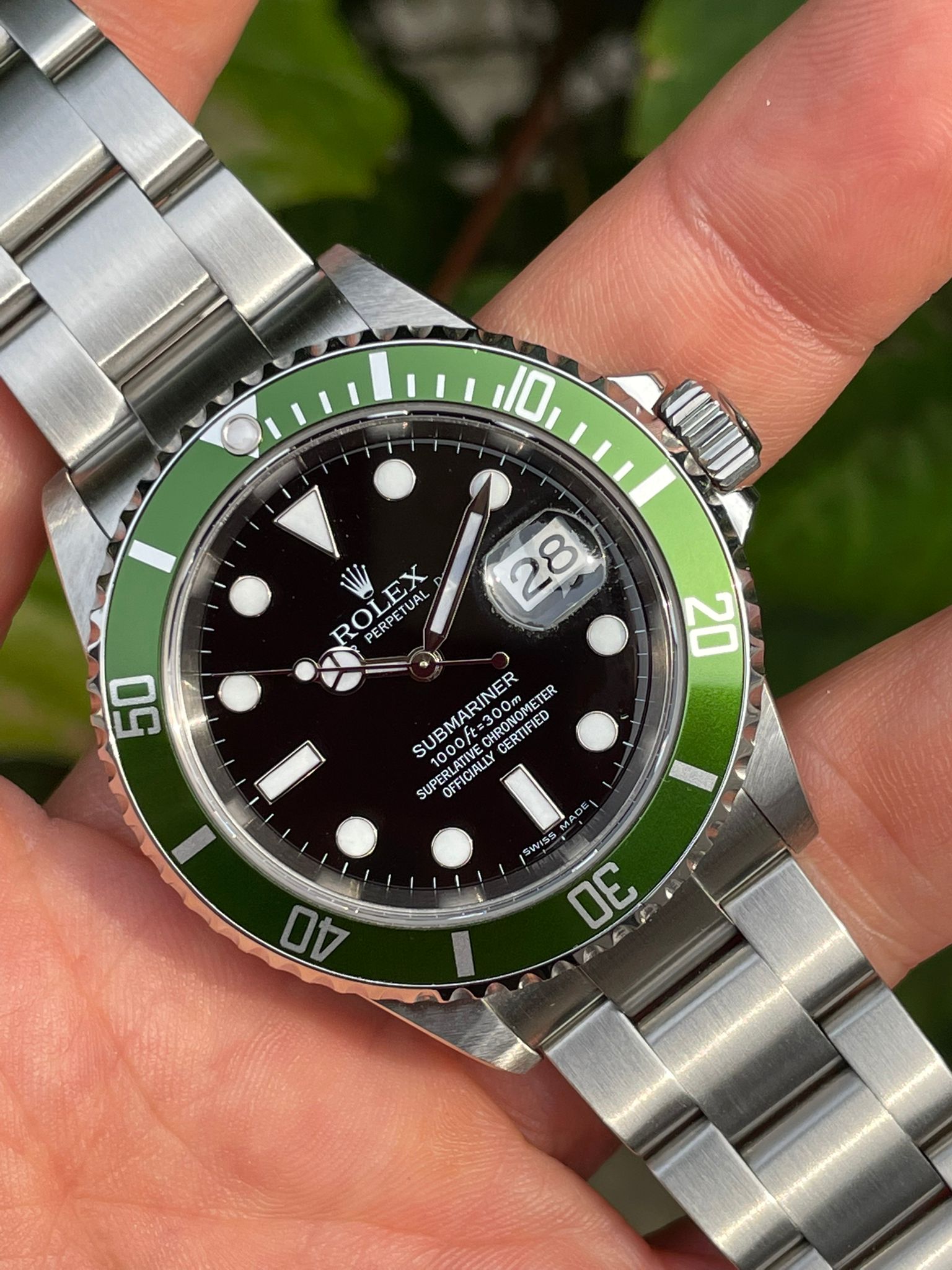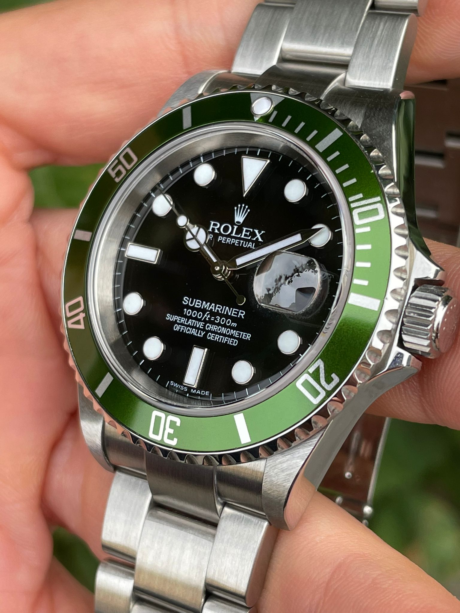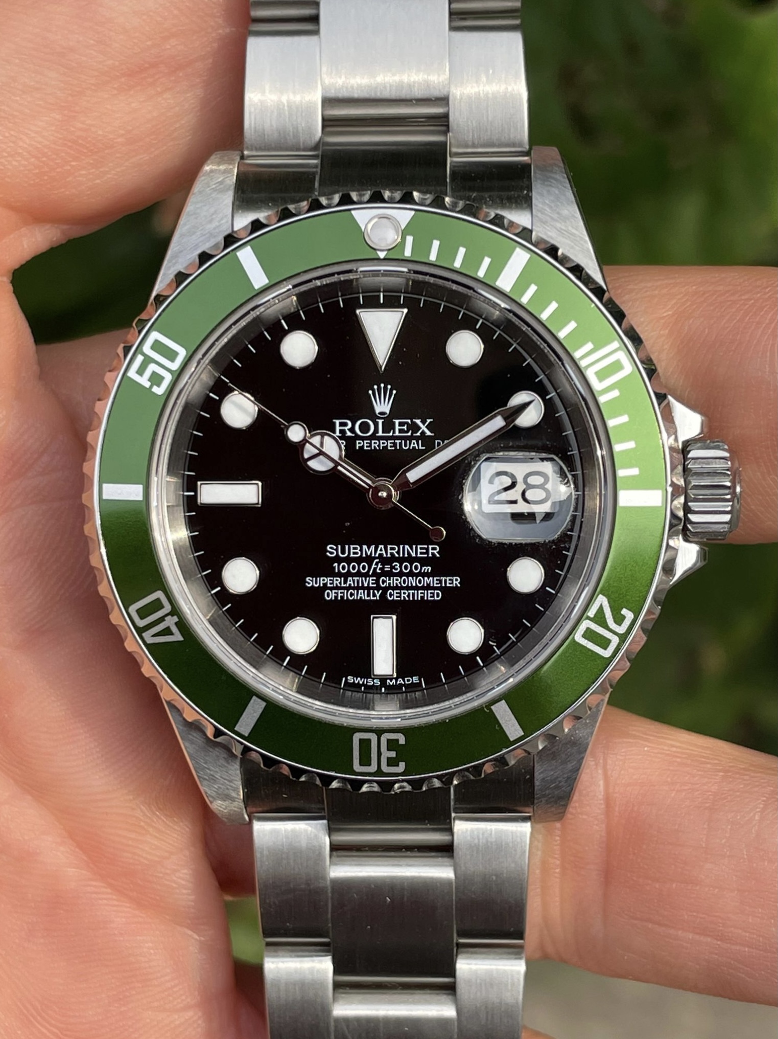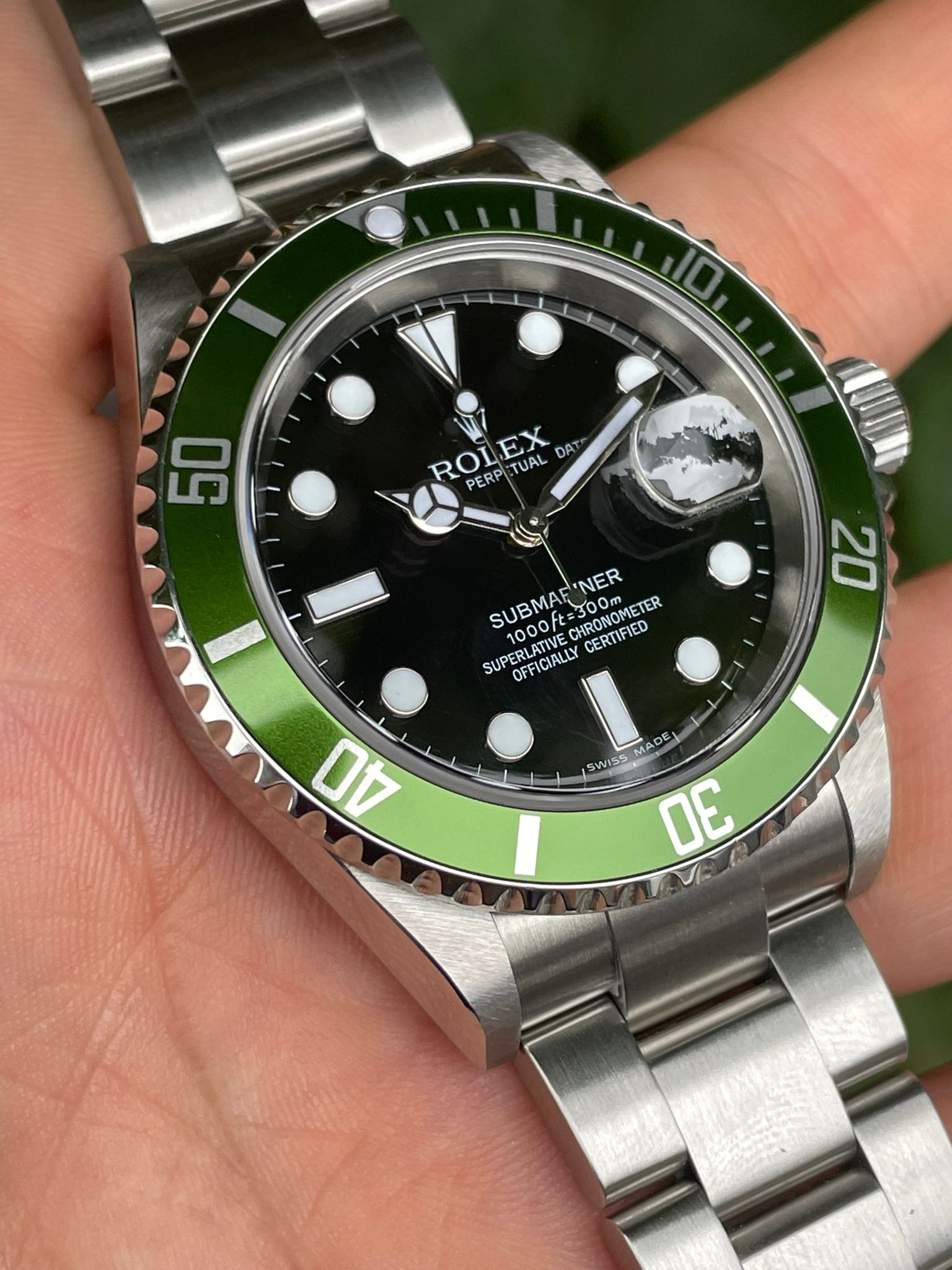 I have for sale an amazing Rolex Submariner "Kermit" Ref. 16610LV full set, with an unpolished case, a perfect dial and a fantastic bezel insert with incredible color.