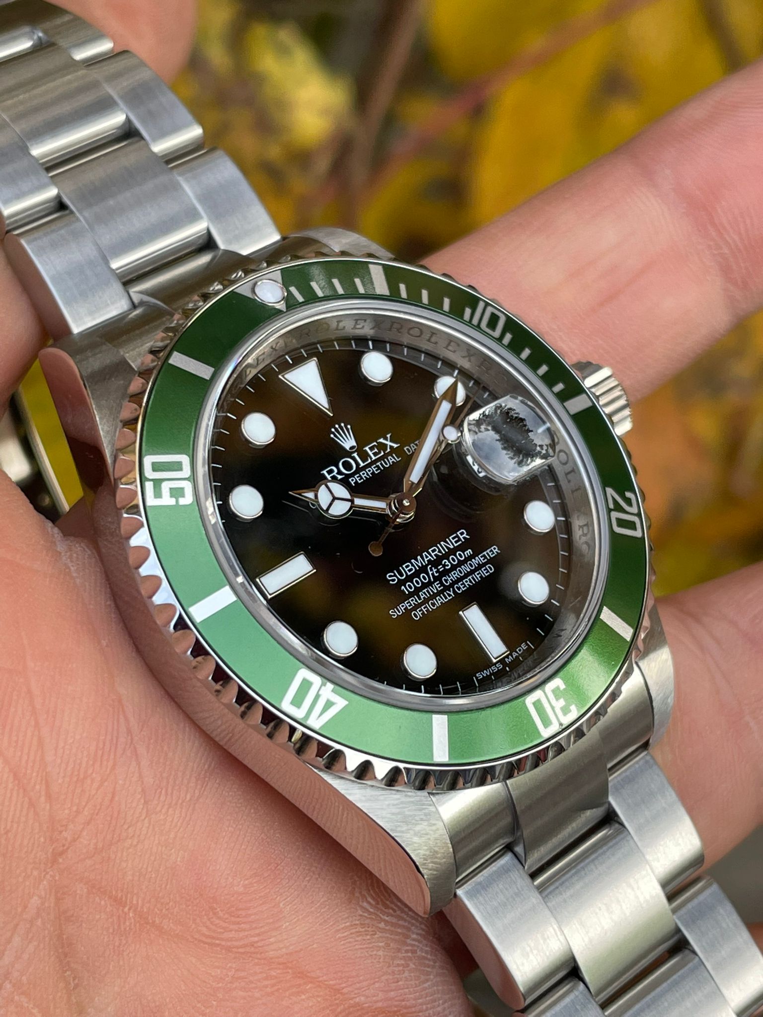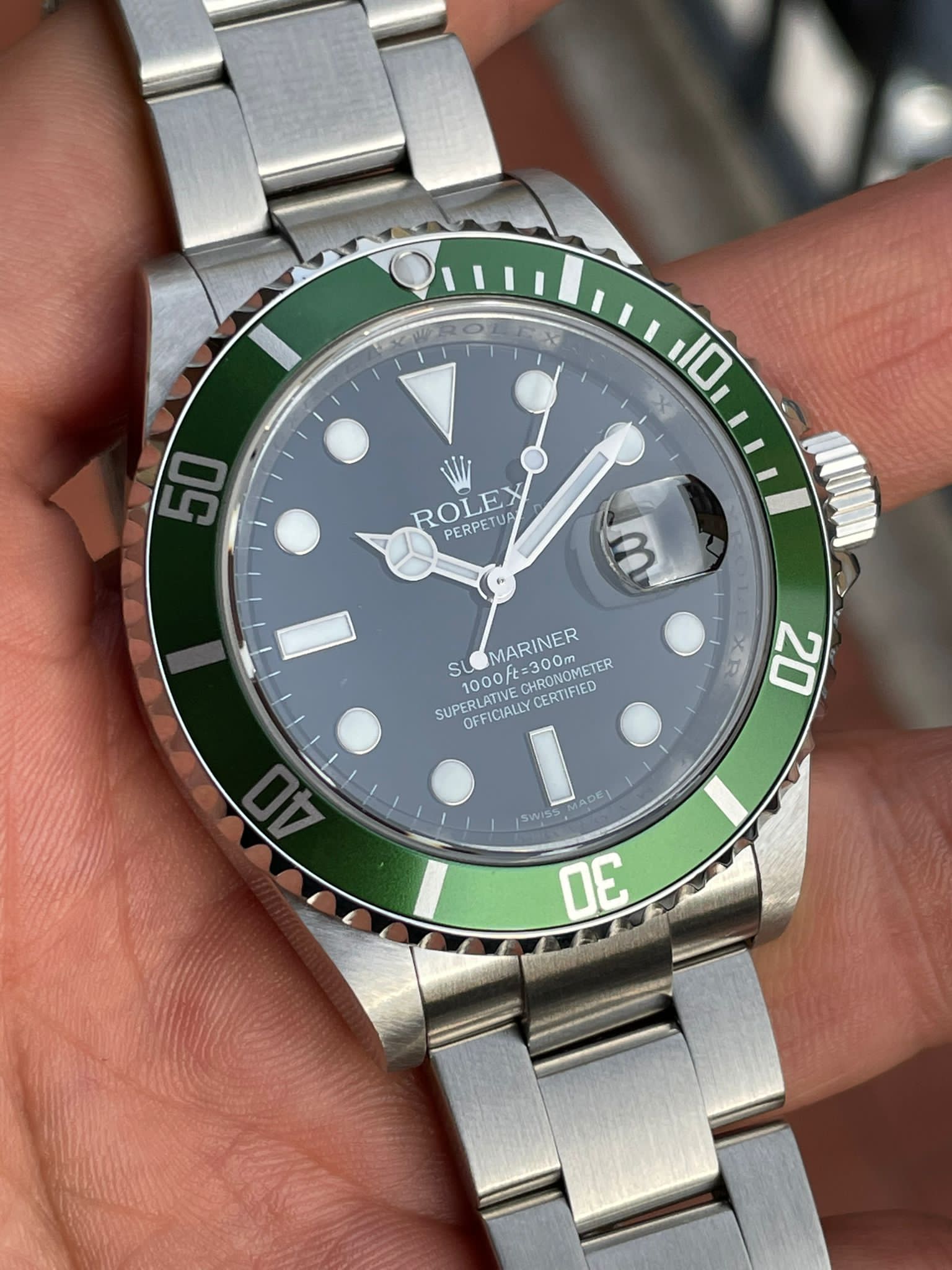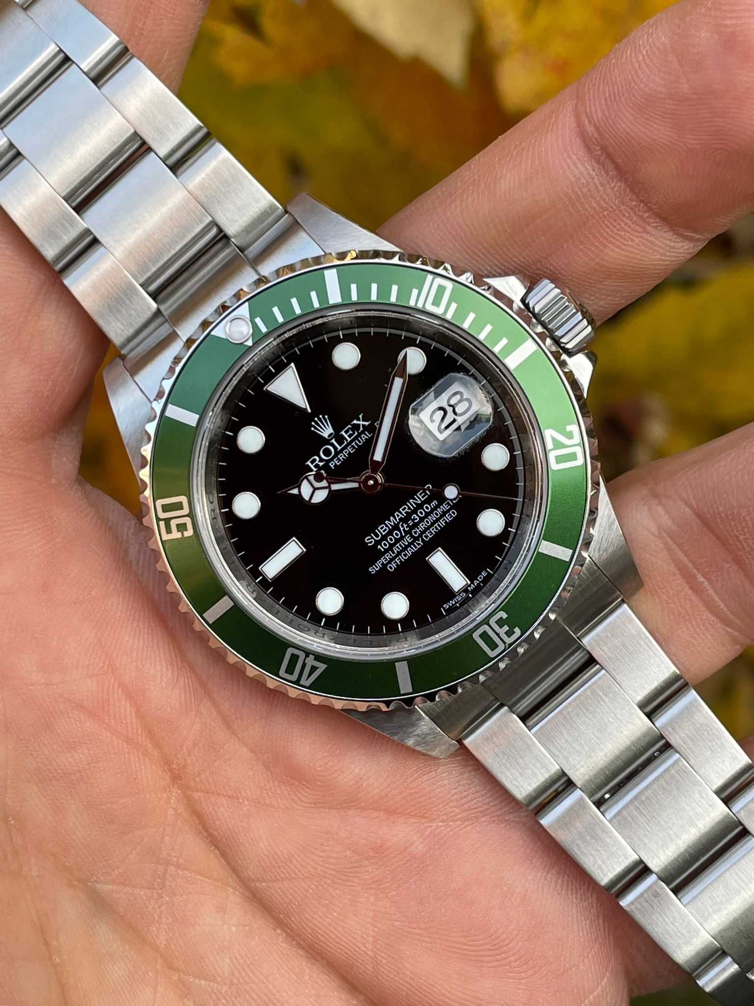 I have for sale a superb Rolex Submariner "Kermit" Ref. 16610LV full set, with an unpolished case, a perfect dial and a fantastic bezel insert with an amazing color.