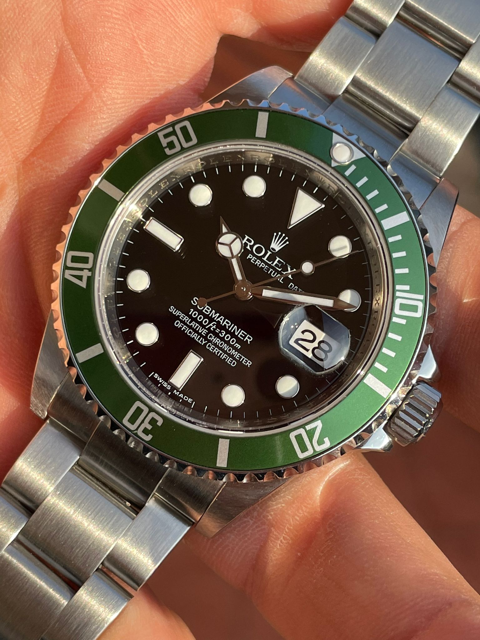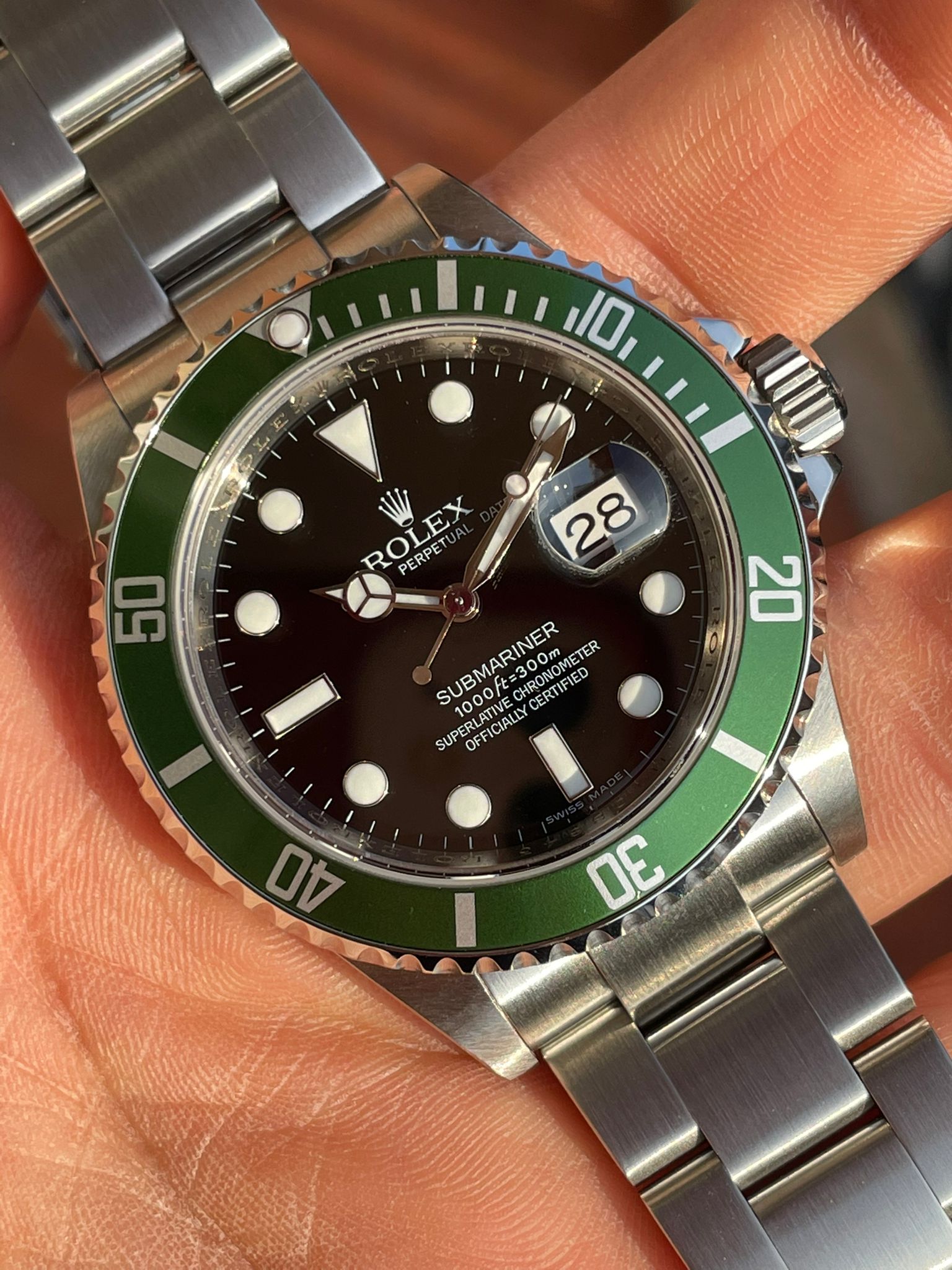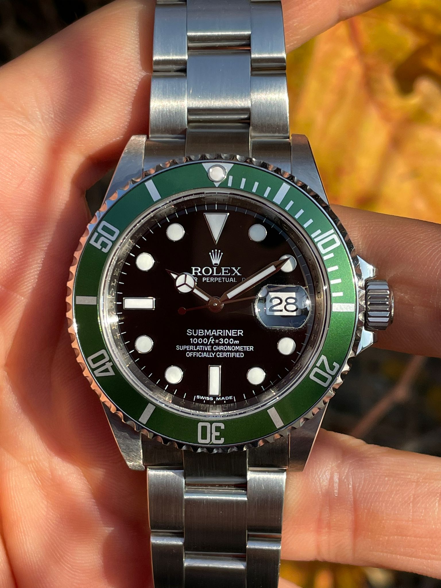 I have for sale a superb Rolex Submariner "Kermit" Ref. 16610LV full set, with an unpolished case, a perfect dial and a fantastic bezel insert with an amazing color.