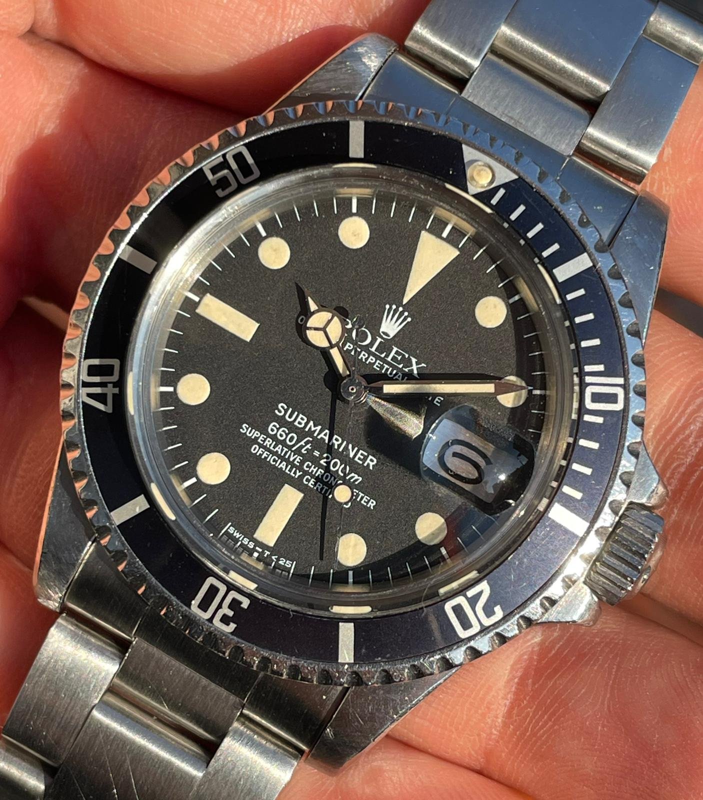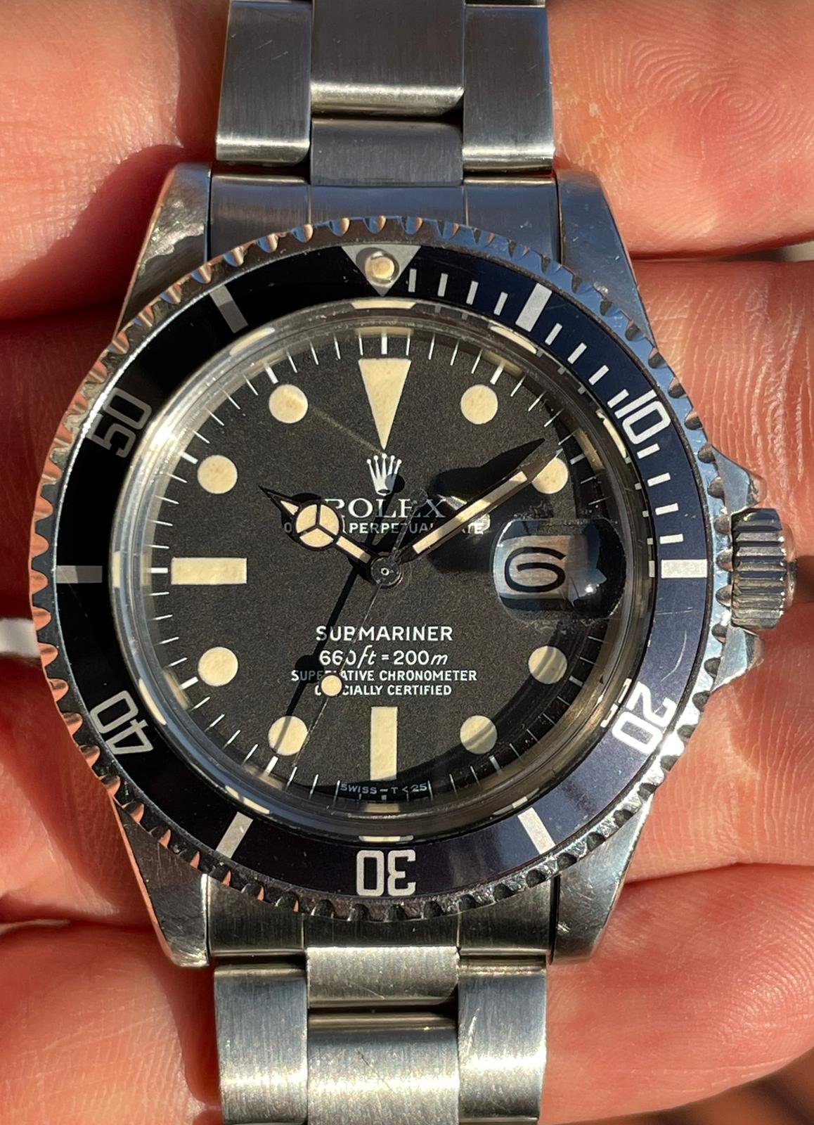 This extraordinary example of 1680 comes directly from the family of the original owner and it's offered as found, preserved in a truly untouched condition: super strong unpolished case, killer matte dial with beautiful lume patina and a nicely aged bezel.