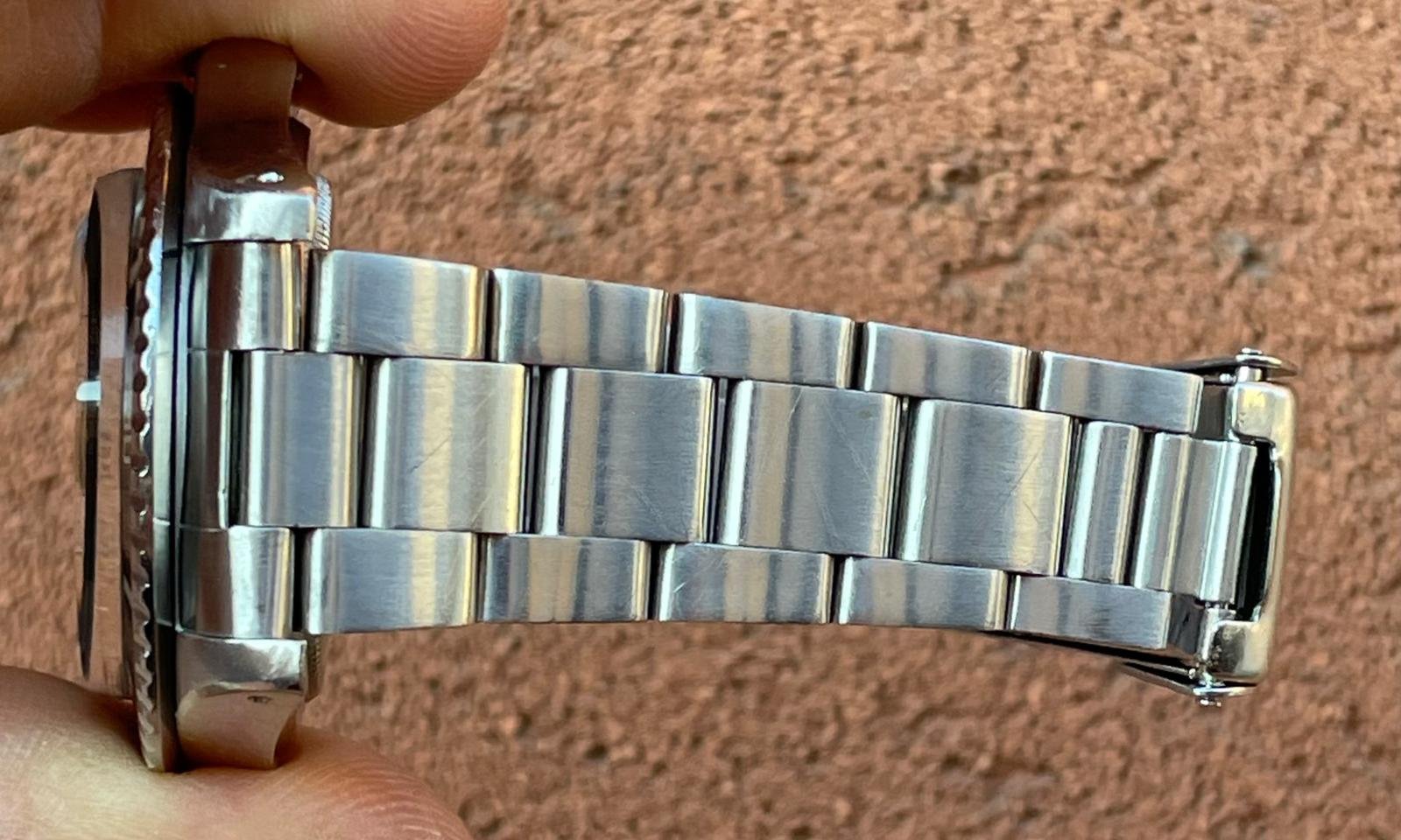 The bracelet is the original 93150 with 580 endings in very good conditions with all the 12 links and the clasp code (A) matches the year of the serial number.