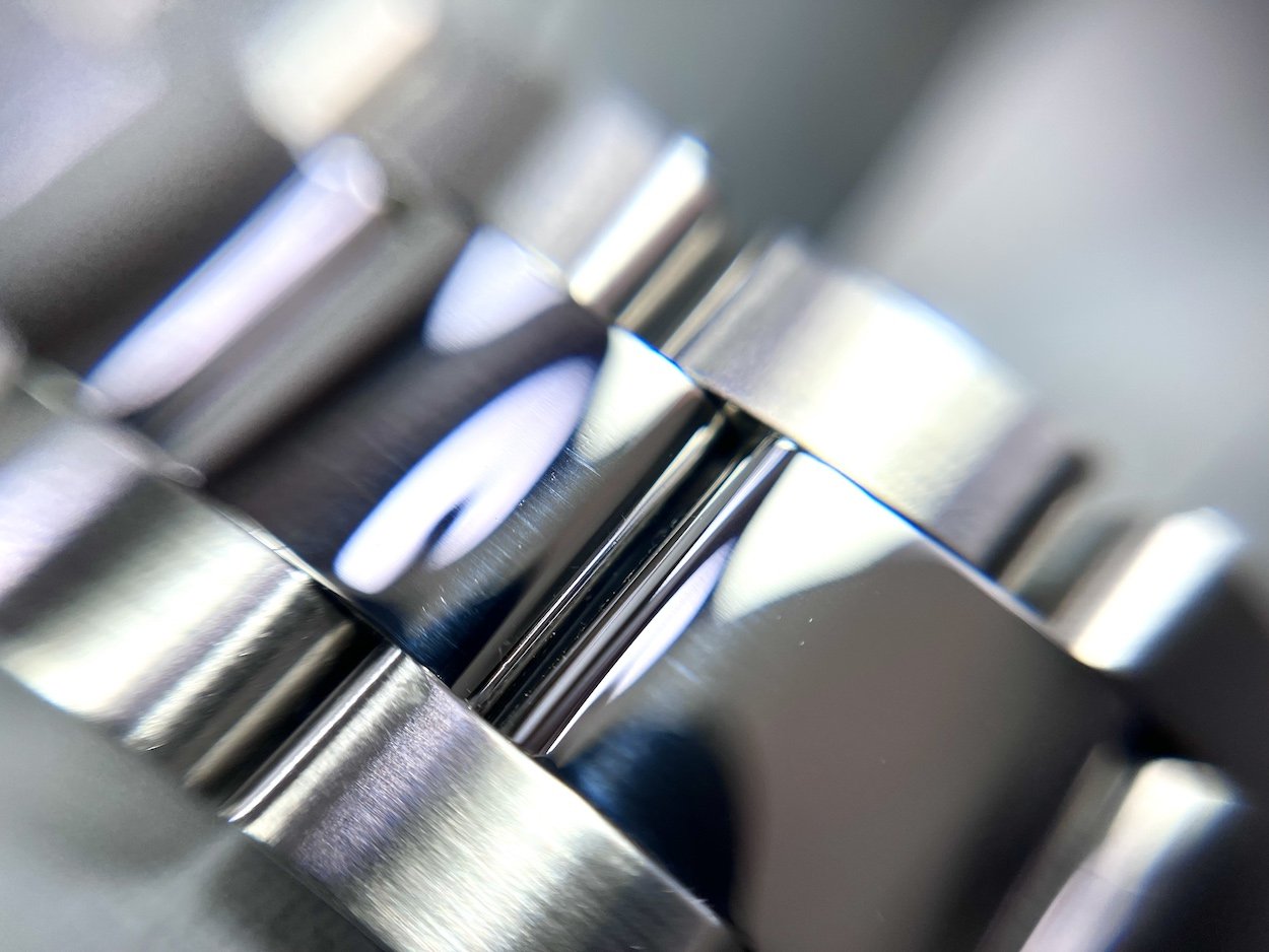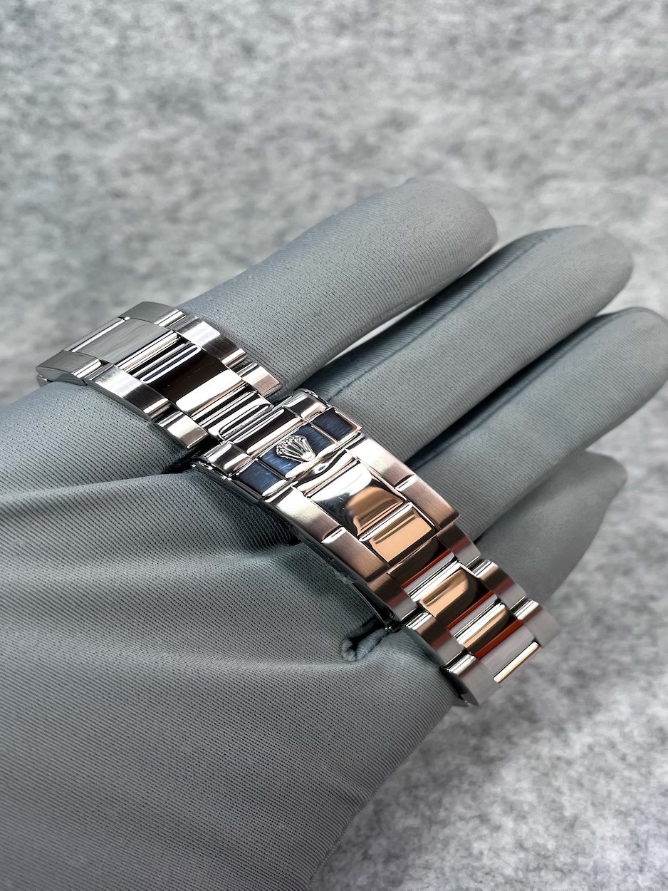 Design: Oyster bracelet with flat three-piece links (11 links supplied)