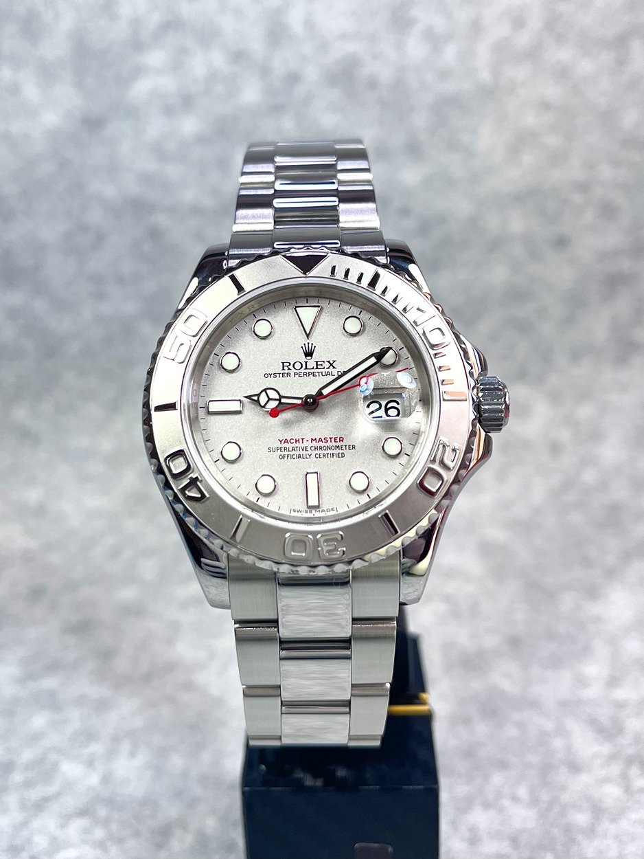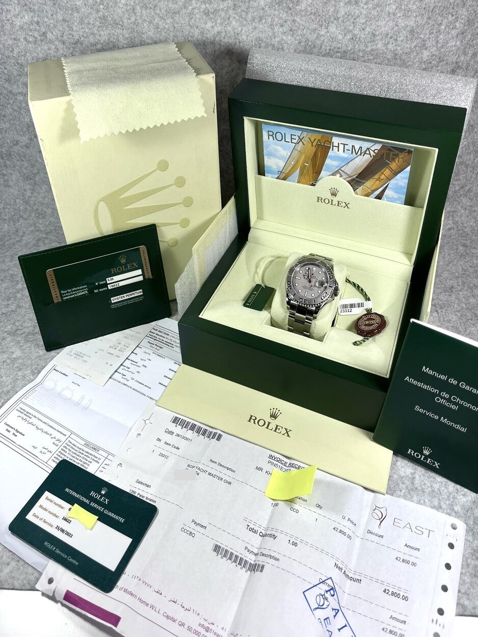 I have a 2011 (G serial) Rolex Yacht master 16622 with the platinum bezel and dial. Selling for only £10,999 or best offer. I am the second owner. Originally purchased from an authorised dealer in 2011. The watch is in excellent cosmetic and functional quality. A full Rolex service (at a cost of around £700) was carried out in 2023 and still under warranty (until August 2025). The watch has been babied, worn minimally and taken good care of. It comes complete with outer card box, Rolex plastic box, microfibre cloth, watch cushion, foam sheet, non-dated/ named factory warranty card, leather card holder, two plastic tags, Yacht Master manual, Chronometer manual, 2023 RSC service card papers and receipt. Also present is the original Rolex 535 AD invoice receipt from 2011. Watch is in excellent condition with minimal marks etc. The watch has been kept in my tough, watertight, dustproof, pressure equalised PELI 1450 watch case (not inc) in a temperature controlled room and opened once a month to give the movement a full wind.