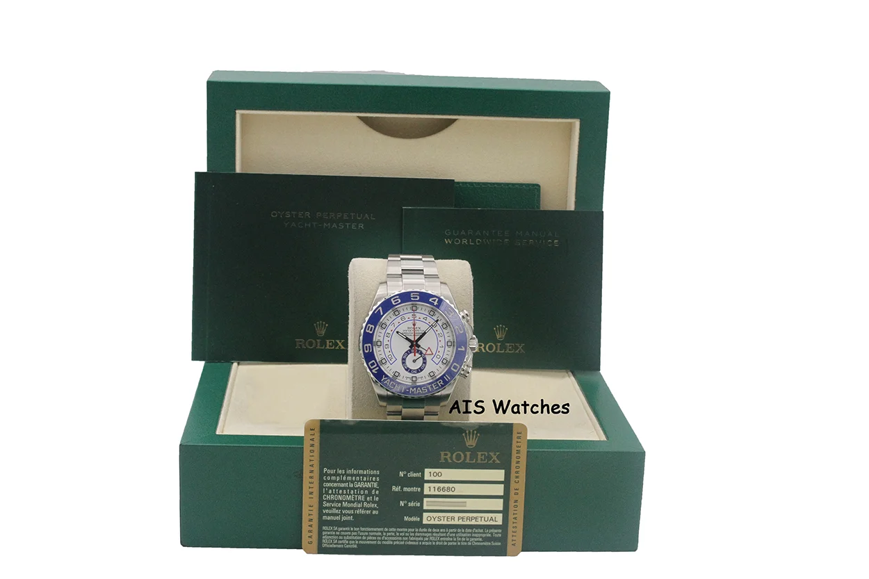 Up for sale is a Rolex Yacht-Master II YMII 116680 MK1 Dial 44MM Ceramic Bezel Stainless Steel Box & Papers. The timepiece is in excellent condition.