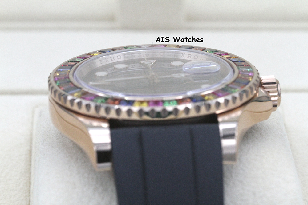 ** Rolex Yachtmaster 116695 SATS Gem Set Bezel Everose Gold OysterFlex Strap
