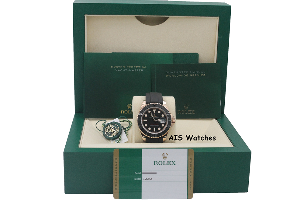 ** Rolex Yachtmaster 126655 Rose Gold OysterFlex (E / D) updated Glide Lock Clasp