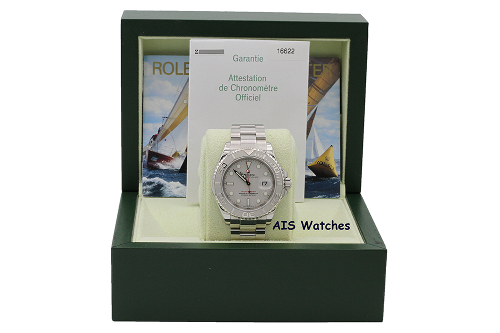 Up for sale is a Rolex Yachtmaster 16622 Platinum Dial Z Serial Box & Papers. The timepiece is in excellent condition.