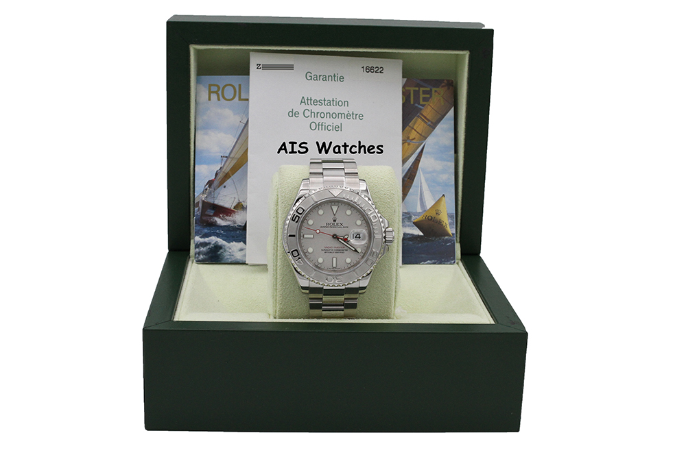Up for sale is a Rolex Yachtmaster 16622 Platinum Dial Z Serial Box & Papers. The timepiece is in excellent condition.