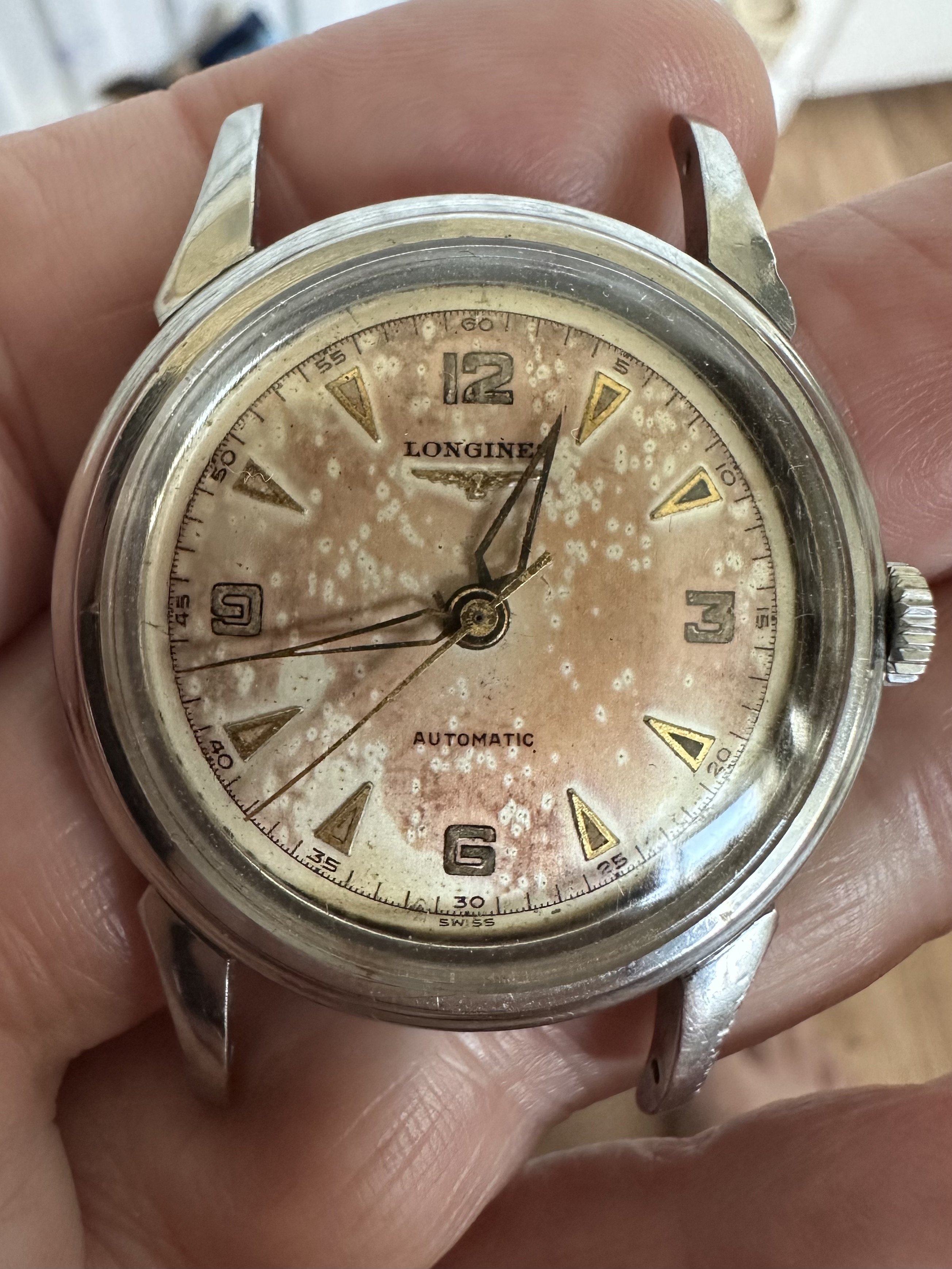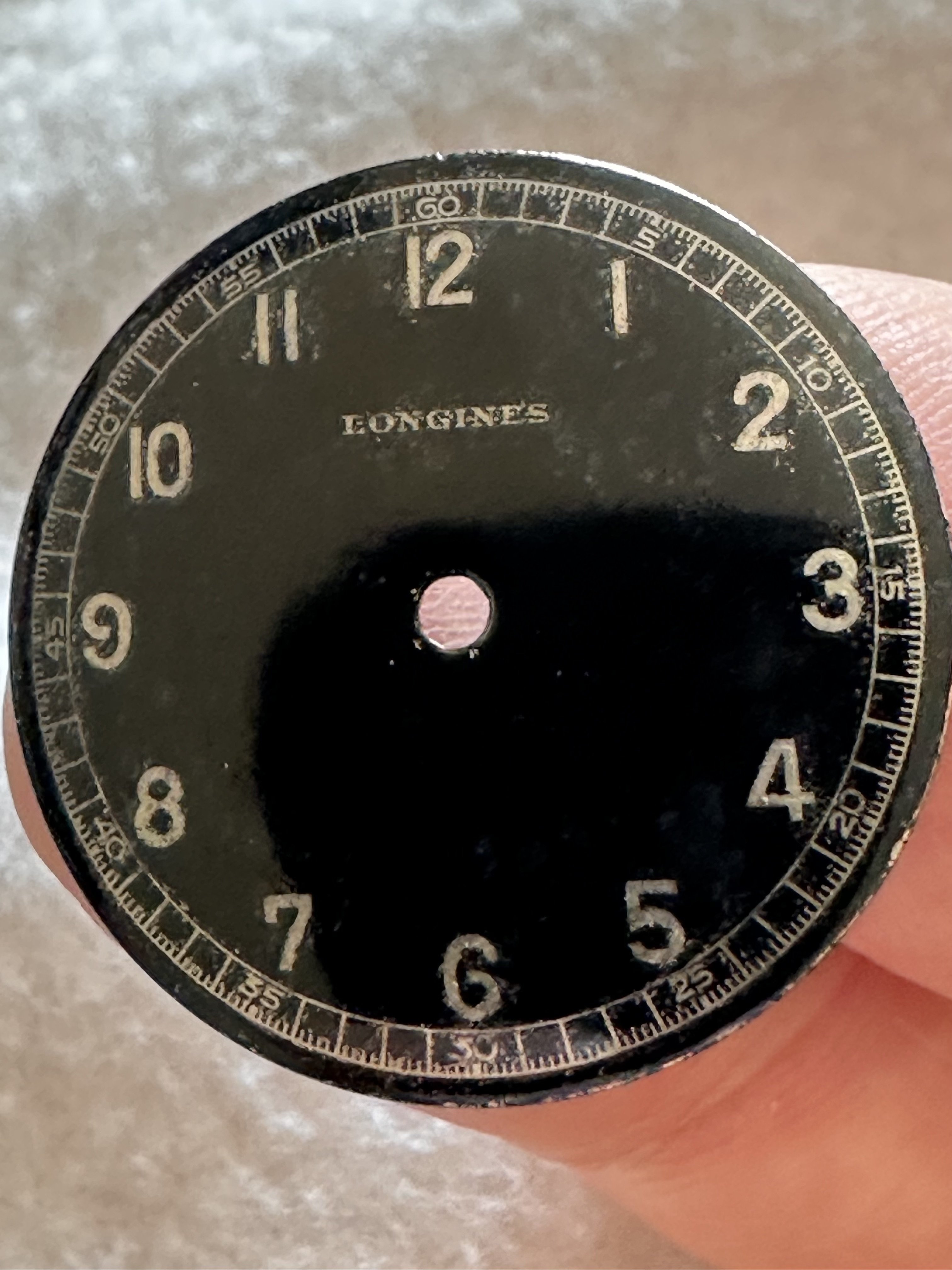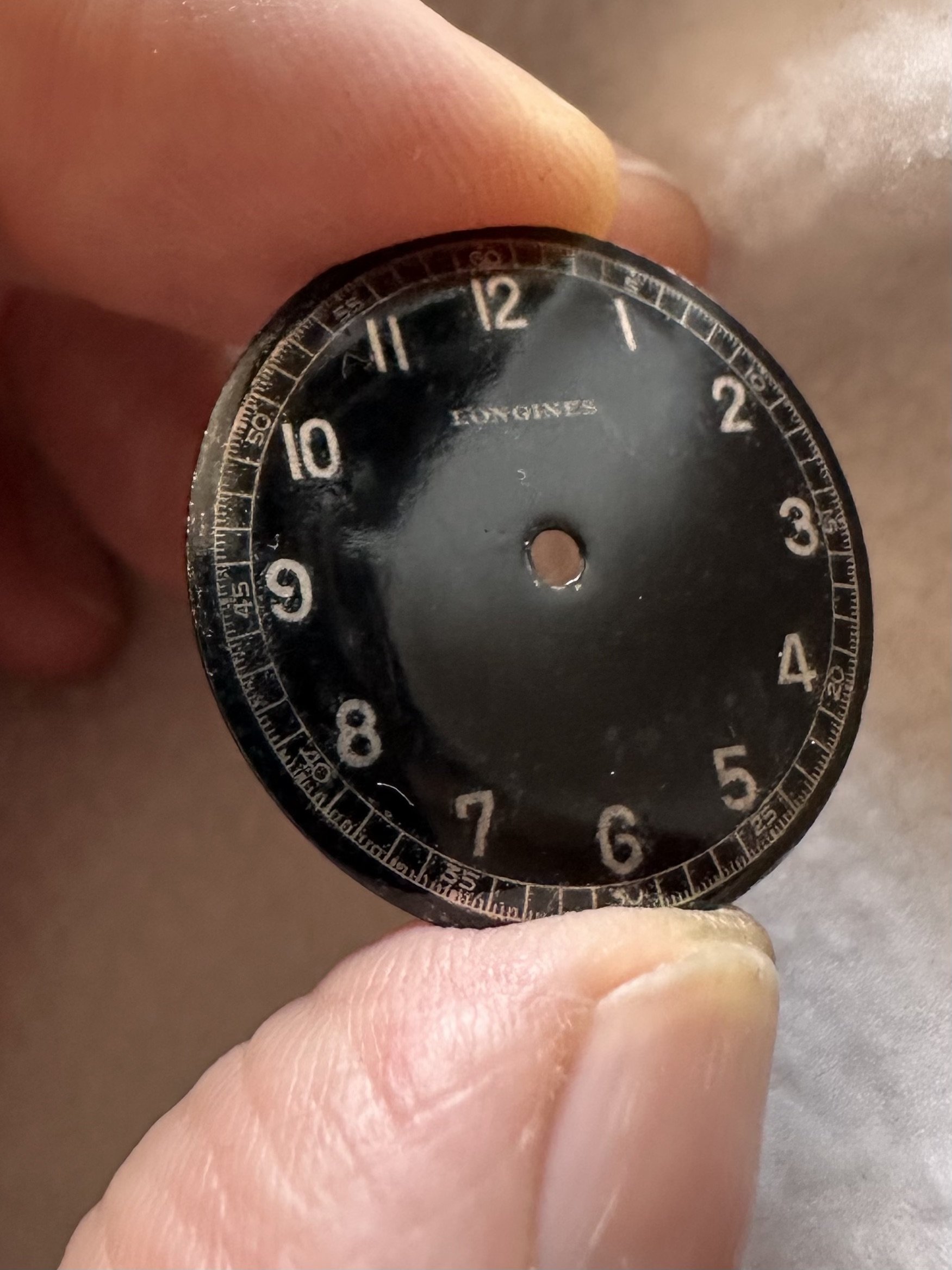 This stage in my opinion highlights the risks of restoration, the varnish brings out a clear discrepancy between areas that look “new” and the zones around the numerals where you could not touch up.
