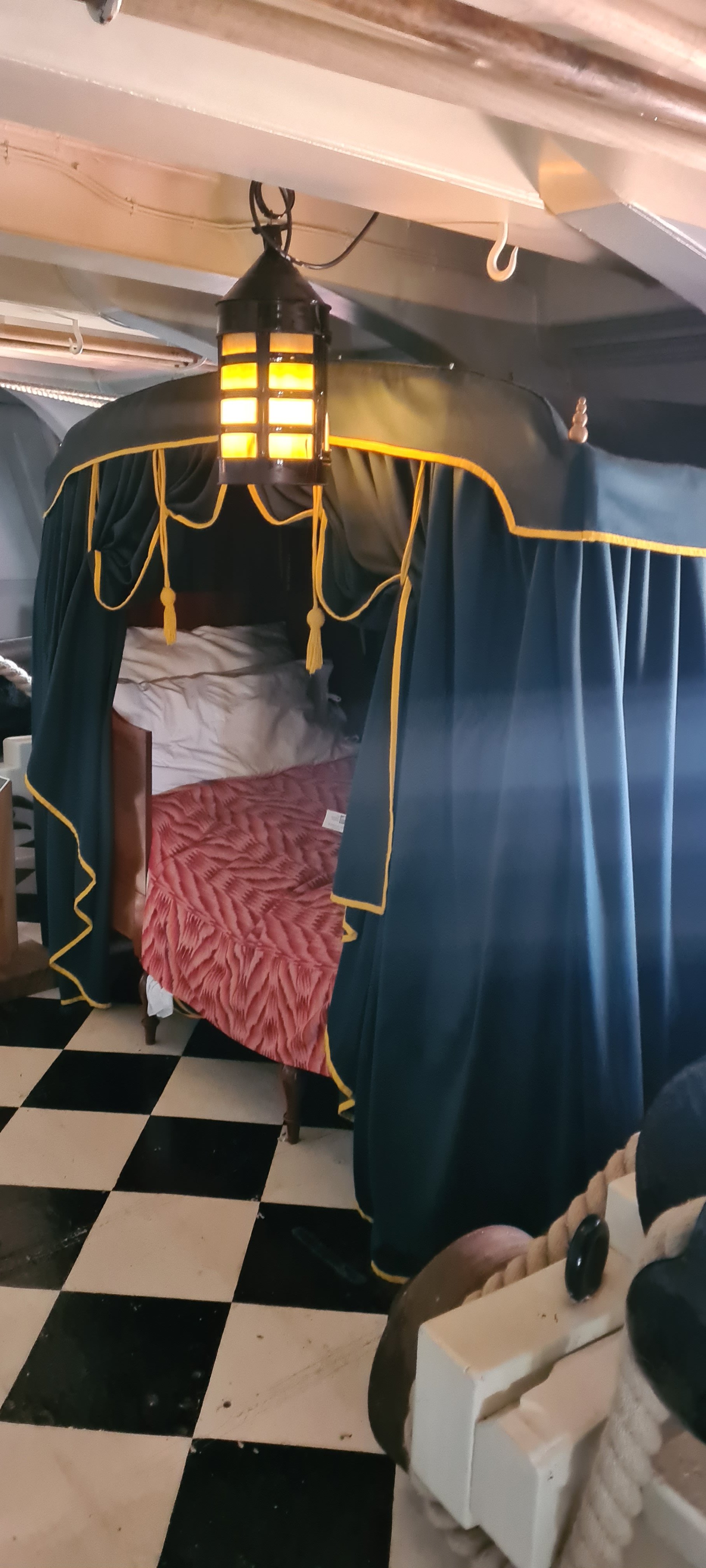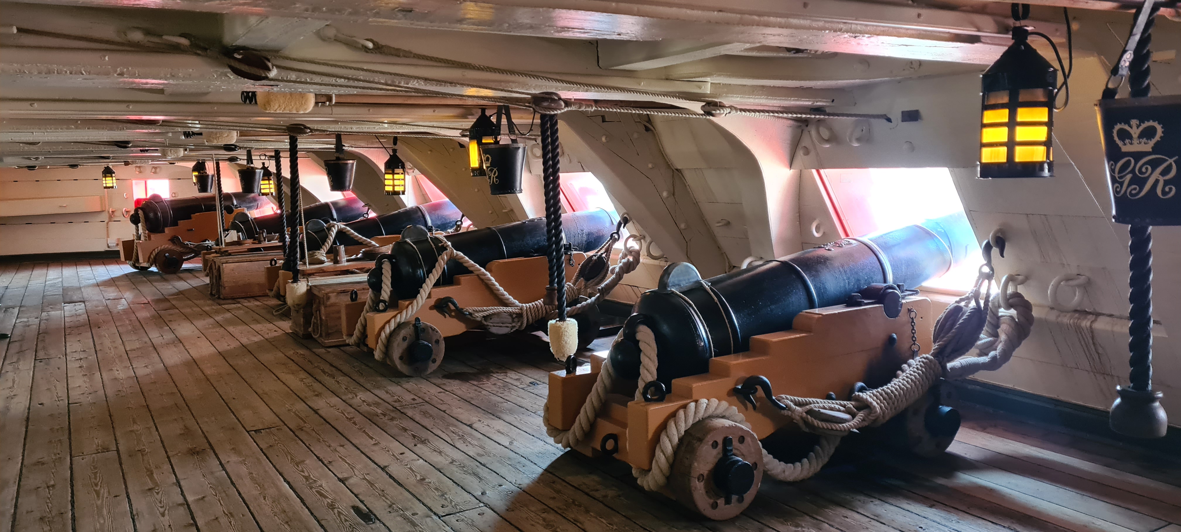 Some years ago I went there specifically to see HMS Victory in refurbishment and found a huuuuuuge queue of people lined up for something out of sight. What was it for? A Russian navy cruiser on a goodwill visit. So I joined the queue. On finally getting there the decks of the ship were lined with the Russian late teens and early 20s sailors, presumably conscripts, who were very keen to sell the badges off their uniforms for cash usable in a British pub. As a military vessel I thought she seemed rather run down and ill-maintained.
