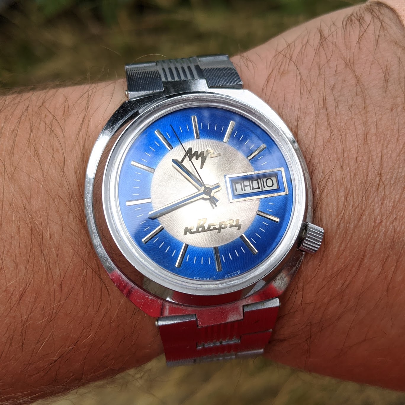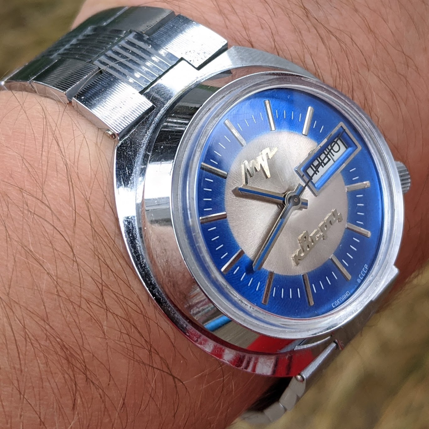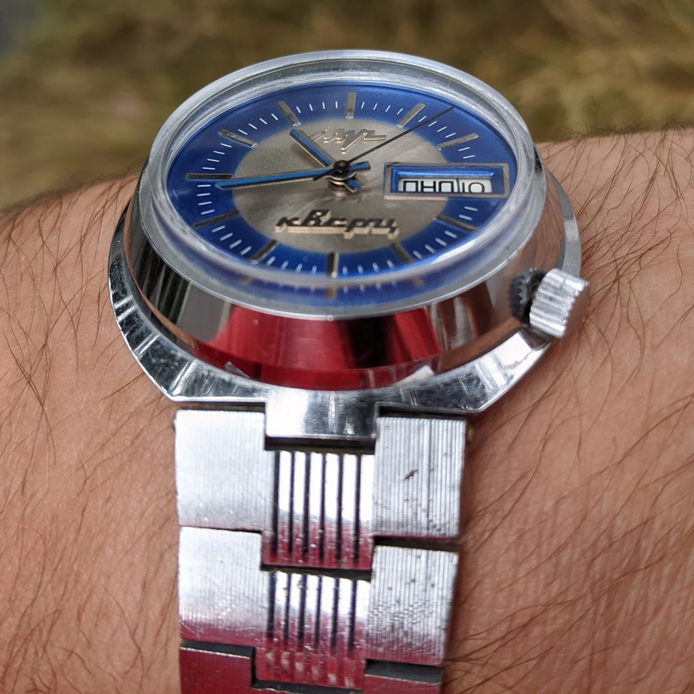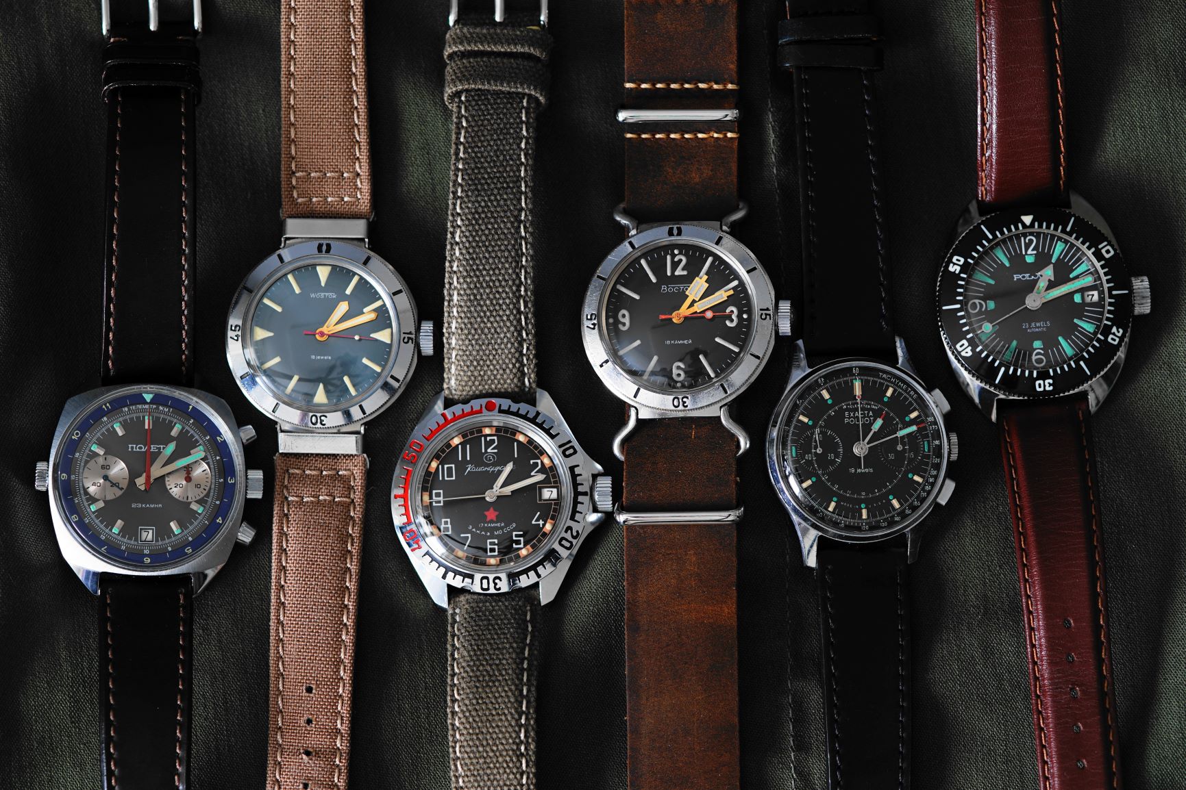 I was in Minsk in 2002, and spotted some watches with cool dials. I picked what turned out to be a Vostok Amphibia KGB and a Partner Submariner. They were about $12 each!