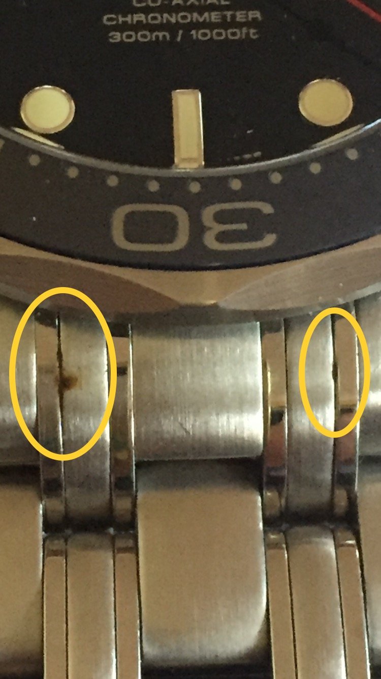 3. Another common cause of rusting is When a piece of high-carbon steel or iron is rubbed against stainless and leaves a scratch and some of the high carbon material behind. That will then rust. Consider leaning over an iron railing on a balcony and the bracelet makes enough contact to leave a scratch. You’ve probably transferred non-stainless material as well, which will rust. In this case, the stainless material underneath will form CrO and not rust, only the surface material will rust.