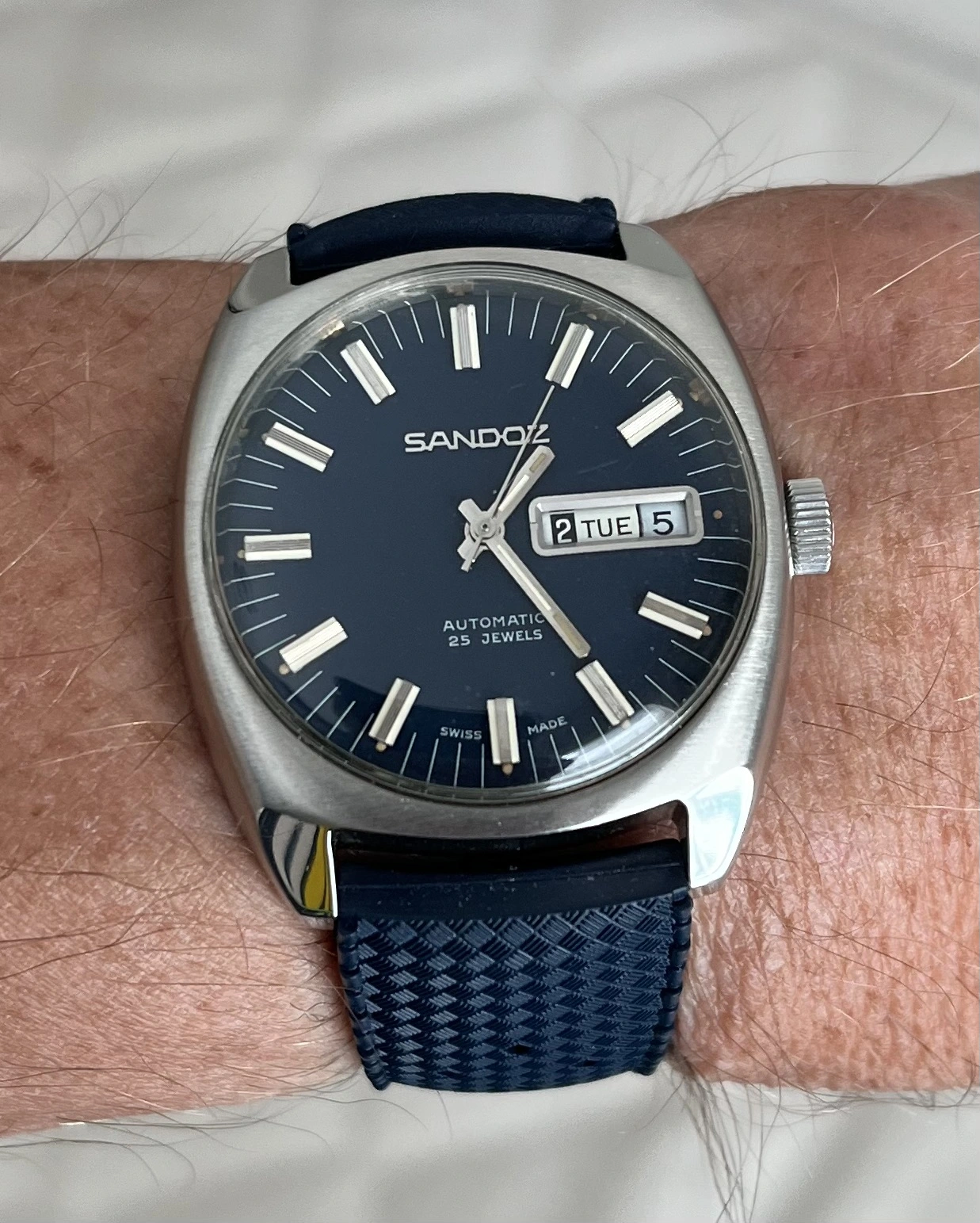 I have just purchased this rather (I think)beautiful Sandoz watch from a friend.