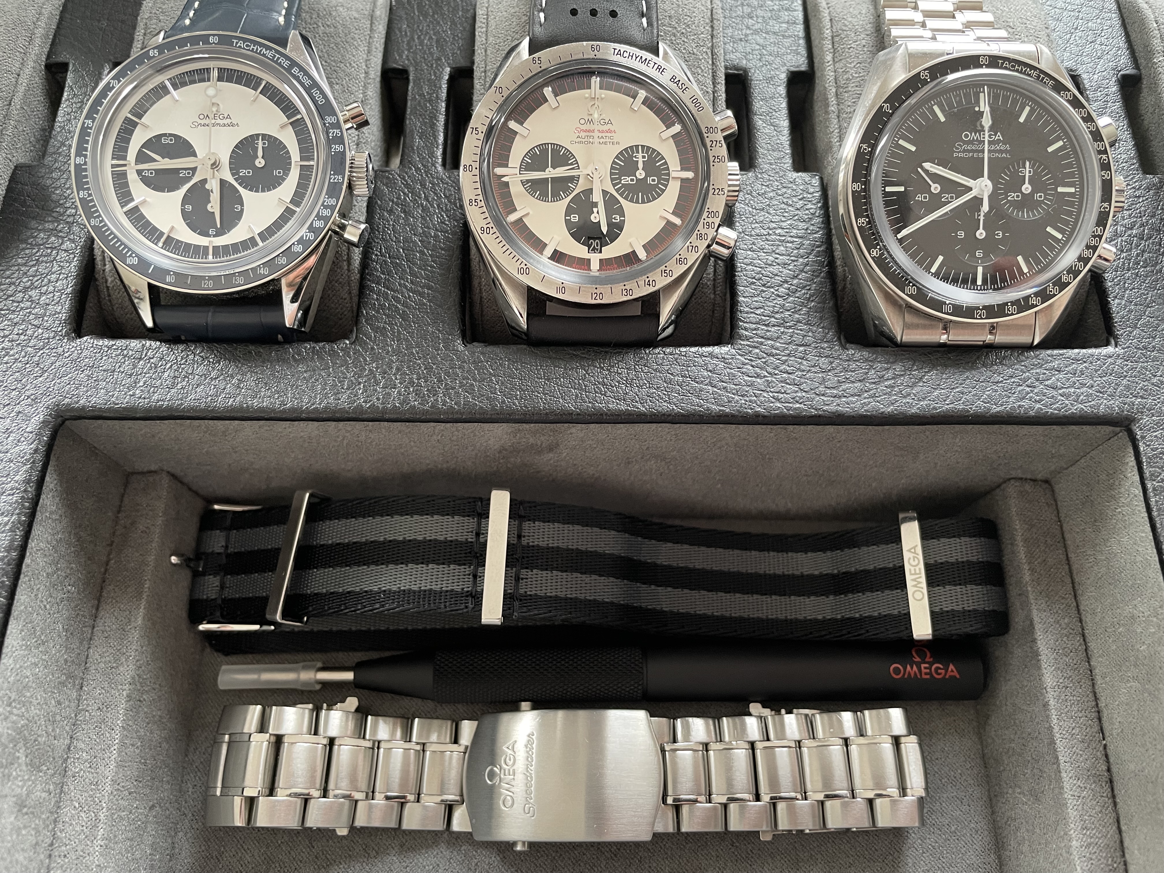 Hope you are all enjoying your weekends. I'm new to the forum having recently become increasingly into (Omega) watches. I have picked up a few Speedmasters, and quite to take delivery of an interesting one this morning: a Schumacher Racing (3559.32.00) with a nice 'Paul Newman' panda dial and date aperture at 6.