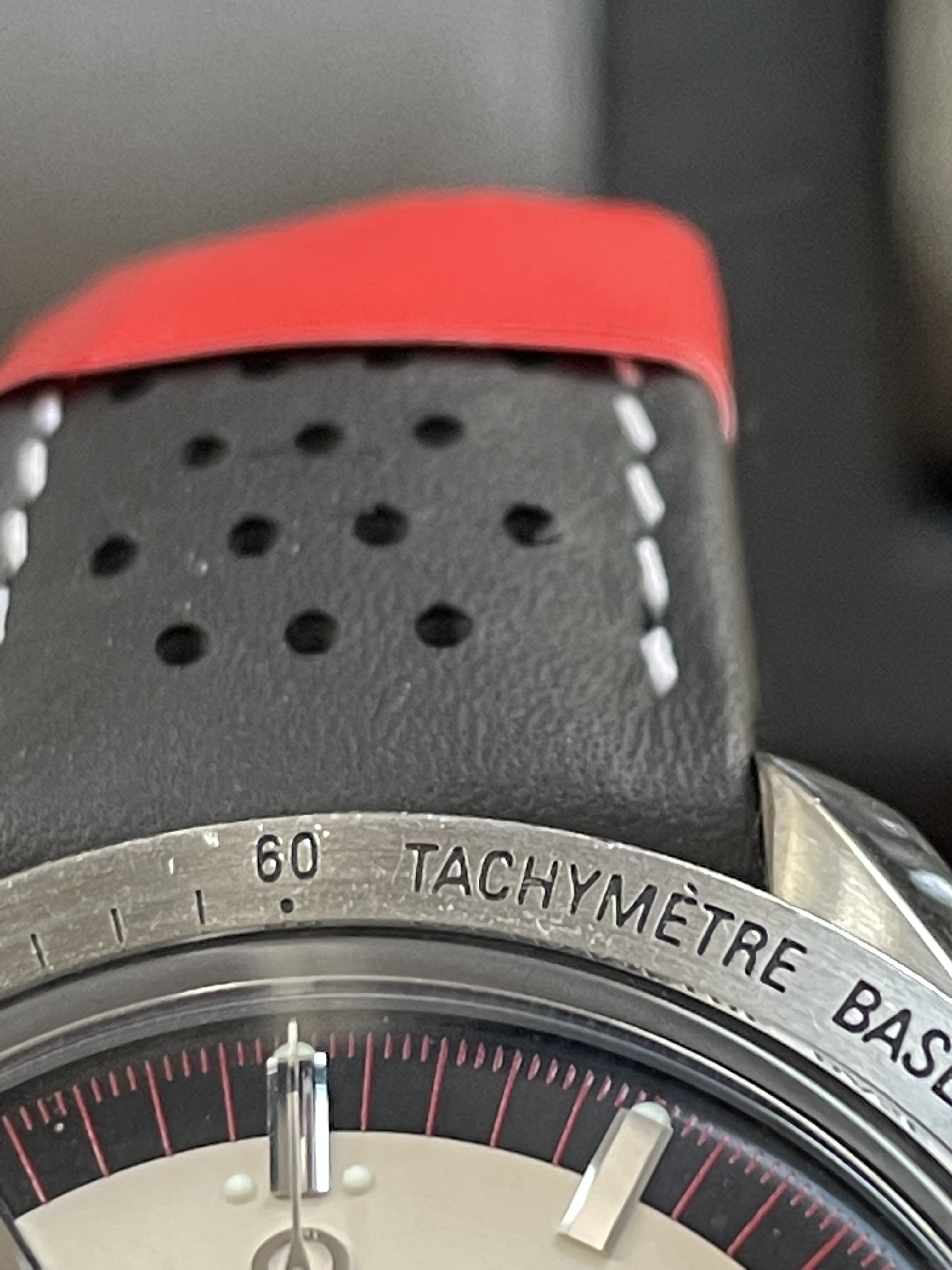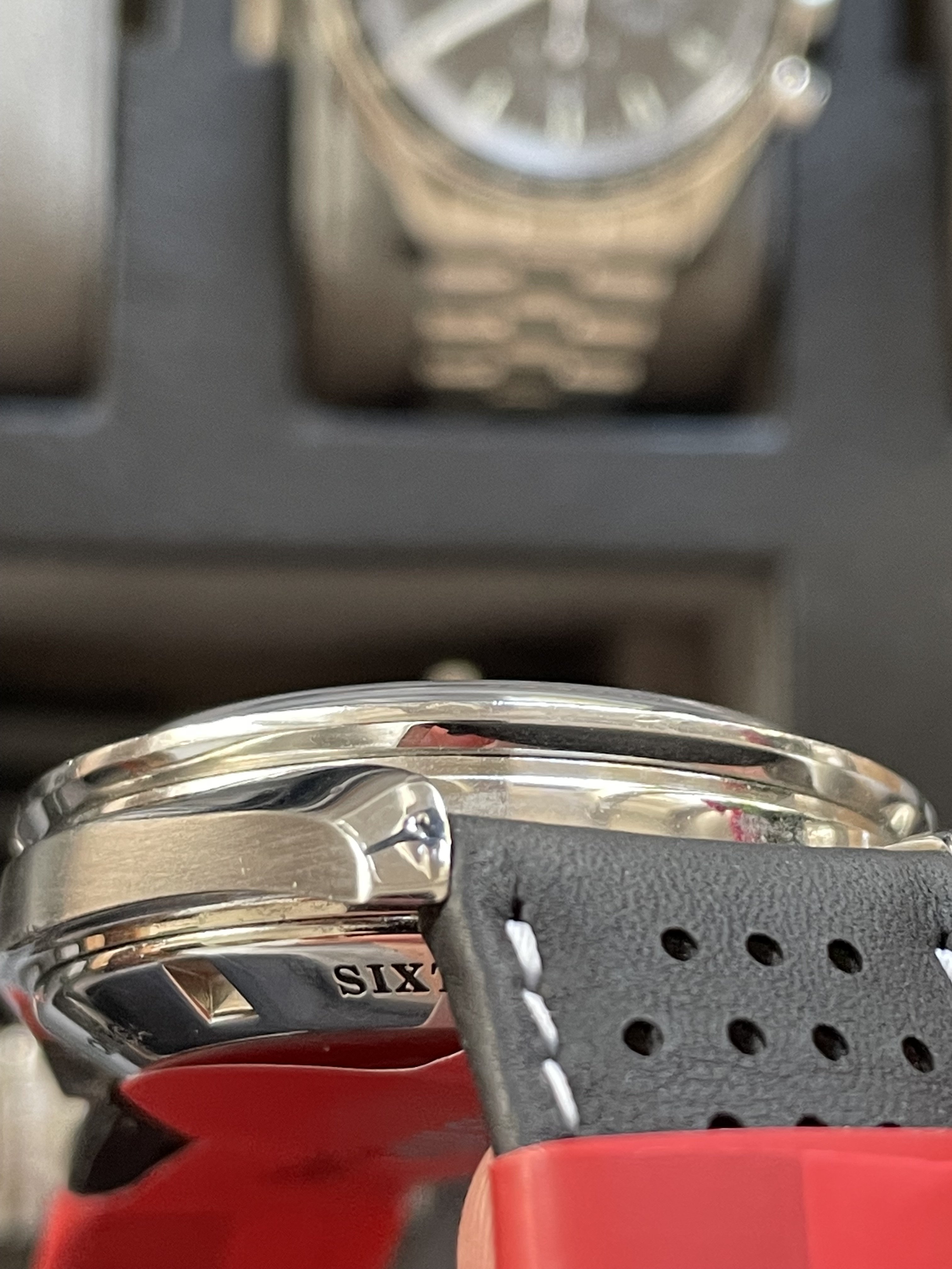Condition is bit worse than expected from the online listing, with a (superficial) scratch on the crystal and some reasonably-sized dings to the bezel and lugs. The price was probably fair at around £5800 inc box and papers, spring guard tool and extra leather strap. There don't seem to be many around.