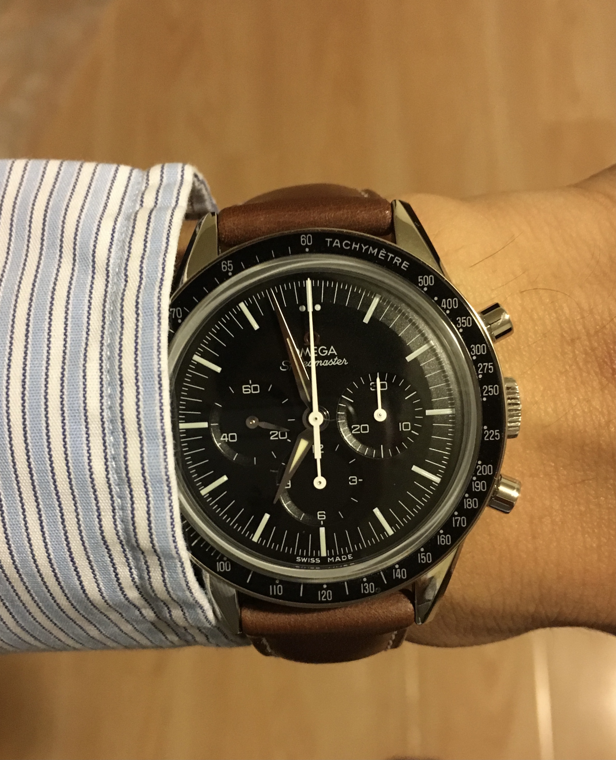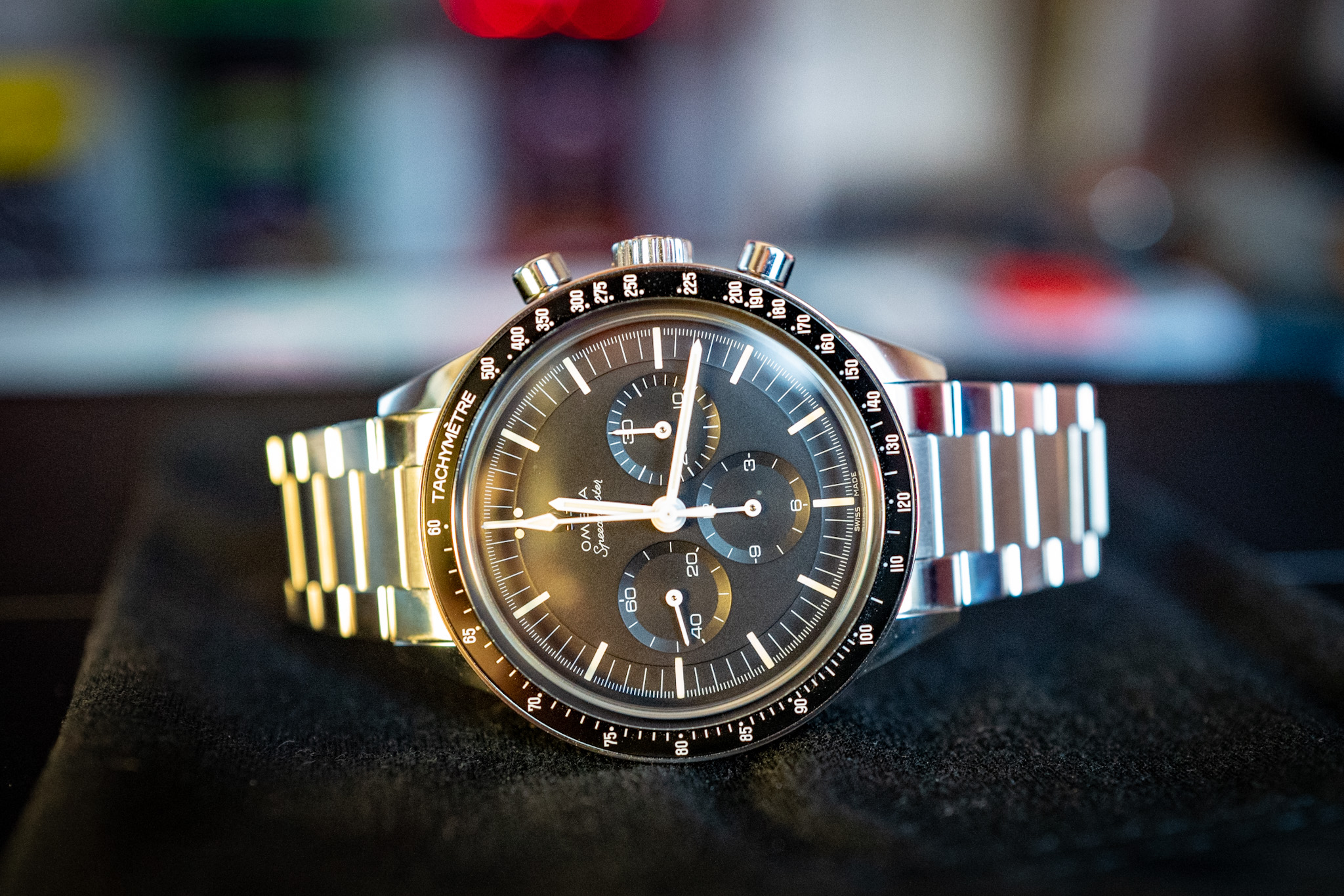 From a general watchmaking perspective, the regular speedy’s sapphire is also “domed,” insofar as the crystal has any concave feature whatsoever (as compared to a “top hat” type sapphire, completely flat).
