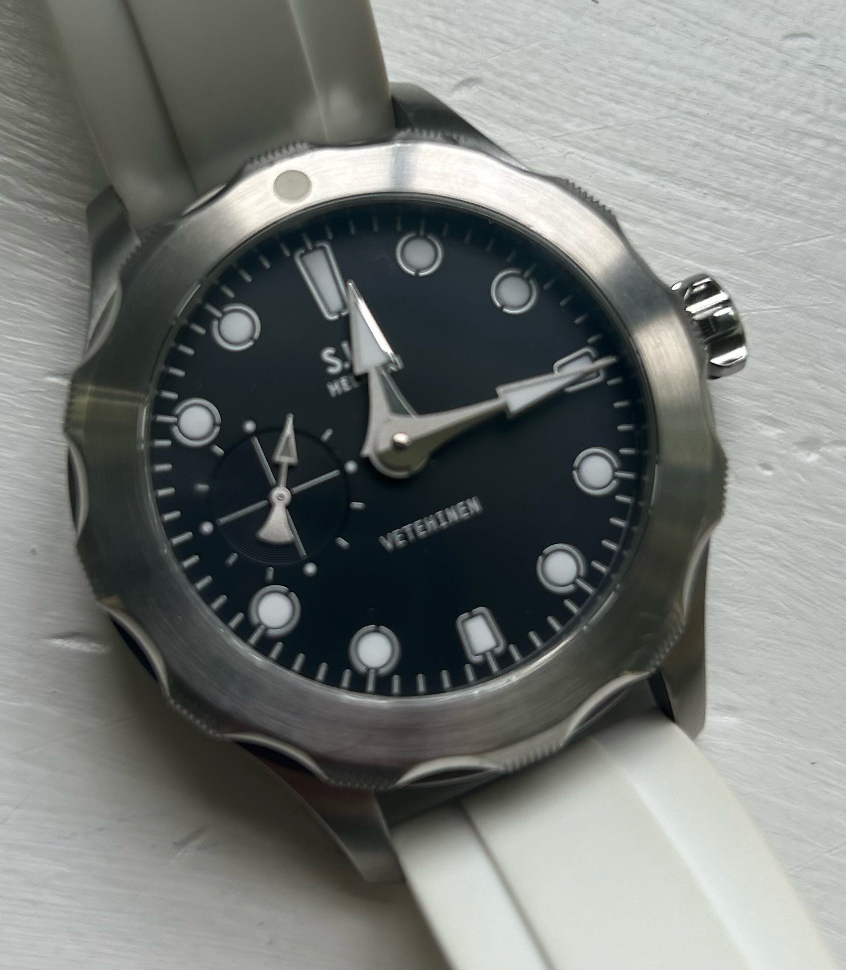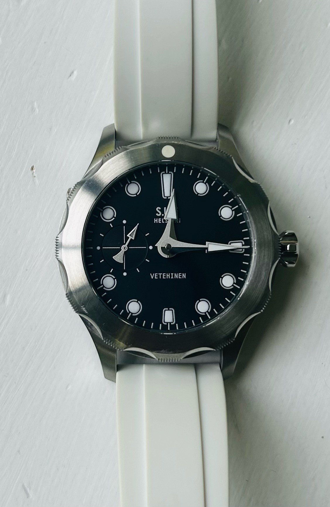 I have had this watch for 4 years, bought it directly from Stepan Sarpaneva. It is the first iteration of the black dial Vetehinen, limited to 52 pieces - and has the great seconds subdial at 9.