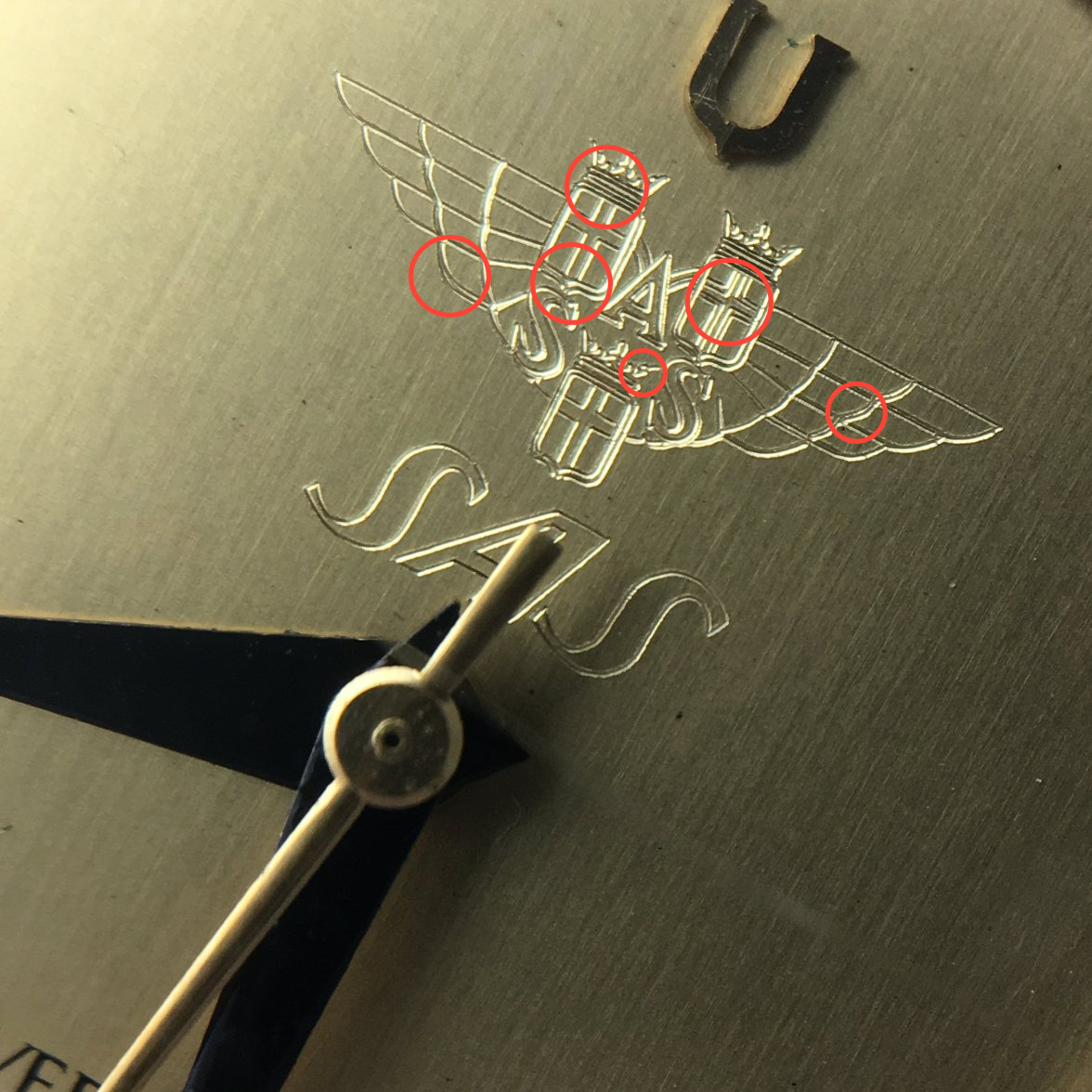 If you were setting out to fabricate an SAS watch (having found a brilliant engraver and done your research on Tore Nilert), you would have thought you would try to copy another example by adding Polerouter and not adding the SAS lettering to the emblem. You probably wouldn't use totally unique UG hands either.